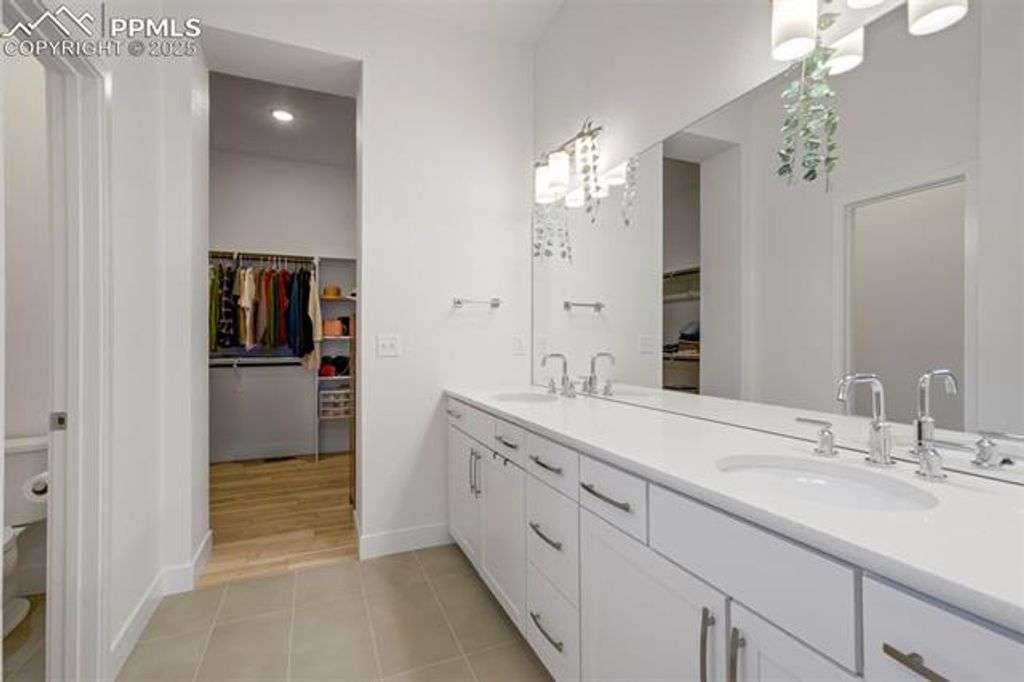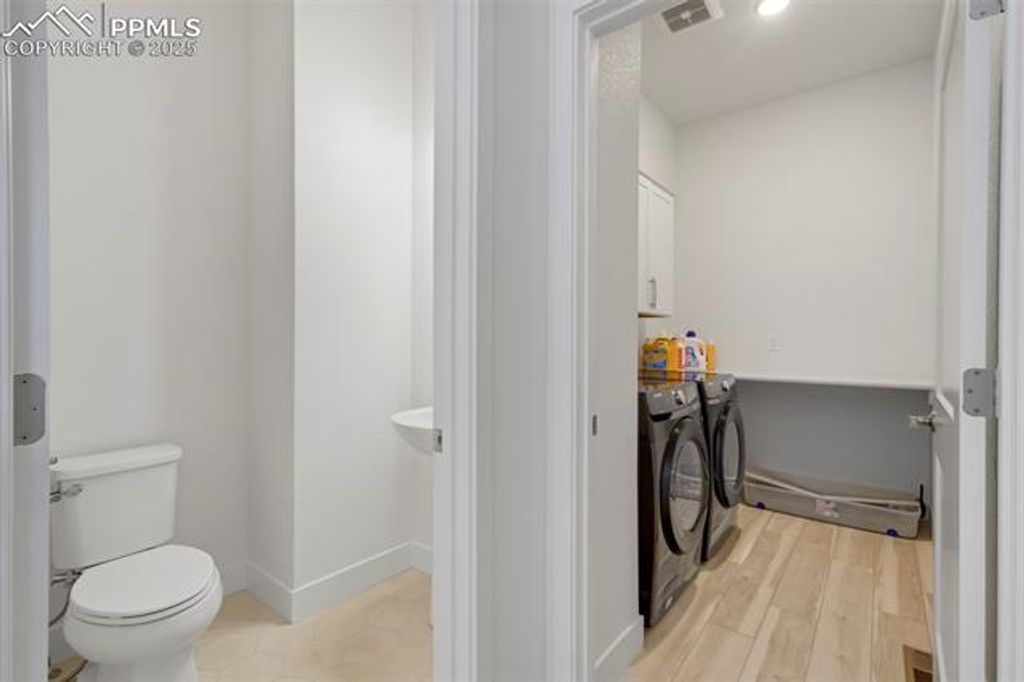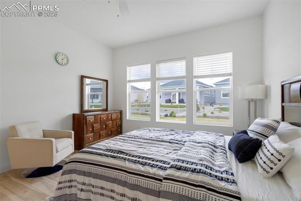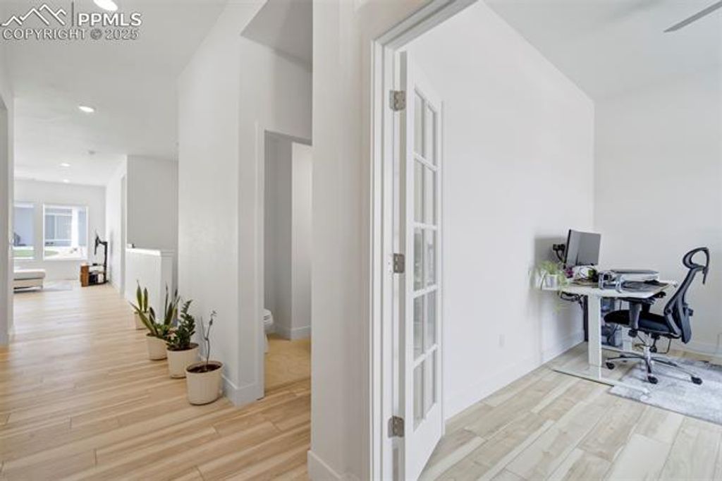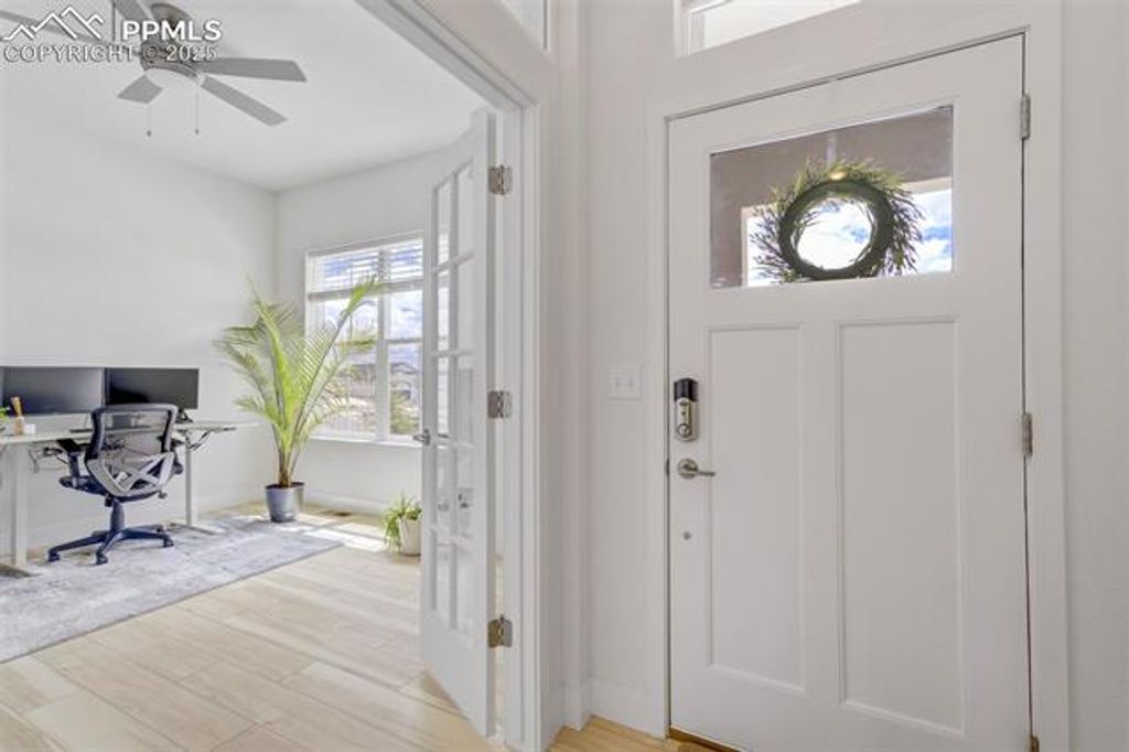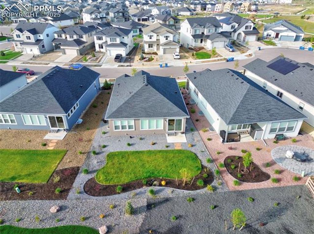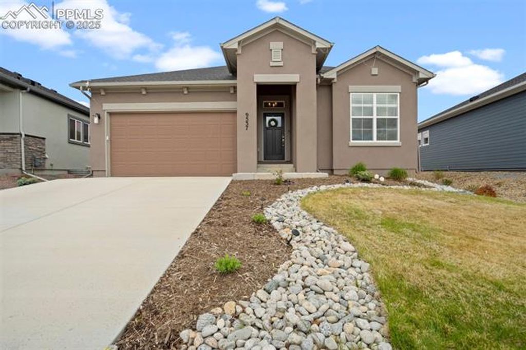 Built in 2023 by David Weekley Homes, this like-new Tibbetts floor plan is located in the highly desirable Revel at Wolf Ranch community and offers a perfect blend of style, space, and functionality. The main level showcases 10' ceilings and an open-concept layout that seamlessly connects the living room, dining area, and gourmet kitchen. Designed with both comfort and convenience in mind, the main level also features a dedicated office, laundry room, and a spacious primary suite. The kitchen is a chef's dream with white cabinetry, Tofino quartz countertops, a large island, and upgraded appliances"”including a 36" gas cooktop, vent hood, built-in microwave, and electric oven. The primary suite offers a spa-shower, double vanity, and walk-in closet with built-in wood shelving. The finished basement includes a second living room space, two additional bedrooms, and a full bath, with unfinished space currently used as large storage room but perfect for a future home gym, office, or future bedroom. Additional highlights include front and rear landscaping, quartz countertops in all full bathrooms, and abundant natural light throughout. Revel at Wolf Ranch offers fantastic community amenities including a lake, clubhouse, park hosting family friendly community events, dog park, walking trails"”all within the award-winning D20 school district. This is a rare opportunity to own a move-in ready home in one of Colorado Springs' premier neighborhoods.