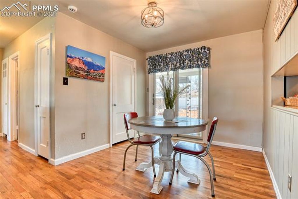 Welcome to where this exceptional multigenerational home boasts two houses in one! This one-family owned home in the heart of the coveted Bonnyville neighborhood is a rare opportunity to earn passive income or welcome out-of-town guests with a garden level three-bedroom apartment with separate entryways. The peaceful main home features three bedrooms, a full bathroom and a half bathroom, a galley kitchen with stainless Steele appliances, a convection stove and granite-tiled countertops, a dining room, a breakfast nook, and a large living room where you will enjoy stunning Colorado sunsets with gorgeous views. The beautiful hardwood floors flow throughout the main living areas and travertine tile in the main bathroom adorn the jetted bathtub where you can relax and enjoy the quiet of this home. Outside, you will love to grill a delicious dinner or just sit and enjoy the beautiful Colorado weather on the large, tiled-floor covered patio that overlooks a lovely xeriscape backyard, complete with raised garden beds. Enjoy the outdoors even more with a total of three covered patios! Making your way to the entrance of the garden level apartment that could be used as an in-law suite, when family comes to stay a while, or as a rental income-producing opportunity, you will find a large tiled-floor living room, a complete galley kitchen, three bedrooms, a full bathroom, and two large storage areas. Separate laundry facilities provide extra privacy between the main house and the garden level apartment. Don't forget about the location of this home, located just steps away from amenities like the Bon Shopping Center, Bonforte Park, Penrose Hospital, and just a short bike ride on the nearby interconnected Shooks Run Trail from downtown. You'll enjoy the convenience of this location with dining, shopping, and plenty of room to play and enjoy the outdoor Colorado life.