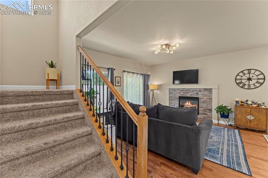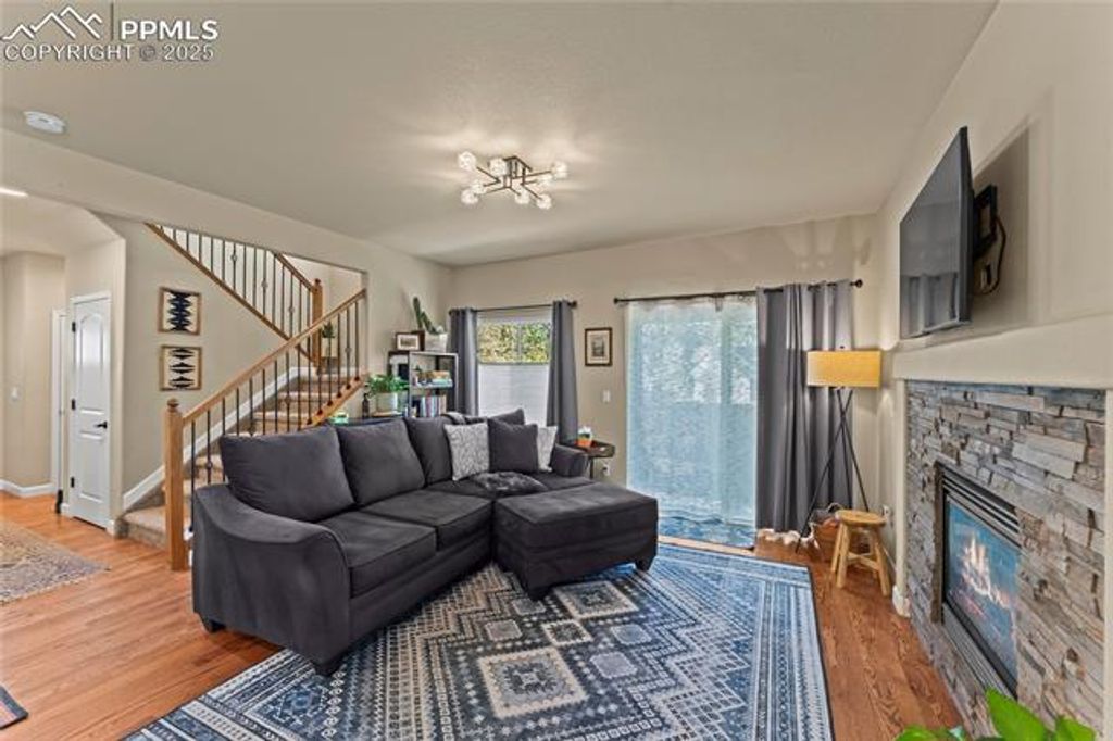 Welcome to this beautiful 3-bedroom, 3-bath home, just steps from Old Colorado City. The upper level features three bedrooms, including a spacious primary suite with vaulted ceilings, a 5-piece bath, and a large walk-in closet. The two additional bedrooms share a full bathroom, and the conveniently located laundry area saves you from having to haul laundry up and down the stairs. The main level offers an open-concept layout with hardwood floors throughout. The kitchen includes stainless steel appliances, an island, and a generous pantry. The living room features a cozy gas fireplace and a sliding door that opens to a private patio and fenced yard with an automatic sprinkler system. The unfinished basement features a storage closet and is equipped with rough-in plumbing for a future bathroom, making it ideal for adding extra living space in the future