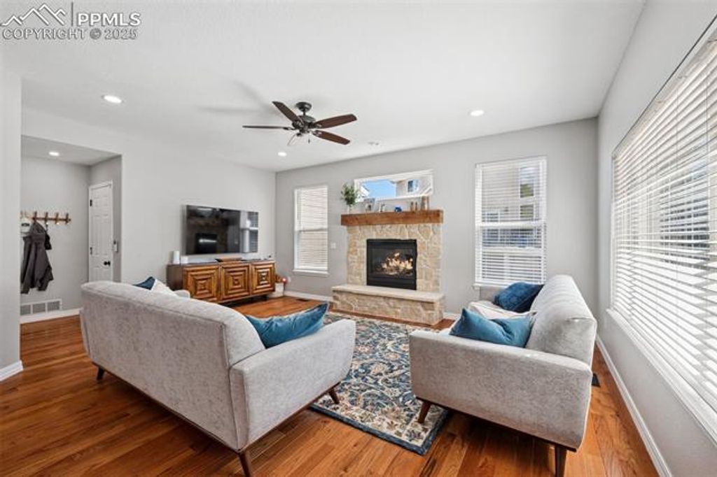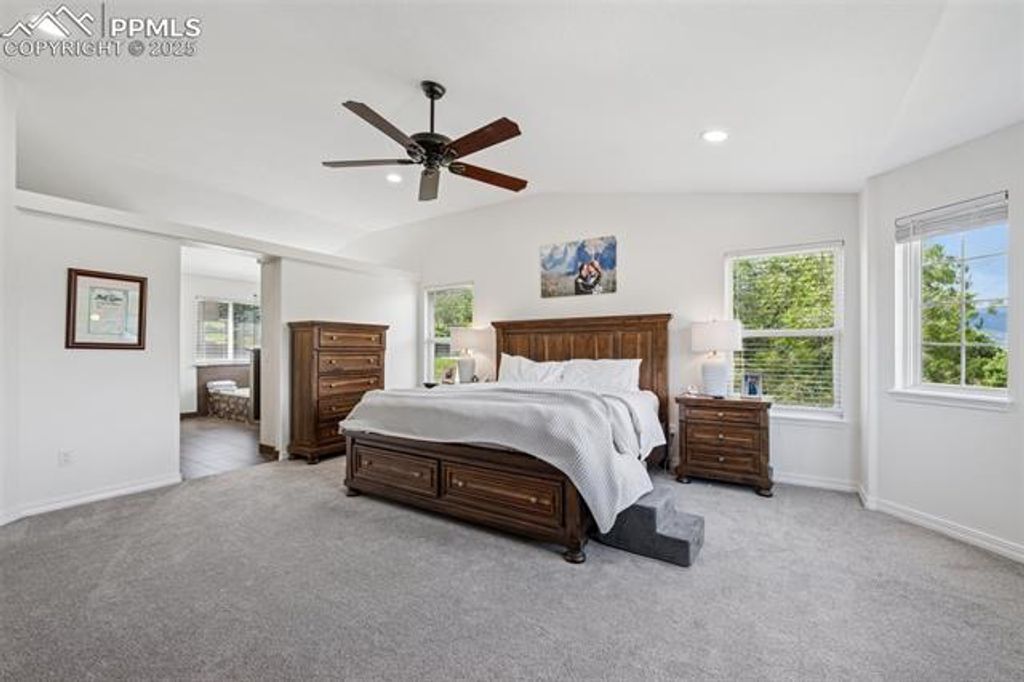 Incredible Opportunity in Desirable St. Andrews with Unmatched Views! If you're searching for a beautifully updated home in a quiet, secluded neighborhood just minutes from downtown Colorado Springs, this is the one! Located in the coveted St. Andrews community right next to the Colorado Springs Country Club you can even drive your golf cart home. With direct access to Palmer Park's world-class trail system, this location is perfect for both relaxation and adventure. Brand new exterior paint! Step onto the large covered front porch and take in sweeping Pikes Peak views, also visible from the spacious primary suite. Inside, no detail has been overlooked, every room has been thoughtfully updated, including all bathrooms and closets. The updated kitchen opens directly to a large, partially covered back patio, perfect for outdoor entertaining. Upstairs, vaulted ceilings highlight a versatile bonus room that separates the primary suite from the secondary bedrooms, ideal as an office, reading nook, media/game room, or creative space. The primary suite boasts two walk-in closets and a luxurious five-piece en suite bath. Modern tech upgrades include CAT6 wiring, Wi-Fi controlled light switches, and an automatic flood-detection water shutoff system. Enjoy regular sightings of local wildlife and quick access to everything Colorado Springs has to offer.
