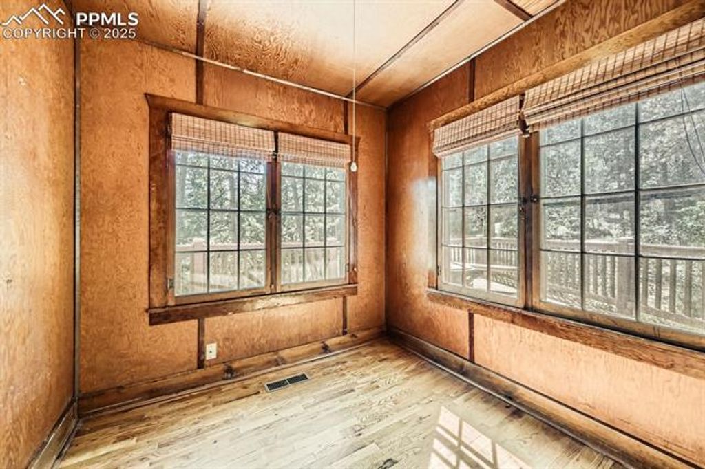 Charming 1920s Mountain Cabin! Step back in time with this 2 bed, 1 bath, 677 sq ft cabin, where vintage charm meets modern comfort. Nestled in a quiet, storybook neighborhood less than 20 minutes from Colorado Springs and just 10 minutes to Woodland Park, this cozy retreat offers both convenience and tranquility. Inside, you'll find hardwood floors, original wood interiors, and period hardware that preserve the cabin's timeless character. Thoughtful updates include a high-efficiency furnace (2023), upgraded electrical, stackable washer/dryer, and gas range. The inviting stone fireplace and built-ins add warmth and function throughout. Enjoy your morning coffee on the composite deck with mountain views, or go for a hike on Mount Esther Trail, which is only 0.5 miles from this home, and takes you into Pike Nation Forest! Storage is abundant with a lower-level, exterior access space and carport. Please note that this property will be conveyed in its current condition, sold as-is, with no seller repairs or warranties. Whether you're looking for a starter home, vacation getaway near Pikes Peak, or income-producing VRBO, this cabin checks all the boxes. Nearby is access to Pikes Peak highway, Garden of the Gods, endless hiking, and biking trails, it's the perfect mix of nature, history, and comfort. Don't miss this rare opportunity to own a piece of Colorado's mountain charm! *Assumable* Contact agent for specifics!