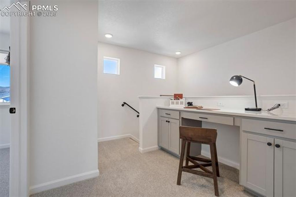 This stunning 3-story home sits on the prime lot & is packed with upgrades "” offering sweeping city & mountain views! Step inside to find light, neutral tones, fresh interior paint & an open-concept main level designed for effortless entertaining. The largest floorpan includes a spacious kitchen which shines with large island, custom soft-close cabinetry, quartz counters, granite sink, walk-in pantry with 110 outlet & premium Café appliances (range & microwave) "” perfect for the home chef. From the main level, step out onto your walkout deck & take in the open space & breathtaking city views "” the ideal spot to unwind or entertain as the sun sets over the city. Upstairs, a cozy nook/desk makes a great home office or study area, while the primary suite features a large picture window, walk-in closet & a beautifully upgraded bath with tiled shower, handheld nozzle, & backlit mirrors. 2 additional bedrooms and a full bath complete the upper level. The lower level offers incredible flexibility with a 2nd primary suite featuring its own living area, kitchenette & private bath "” perfect for guests, multi-generational living or income potential! Every detail has been thoughtfully upgraded, including: Soft-close cabinetry throughout Finished, insulated garage w/ epoxy-coated floor, storage racks, & EV wiring First-floor tile flooring, luxury LVP, upgraded carpet & pad throughout Powder-coated custom stair rail Ceiling fans 2 Laundry areas Tankless hot water heater & 14 SEER HVAC Top-down/bottom-up blinds throughout Custom driftwood tile wall in living room Backlit mirrors in ½ bath & primary Exterior lights on photo cell/auto switching & added matching balcony light Transferable warranty included! Forget yard work "” just relax & enjoy or explore the nearby walking path that leads to a city-built dog park. All this, just minutes from Garden of the Gods, restaurants, shopping & only 8 minutes to downtown Colorado Springs!