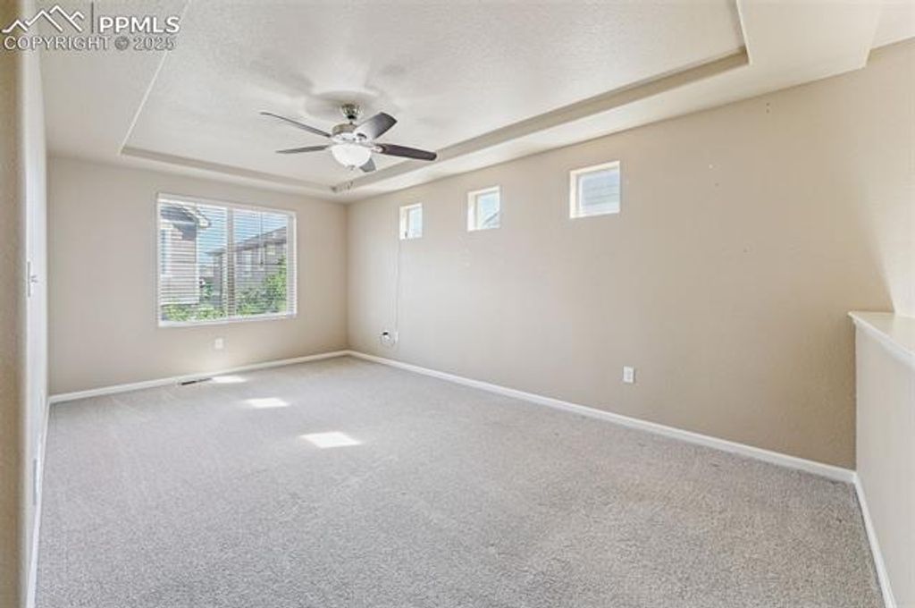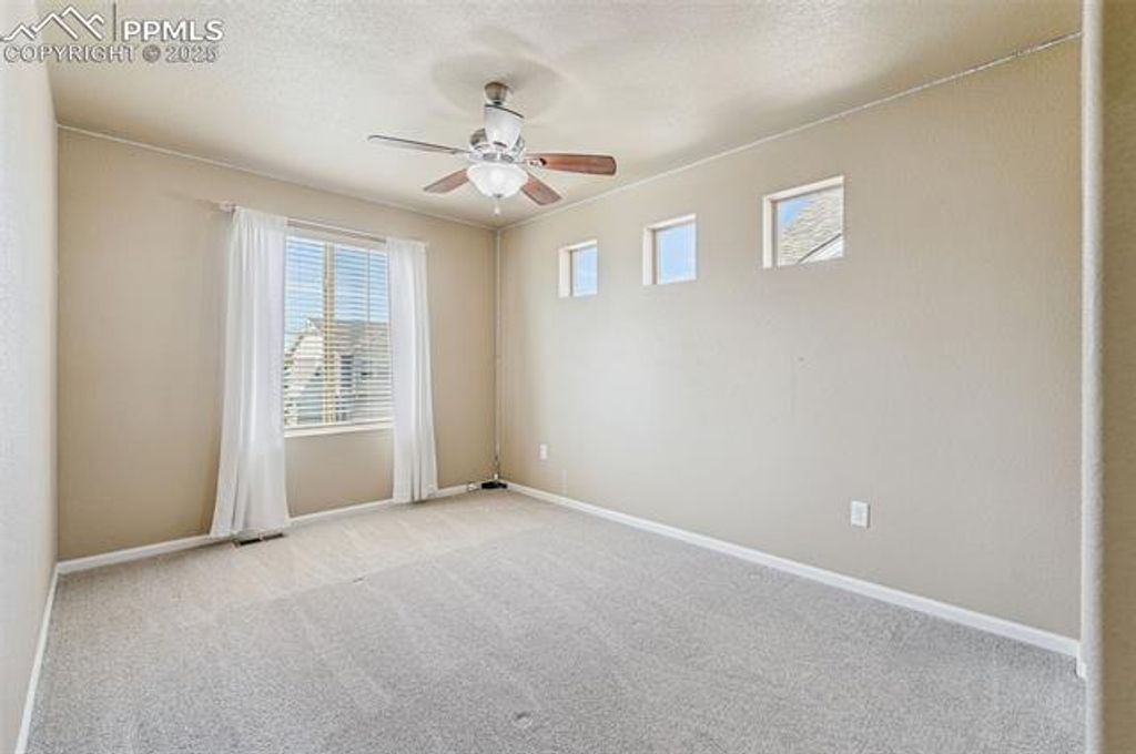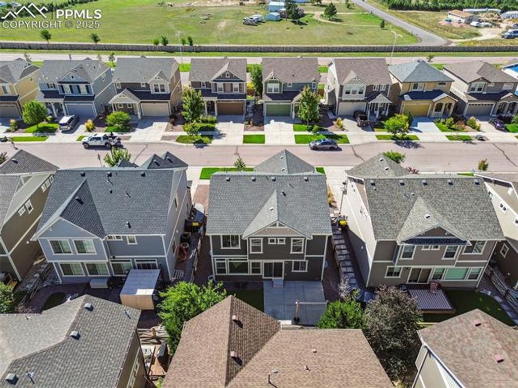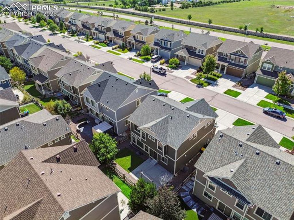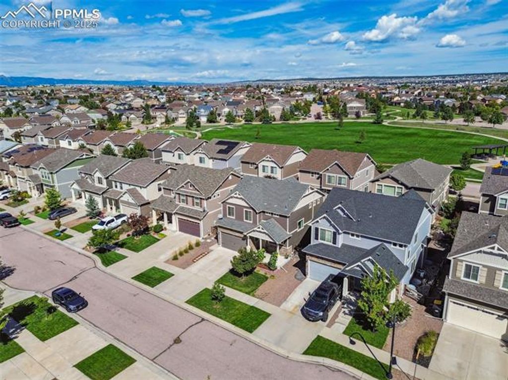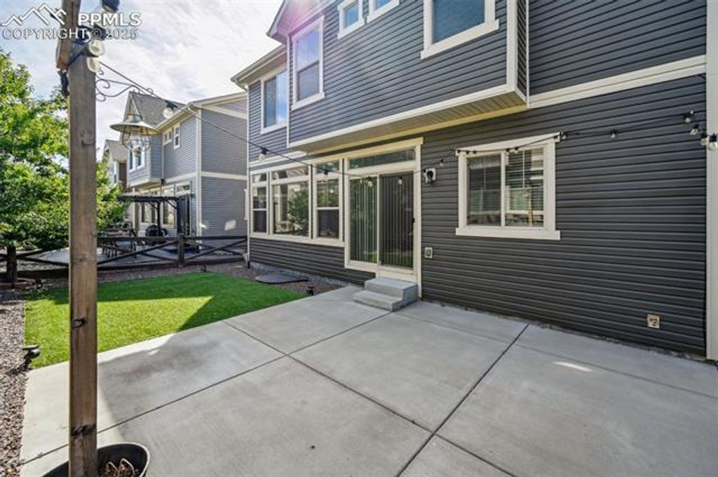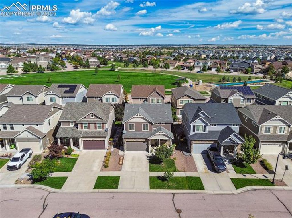GORGEOUS LANDSCAPING draws you in from the moment you walk up to the home. The covered front porch offers a wonderful space to sit out and enjoy a cup of coffee during the summer. Walking into the home a front closet and half bath are just off the entryway/foyer. Down the hall the home opens to the living, dining, and kitchen area, naturally lit through picturesque windows. The kitchen boasts a barstool height center island, stainless steel appliances, pantry, and ample counter and cabinet space. The dining area provides walk out access to the back patio and beautiful fenced back yard. A perfect opportunity to slide open the back door and let the outdoors in for entertaining or kids in and out. The stairs to the upper level are back to towards the front door and as you walk up you are greeted by a wonderful lofts space, which could be utilized as a family/tv room, workout area, kids play area, or many other possibilities depending on needs. The upper level hosts all three bedrooms including the master suite which features a spacious walk in closet and ensuite bath with double vanity and free standing shower. Bedrooms two and three share a full bath. Completing the upper level a spacious walk in laundry room provides convenience. Walking down to the unfinished basement level the area is spacious and currently being utilized as a game room. The space is a blank canvas and can be configured and completed as needed. The Banning Lewis Ranch community has amenities galore, including neighborhood schools within walking distance, over 65 acres of parks/trails/open space for hiking/biking, tennis courts, pickleball courts, basketball court, rock climbing, zip-lines, access to pools, splash pad, water park, and dog park. The recreation center houses a fitness center and regularly hosts classes and events for all ages. In the summer months, catch a neighborhood concert, festival, food trucks, farmers market or enjoy other regular community events. This community has it all.
