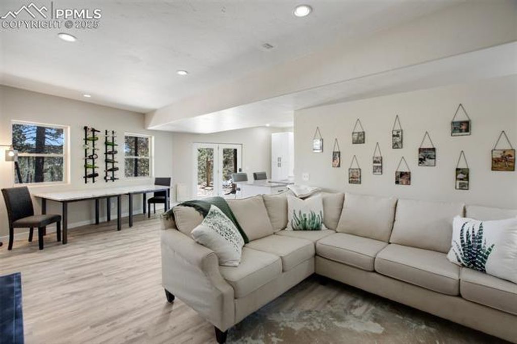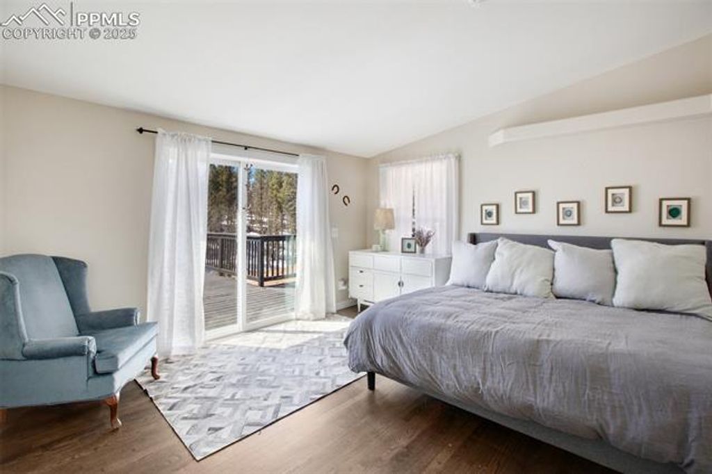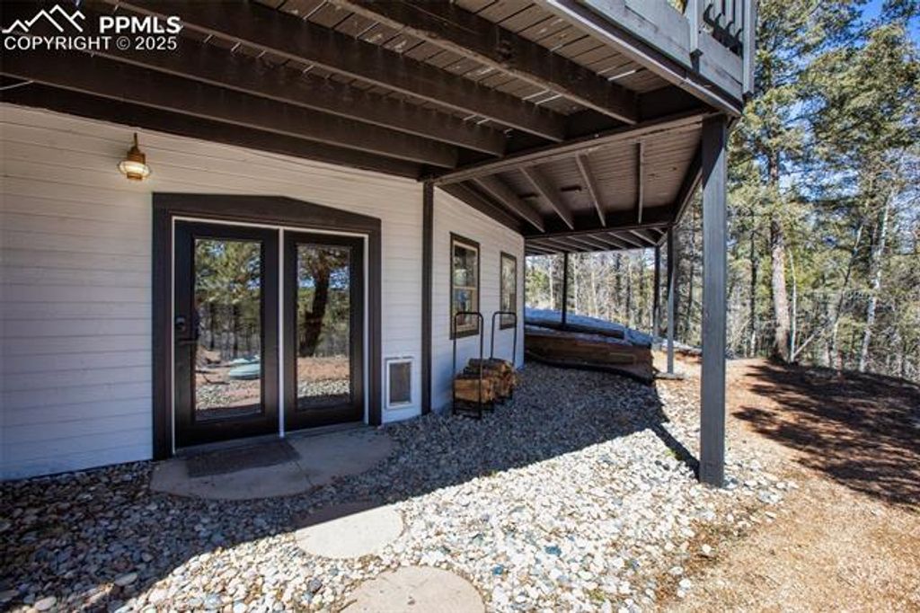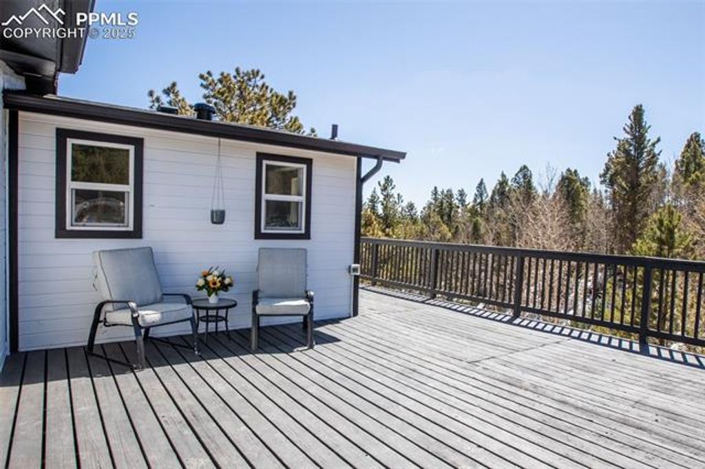 Welcome to your Rocky Mountain oasis! This luxurious home is offered FULLY FURNISHED with high end pieces throughout. This home offers a perfect blend of comfort and style, nestled on over 5 acres in the desirable Indian Creek area. From this peaceful and private location, you will enjoy stunning sunrise views of Pikes Peak and easy access to year-round outdoor adventures. Step onto the expansive wrap-around patio, ideal for entertaining and soaking in the breathtaking surroundings. Inside, the main level features a cozy living room and dining room with a wood-burning fireplace, a custom kitchen designed for culinary enthusiasts, a guest room, and laundry room. The main floor primary suite is a true retreat with a walk-in closet, a spa-like 5-piece bathroom, and a walk-out door to the sunny south-facing porch. The lower level boasts a wet bar and dining area that is capable of food storage and meal preparation, perfect for multigenerational living or hosting guests. Downstairs you will also find two additional bedrooms, a bathroom, another family room with it's own fireplace, and a full workout room. The lower level features a walk-out door to a fenced-in dog run. Outside, take advantage of the oversized detached shop, equipped with RV-sized doors, power, and ample storage space. It has 3 additional built-on storage areas for gardening supplies, trash storage, and firewood storage. There is also a greenhouse for the gardening enthusiast. This home was thoroughly renovated in the last few years including a new roof, new water heaters, all new interior finishes....this home is move-in ready! Don't miss your chance to make this stunning property your own!