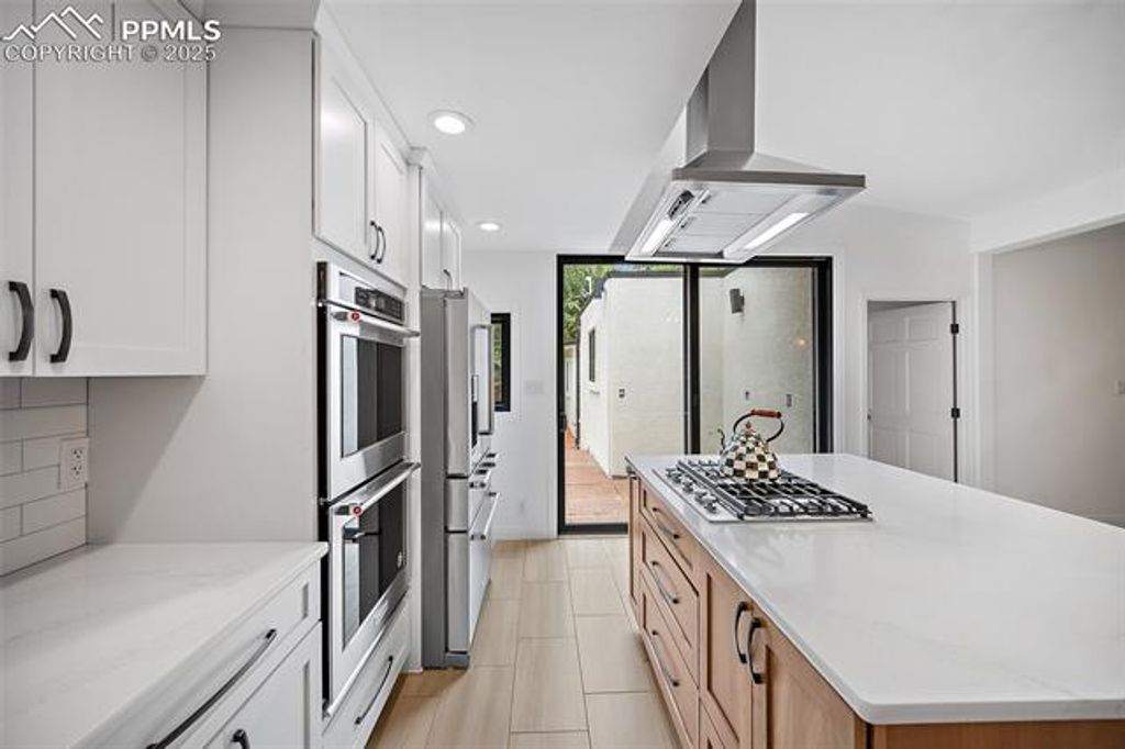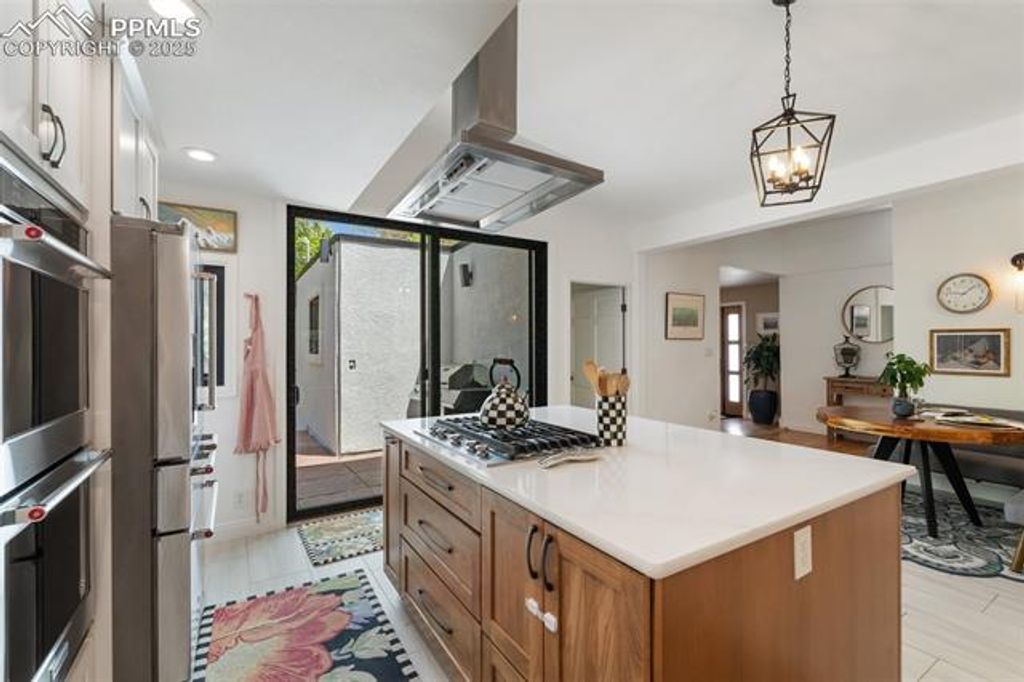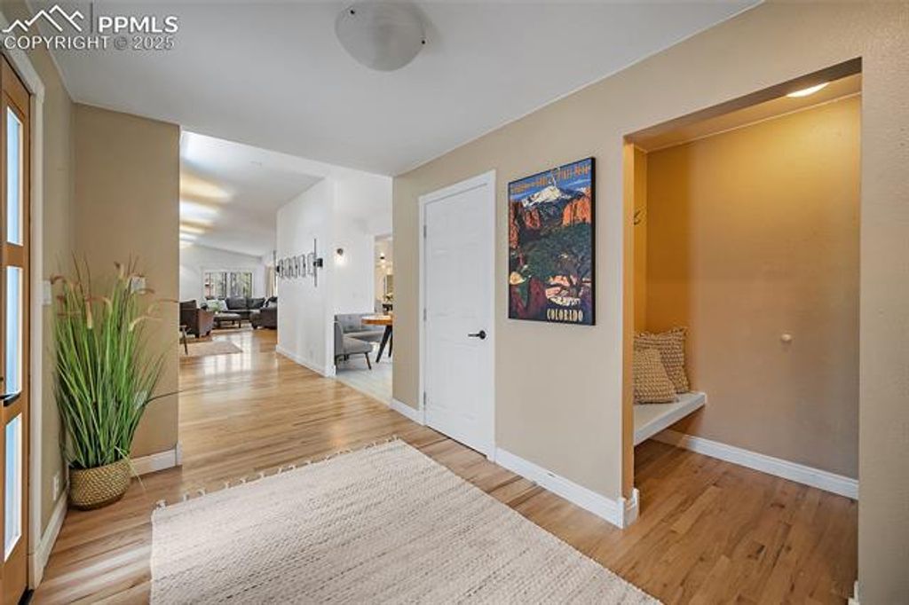 Welcome to 110 Vine Street in the desirable Broadmoor Flats. This beautifully updated 4-bed, 4-bath ranch blends timeless charm with modern luxury. Enjoy striking curb appeal, a well-fed irrigated landscape, and mature trees. Inside, natural light fills the home, highlighting rich hardwood floors and high-end finishes. The gourmet kitchen features top-tier appliances and a large island perfect for entertaining. The primary suite offers a spa-inspired bath, walk-in closet, and private patio. Additional features include a 3-car garage, new Andersen windows (May 2025), and a new roof coming August 2025. Near the Broadmoor Resort, golf courses, downtown, and in top-rated District 12.