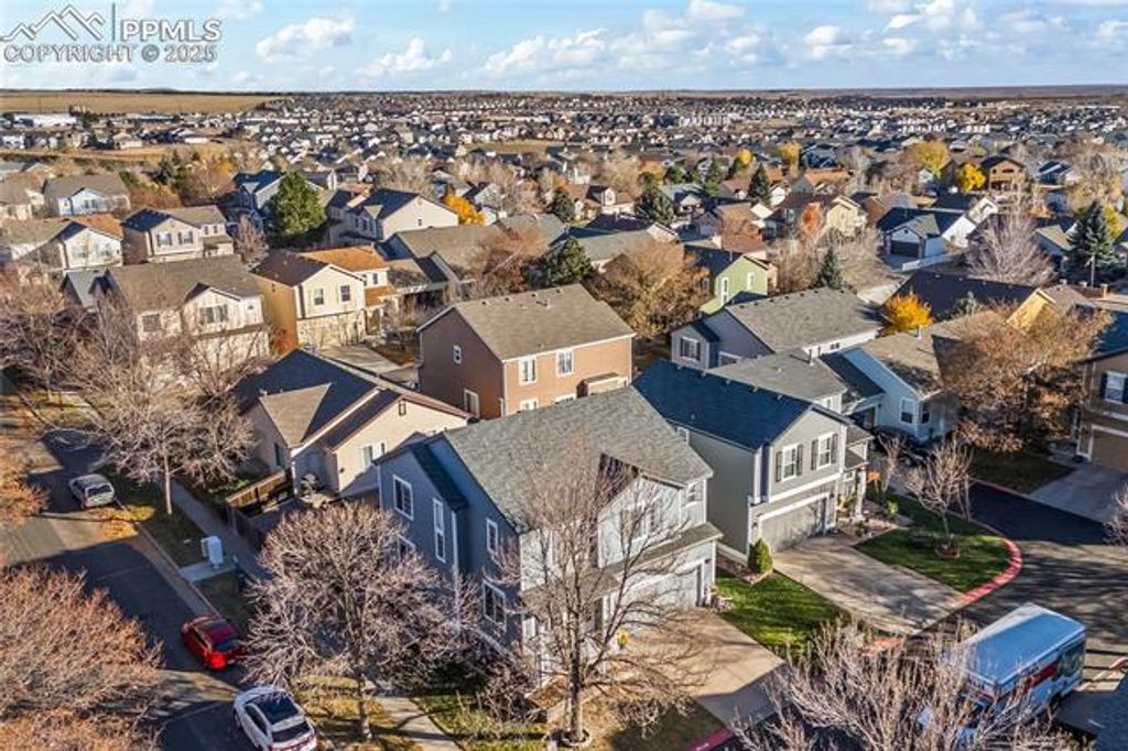 Welcome home to this move-in ready two-story on a corner, cul-de-sac lot in The Cascades at Springs Ranch! This 3 bedroom, 3 bath home with 2-car garage welcomes you with rich wood floors, fresh neutral paint and an open-rail staircase that makes the entry feel bright and spacious. The front living room and formal dining area flow into a comfortable family room with gas fireplace, built-ins and big windows for natural light. The kitchen features granite counters, tile backsplash, stainless appliances including a gas range with double oven, pantry and an eat-in nook. A stylish half bath and easy access to the backyard round out the main level. Upstairs, the large primary suite offers a sitting area, 5-piece bath with soaking tub and double vanity, plus a walk-in closet. Two additional bedrooms, a versatile loft and a full bath complete the upper level. The unfinished basement is ready for future expansion or storage. Outside, enjoy a fully fenced yard with newer sod, a large concrete patio and pergola"”perfect for Colorado evenings. All of this in District 49 with quick access to Powers, Peterson, Schriever, parks, schools, shopping and dining. This one checks all the boxes!