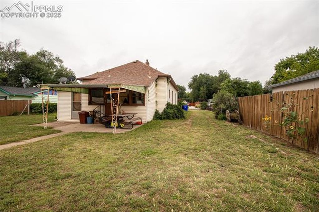 Easy access to I25. Lots of yard space for RV parking, gardening or just room to run. The home is a 2 bedroom, 1 bath. Wonderful enclosed porches on the front and back of the home.