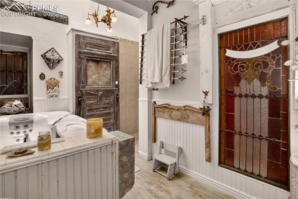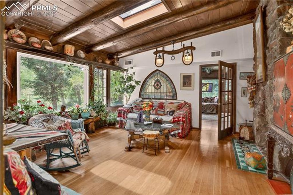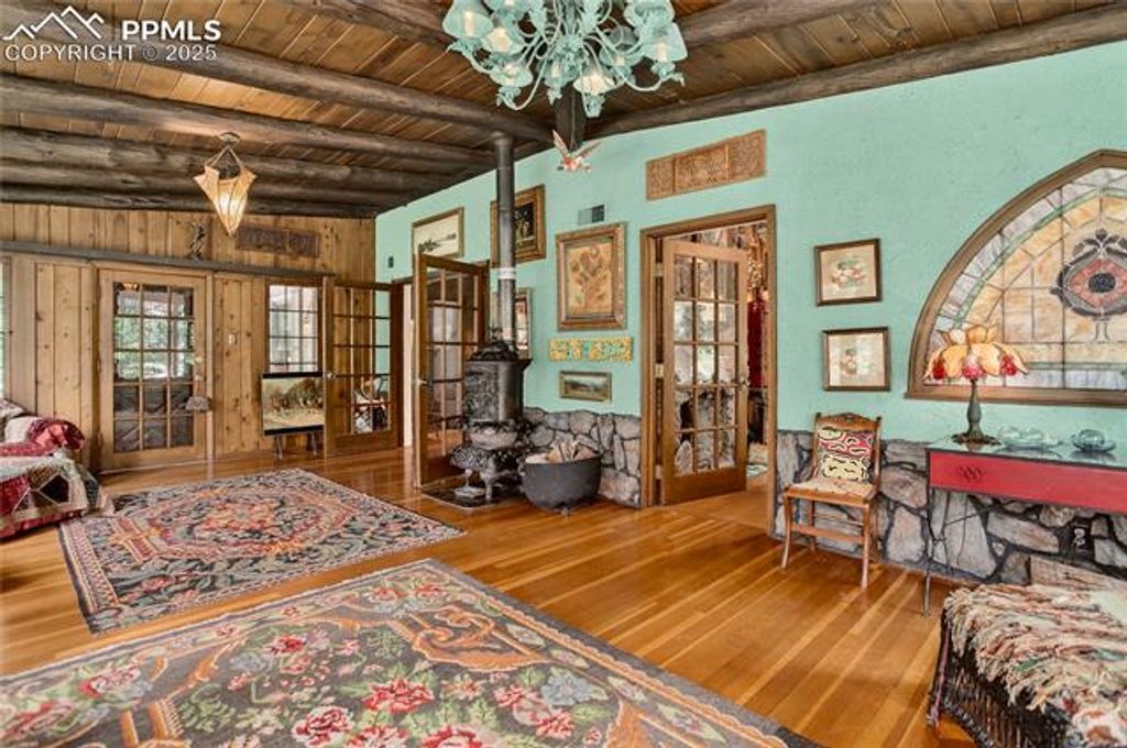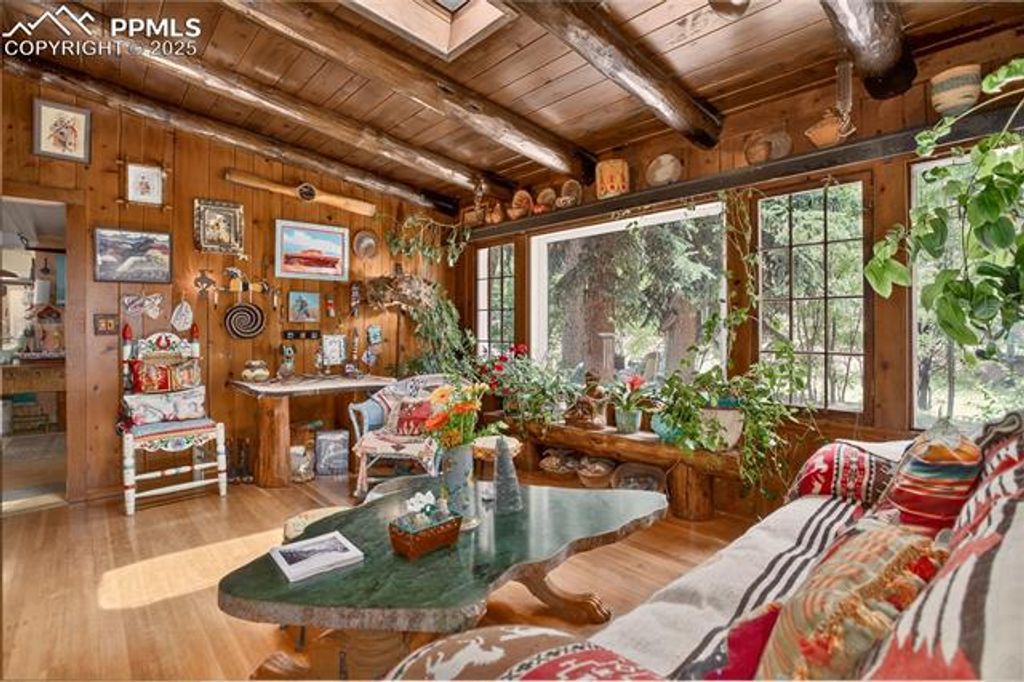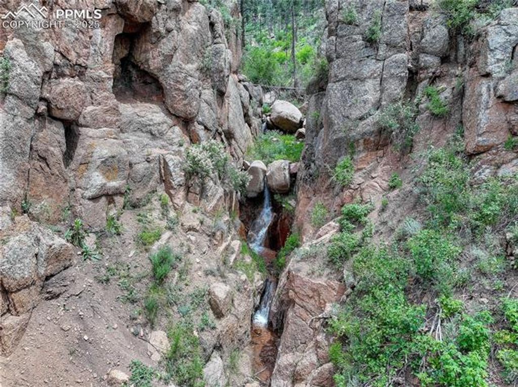 This one of a kind property offers 3 incredible opportunities with its historic 4 bed/3 bath residence, build sites for additional residences, & frontage along Hwy 24. Chipita Ranch is a stunning, wooded 59-acres at the base of Pikes Peak, 12 miles west of Colorado Springs with easy year-round access to Hwy 24, perfect for those seeking rural mountain living. Nestled on the sunny side of Chipita Park, this property is fully fenced with gated access and features a cascading waterfall, seasonal stream, towering pines, wildflower meadows, dramatic rock formations & abundant hiking trails. This versatile land has numerous potential build sites for single-family homes, with roads & partial utilities already in place. Approx. 387-feet of frontage along Hwy 24 with 2 access points & great visibility to the high volume of daily traffic. Amidst this natural beauty rests The Wellington House, a historic landmark of Ute Pass, built in 1888. This Victorian farmhouse has been lovingly updated over the years while preserving its original charm & wood detailing harvested from the surrounding forests by the original homesteaders. The spacious parlor offers wall-to-wall windows for natural light & the original 1880 Garland Parlor Wood Stove. The adjoining den showcases an antique stained-glass window, rustic wood paneling, & a handcrafted moss rock fireplace connecting to the dining area. The large farm-style kitchen includes an eat-in, vintage farm sink,1800s butcher block, & an Okeefe-Merritt gas stove. Sliding glass doors open to a flagstone patio & gardens watered by an alluvial well. The downstairs bath is highlighted by a Sundance Spa, stained-glass windows, & antique pressed-tin ceiling. A studio apartment with separate entrance features a full kitchen & rock fireplace, and has successfully served as guest quarters and both a short & long-term rental. This is a rare opportunity to own an exceptional property with a diverse range of possibilities.