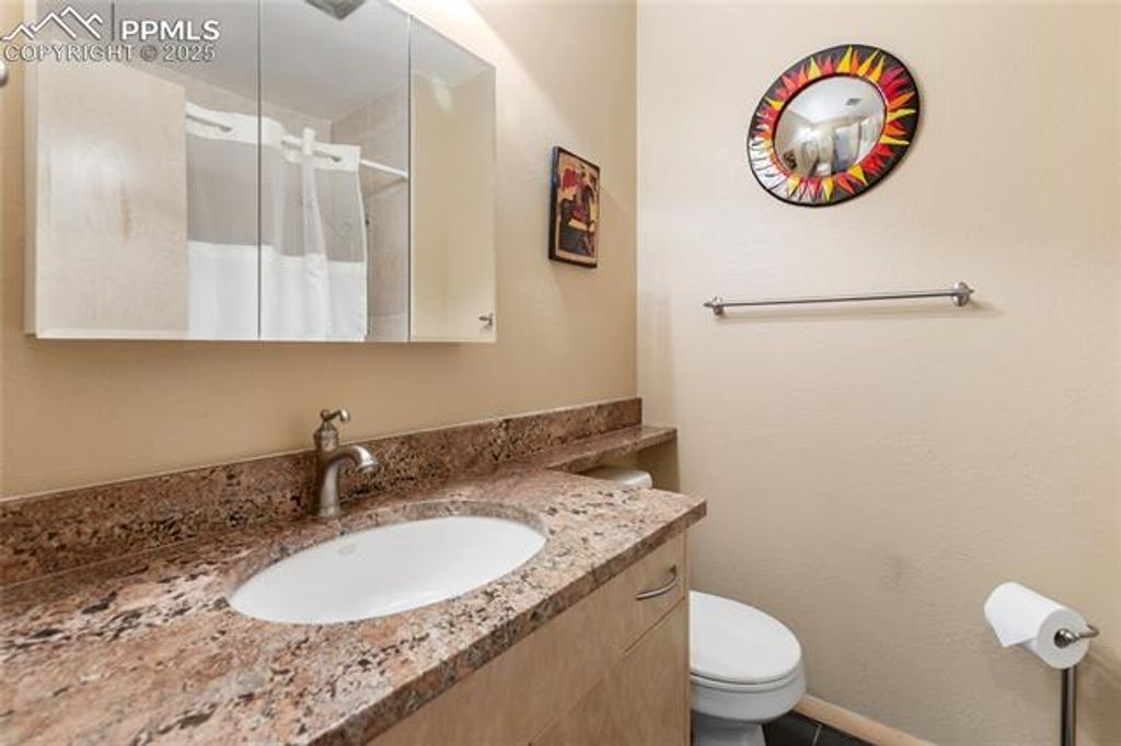 Views? Check. Spacious Rooms? Check. Yard big enough for a trampoline or a dog? Check. 3 bathrooms? Check. Solar? Check. EV charger in garage? Check. More views? Check. As Stefan from Saturday Night Live said, "This place has everything." The Crystal Hills neighborhood of Manitou Springs awaits you! Location, space AND views! This property has been well cared for and updated. So much flexible space - you could turn the secondary family room space in the basement into a home gym, an art studio, a huge office, or another bedroom. One downstairs bedroom is currently used as a sound studio. Walk out the basement into a yard with just enough grass to cool things down in the summer. Upper deck has a large awning for sunny afternoons. Terraced yard goes into Deer Valley Park, where you'll see lots of deer, a few bears, plus the occasional fox, a few thousand hummingbirds, and other woodland creatures. But wait, there's more!! You'll be so close to downtown Manitou, where residents are offered 50 hours per year of free parking in the historic shopping and restaurant district! Trails into Red Rock Open Space are just a quick walk from your front door. Please note - main level of home was originally designed for a person with a wheelchair. Light switches are lower, doors are wider for easy access.