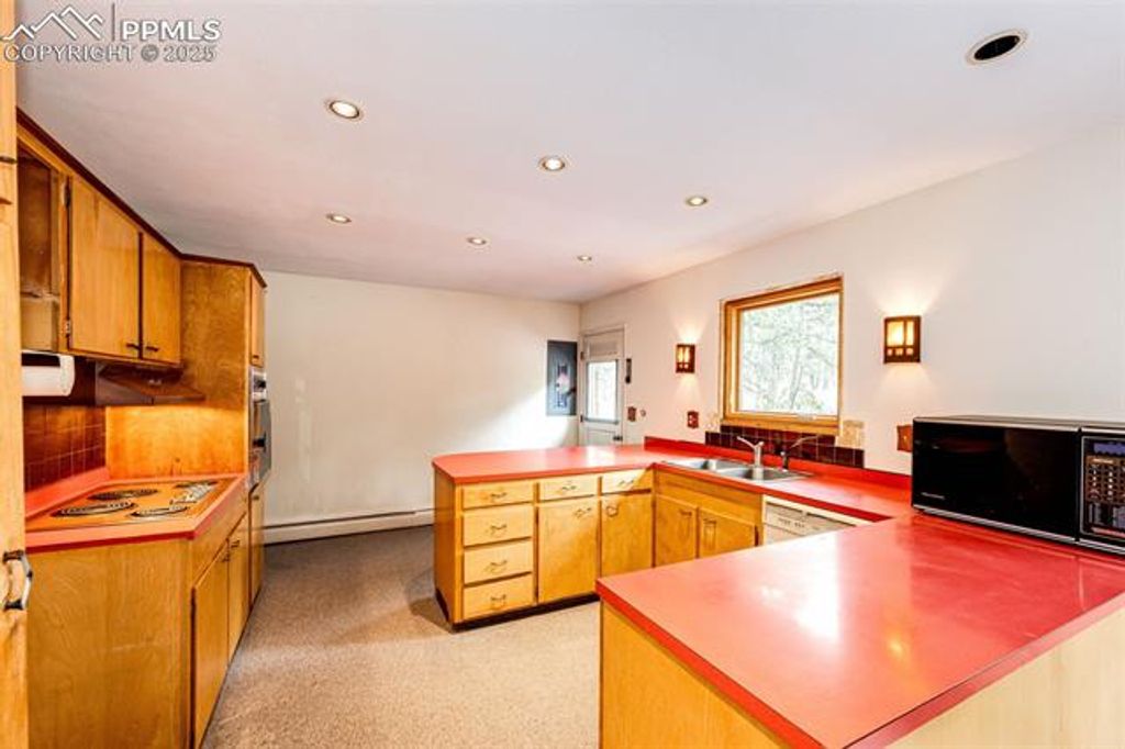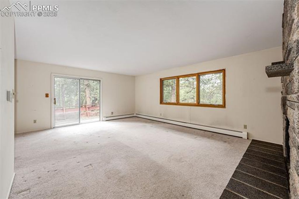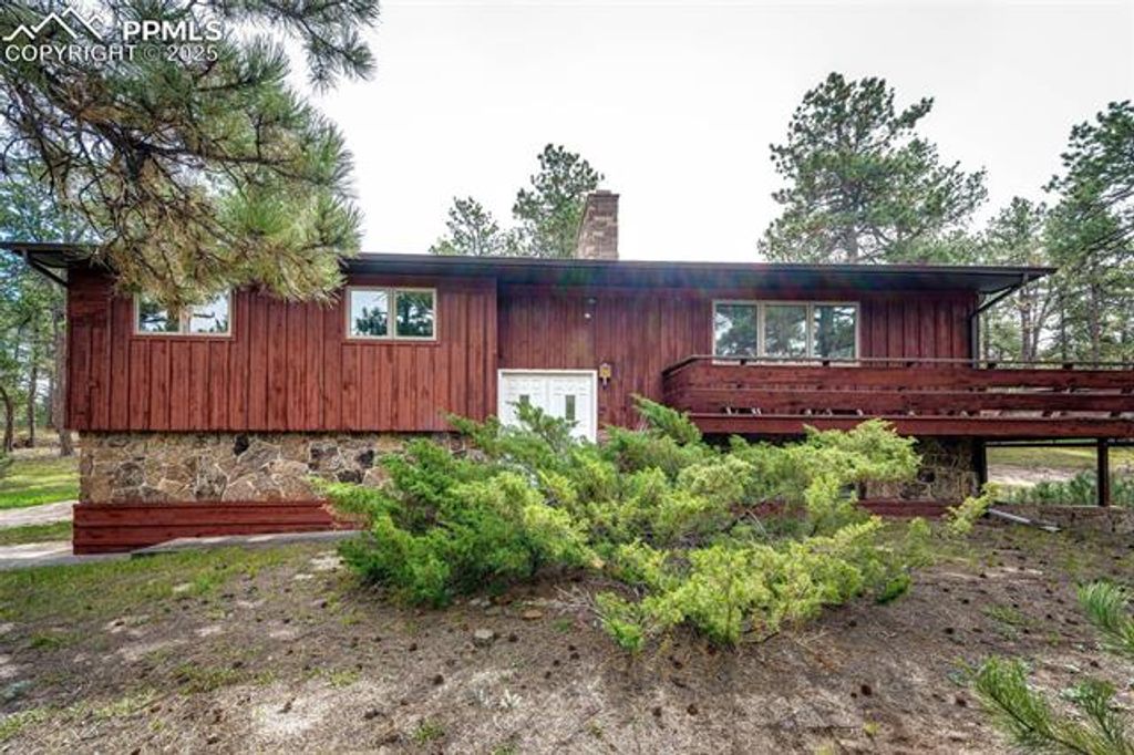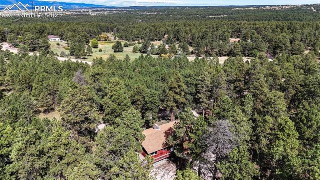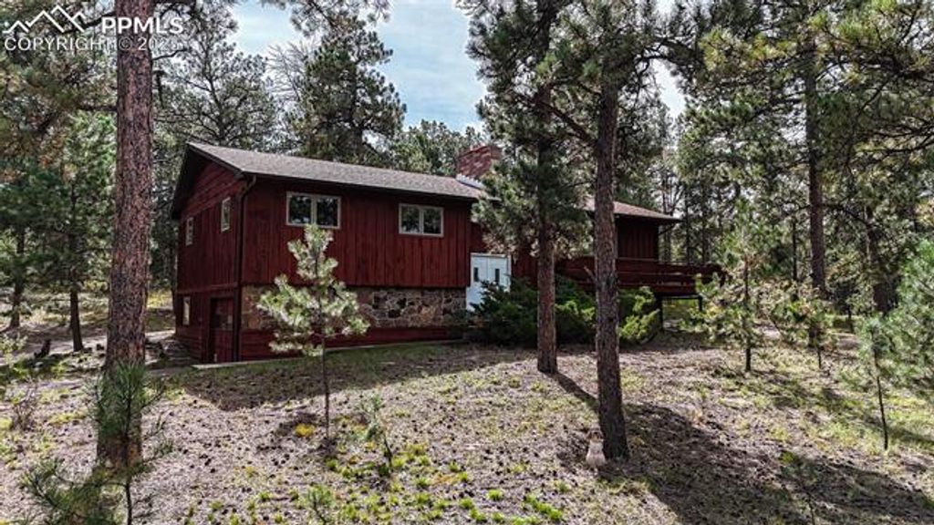 Nestled on over 5 private acres of Ponderosa Pines, this 1965 Bi-level home offers a blend of character, space, and rare opportunity to reimagine a property with your repairs and updating in a sought-after Black Forest location. Entering the home maintains its 1960's flair featuring a beautiful stone wall wood burning fireplace in the spacious living room connecting to dining room and open kitchen. Down the hall, a traditional layout includes the 2 bedrooms, full bath and plus a primary bedroom and its own three-quarter bath. The walk-out lower level expands the living space with a family room featuring a second stone wood burning fireplace. Laundry is in large utility area with additional roughed in plumbing for a sink, Bedroom (with no closet), three-quarter bathroom and garage access. Step outside to enjoy Colorado living at its best"” the property provides privacy, natural beauty, and frequent visits by the local wildlife. Conveniently located near trails, parks, the U.S. Air Force Academy, Garden of the Gods, and a wide variety of shopping, dining, and entertainment, this property offers the perfect balance of seclusion and accessibility. The elderly owner could no longer keep up maintaining the property that has been in the family for generations. He wanted everyone to know this home is a "Prize". Most of windows are newer Pella Windows. Lower Level was in the process of being remodeled and was not all finished i.e. ceiling, flooring, drywall, etc. The Well has been inspected, well pump was replaced and documentation to be provided. Roof has hail damage and needs to be replaced, claim is not an option. Septic has been inspected and needs repairs, possible replacement. The home is being sold in As-Is condition. This is a great opportunity to own in this area of Black Forest so don't miss out! Information is not guaranteed and it is the Buyers responsibility to verify.