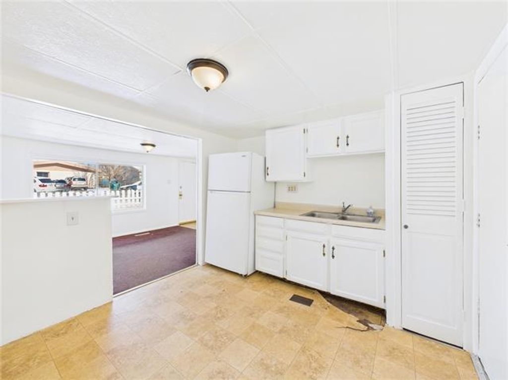 This charming 2-bedroom, 1-full-bathroom home features fresh updates including new paint and cabinets throughout. Comfort is ensured by a forced air heater and a mix of durable vinyl and cozy carpet flooring, highlighting a spacious living room. The convenient layout connects the kitchen directly to the laundry area, maximizing efficiency. The exterior offers significant utility with a fully fenced backyard, featuring a wooden privacy fence, RV access and parking, and a dedicated storage shed, complemented by a white picket fence in the front yard. Schedule a showing today!