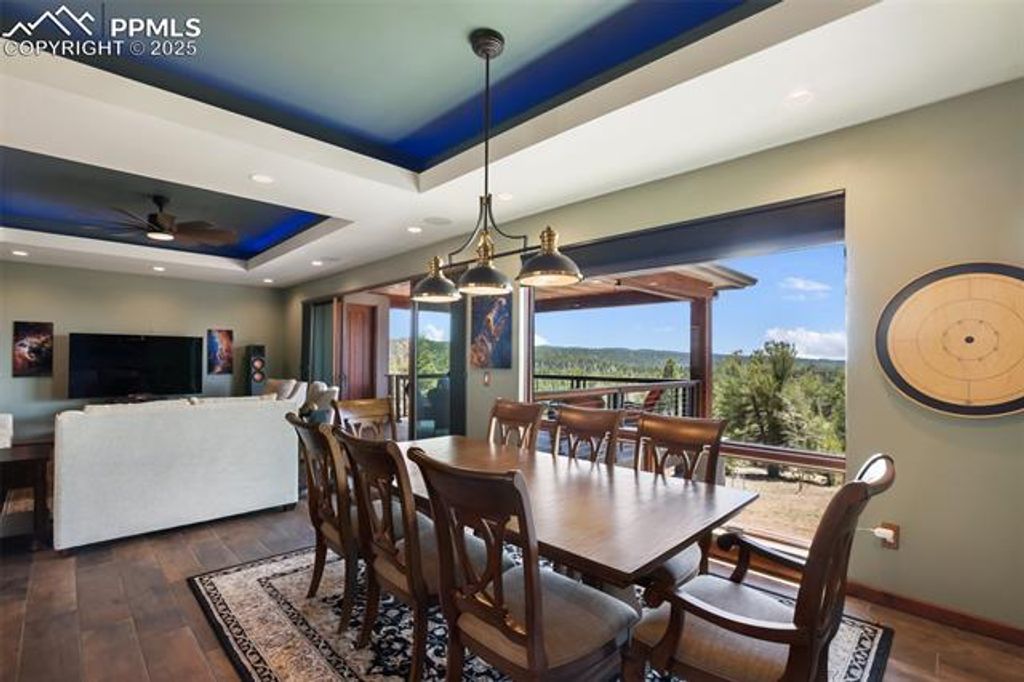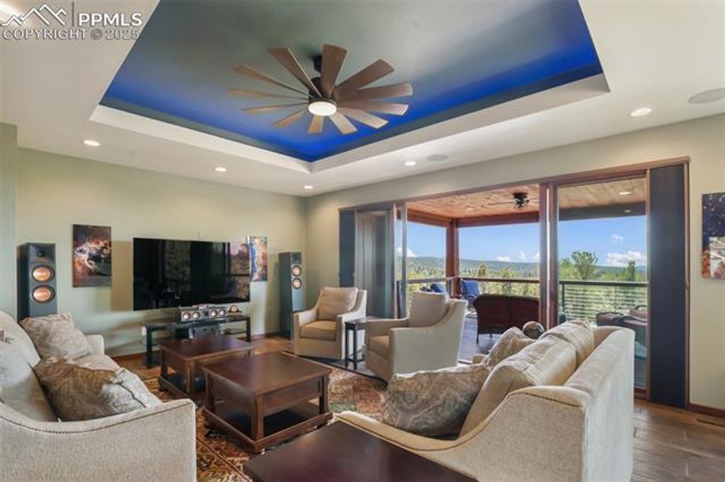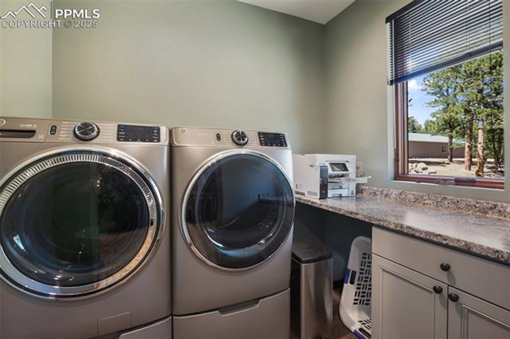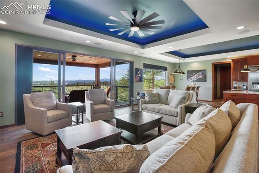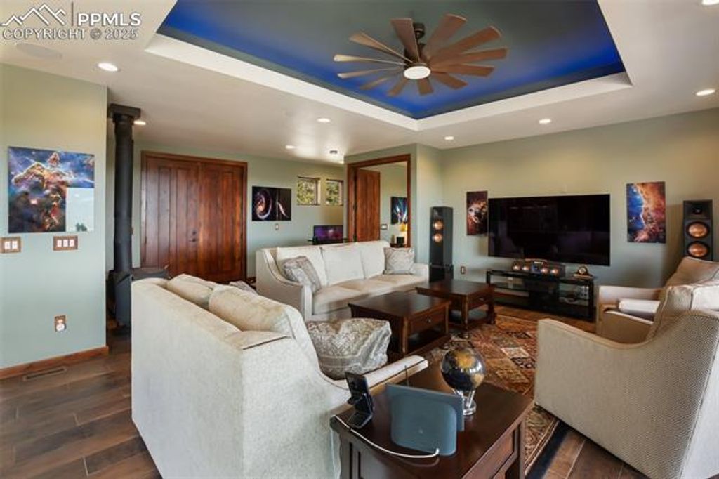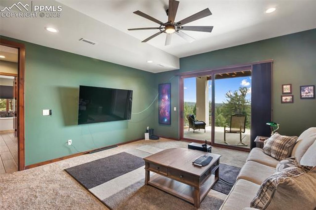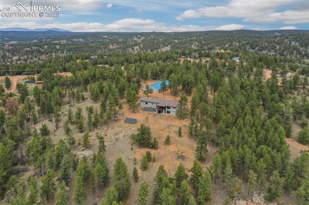 Experience luxury living in this nearly new mountainside home in rustic Florissant! Designed for ultimate serenity and security, this high-end retreat boasts two spacious primary suites, a home theater, and state-of-the-art smart home features throughout. Wake up to full mountain views from every room, highlighted by premium finishes and thoughtful design. The home showcases intricate attention to detail, including extra thick stucco, lifetime guarantee gutters with leaf filters, touch faucets, a dual fuel range, built-in surround sound, automated blinds, and a whole house humidifier and water filter system. Custom Pella windows and doors ensure quality and beauty, while a wireless security system and voice-activated controls for lights, blinds, appliances, and more elevate convenience and peace of mind. A full solar array and generator also provides off-grid capabilities as well. A large workshop is ideal for hobbies or business use, fully insulated and heated with a 6" concrete floor, RV hookup, and an additional 1- bedroom living area. The garage features an epoxy cover and heater for comfort and durability. Stay fully powered with solar, city electricity, or a diesel generator"”supported by solar batteries to ensure uninterrupted power. Set on 38 acres of forest and rolling hills, this property offers unparalleled privacy, breathtaking scenery, and a rare opportunity for luxury mountain living.