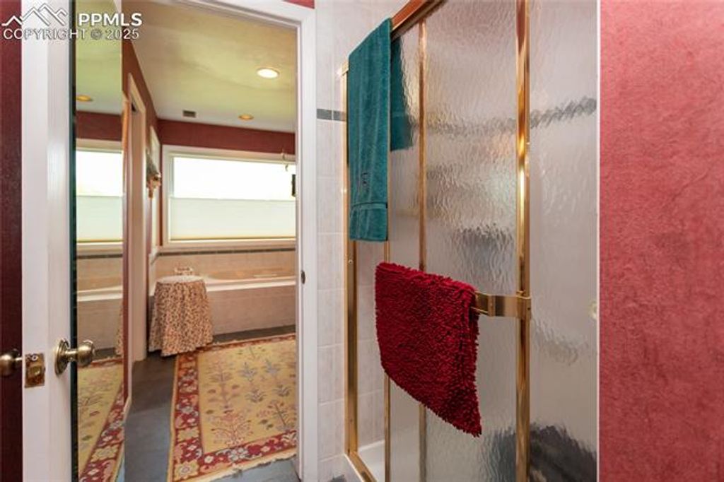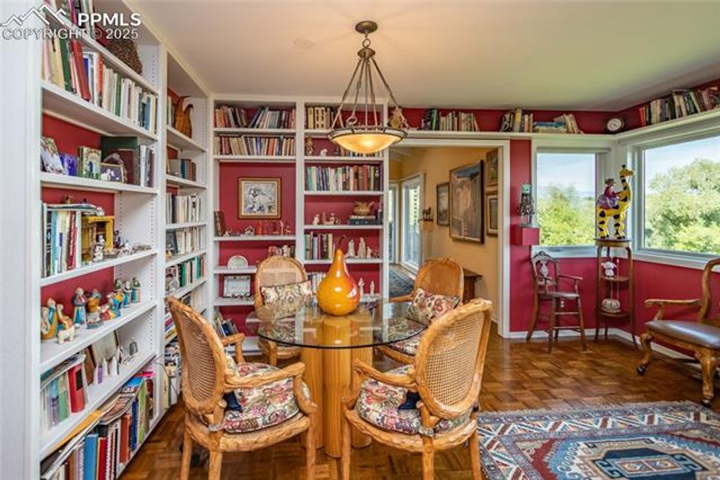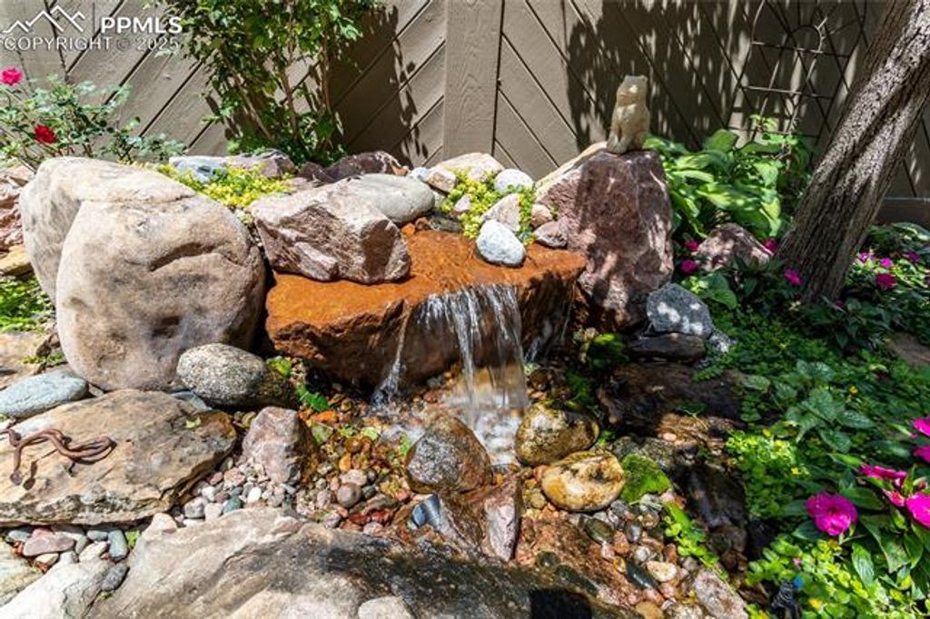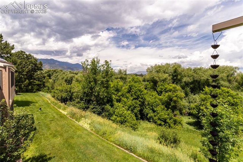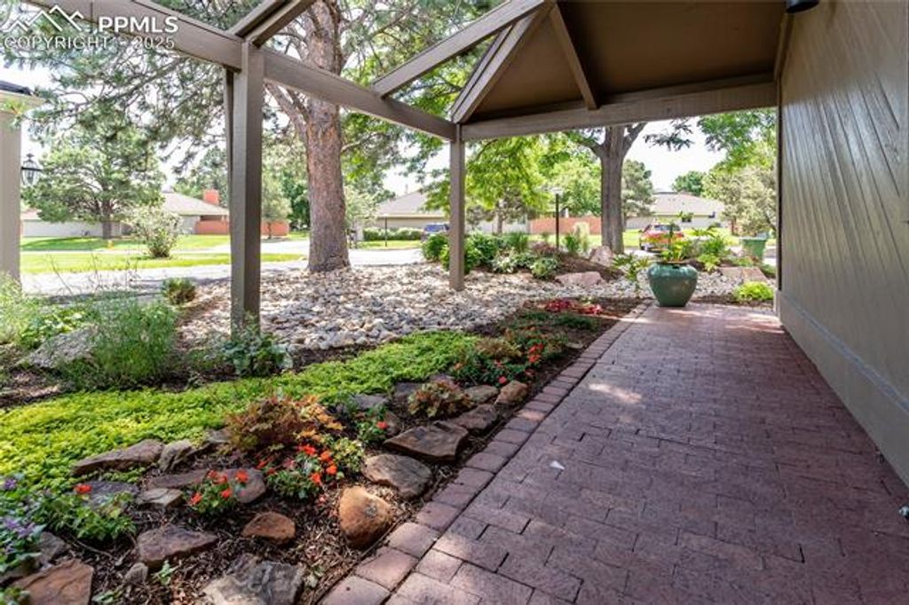 Welcome home to the Prestigious and maintenance-free community of Spring Grove. This home represents a rare opportunity as it sits on the north rim of the complex and offers fabulous views of the mountains and city. The property also backs to an open space where nothing else can be built. As you enter the home you are met with a tile entry and parquet floors throughout. The main floor boasts vaulted and beamed ceilings and a gas fireplace in the spacious living room. Also on this floor is the library/TV room with ample bookcases, another gas fireplace, and three large picture windows affording a beautiful view to the north, a dining room, and lovely remodeled kitchen. This floor offfers three accesses to the patio with beaitiful gardens and a Boulder Pond water feature which runs all year in winter and a covered and protected seating area with skylights, perfect for conversation and dining daytime or after dark. The large master bedroom on the lower level has a wonderful gas fireplace with a remote control that can be conveniently set to your favorite temperature. Also included are an ensuite bathroom, Jacuzzi tub, steam shower, and a walk-out to a covered flagstone patio. The guest bedroom is also located on the lower level. There is an expansive 42' x 22' wood deck creating the perfect atmosphere for dining and entertaining. Custom built-ins that provide elegance and functionality including a spacious two-car, heated garage that offers plenty of built-in storage cabinets and closets. Other features include central air. Situated in an unbeatable Broadmoor location, residents enjoy security and privacy with easy access to local amenities, shopping, dining, and community walking trails that connect the neighborhood together. This wonderful home is in excellent condition and shows refined craftsmanship with modern effects. Come take a look. Don't miss out on this property.