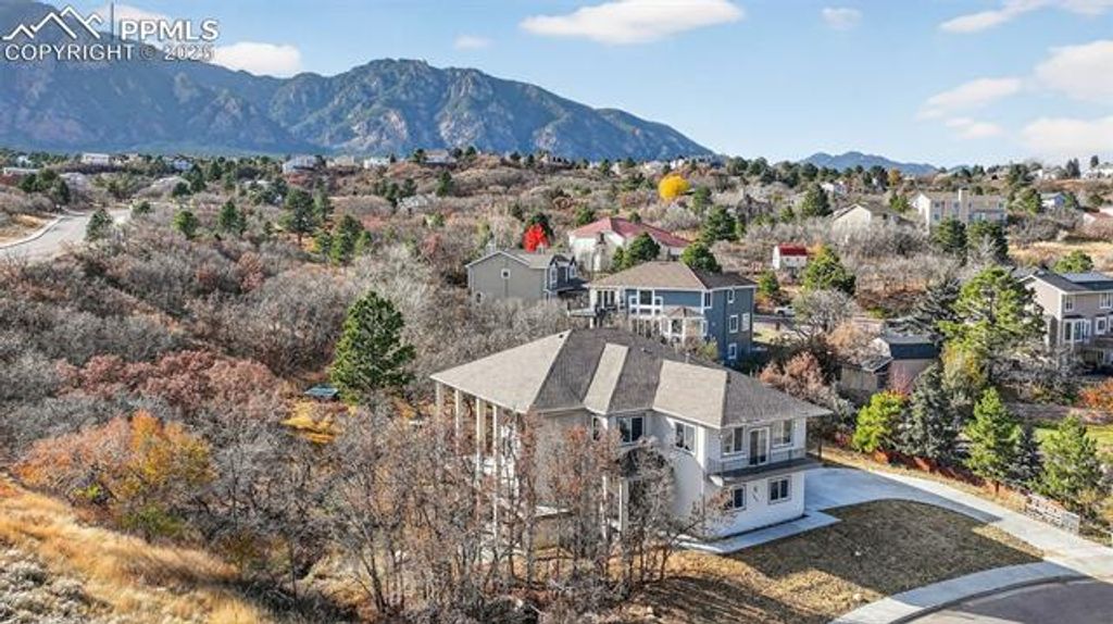 Nestled at the base of Cheyenne Mountain, this thoughtfully designed 6-bedroom, 7-bathroom home blends luxury, comfort, and natural beauty. The main-floor owner's suite offers a spa-inspired retreat with a soaking tub, double vanity, and standalone shower. Upstairs features four additional bedrooms"”two with private ensuites and two sharing a 3/4 bath"”plus a spacious bonus/game room. A junior ensuite is located in the basement, along with two powder rooms on the main and lower levels, providing added flexibility and privacy for guests. Soaring 20-ft ceilings in the great room create an airy, open feel, while 10-ft ceilings in the primary suite and 9.4-ft ceilings throughout the rest of the main level and basement add to the sense of space. The gourmet kitchen showcases a large island with Taj Mahal quartzite countertops, brushed nickel hardware, and high-end appliances, including a Frigidaire 66" x 74" fridge/freezer combo, ZLINE range with steam oven, microwave drawer, LG dishwasher, and Kraus metal sink. Custom Colt-finish cabinetry extends through the kitchen, walk-in pantry, mudroom, and basement wet bar. Additional highlights include LVP flooring, plush carpet in bedrooms and basement, Jeld-Wen windows, Fortress interior railings, Class 4 impact- and fire-resistant roof shingles, a Ruud A/C system, sump pump, radon mitigation, and a negative-pressure crawl space fan. The finished, insulated garage includes 8-ft Wayne Dalton doors and Chamberlain openers. Enjoy outdoor living with a large Trex Enhance deck, metal railings, concrete driveway and walkway, and a striking 4x8 solid alder front door. Mature scrub oak trees and a slow-flowing stream surround the property for a serene Colorado lifestyle"”all within the award-winning D-12 school district and minutes from The Broadmoor, I-25, DT COS and nearby parks, including Broadmoor Bluffs Park, Broadmoor Glen Park, and Cheyenne Mountain State Park, offering endless opportunities for recreation and relaxation.
