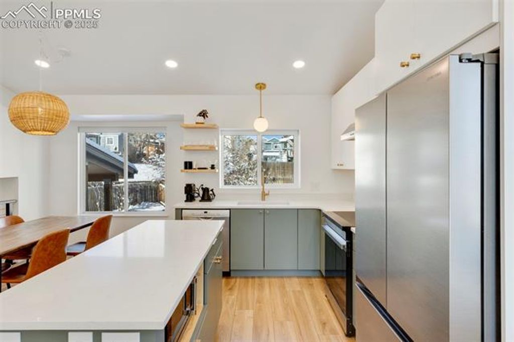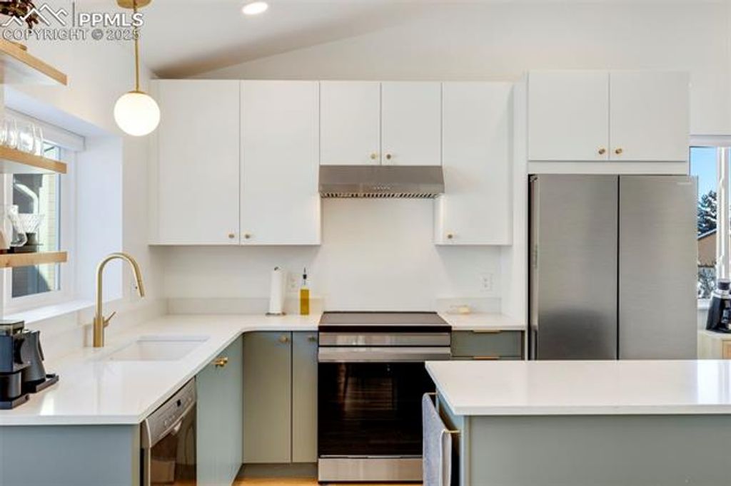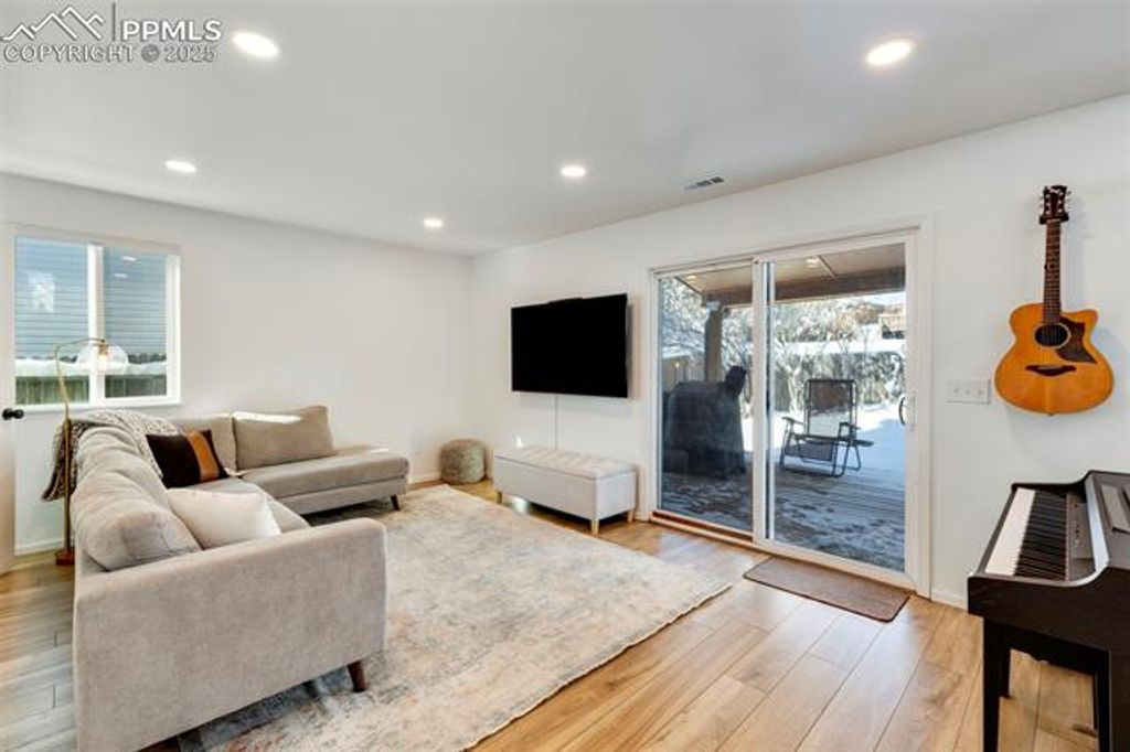 Experience a stunning blend of warmth, comfort, and style in this beautifully remodeled 3 bed, 2.5 bath gem perfectly situated in the highly desirable Briargate community! This immaculate home greets you with vaulted ceilings, skylights, and a flood of natural light throughout the open concept living, kitchen, and dining area. New LVP flooring flows effortlessly throughout, creating a warm and cohesive feel. The chef's kitchen is truly the heart - fully upgraded with new cabinetry, elegant quartz countertops, and sleek stainless steel appliances. Bask in a sea of light in the main-level living room or curl up in the lower-level where sliding glass doors lead you out to the covered deck. Every space has been thoughtfully refreshed with love and care, including new blinds, light fixtures, ceiling fans, railings, recessed lighting, and spa-inspired bathroom finishes. The generous primary suite boasts two closets and a private ensuite bathroom, nestled near two additional bedrooms and another full bathroom upstairs. Find convenience in the 2-car garage and an extra generous storage area not included in the square footage. Embrace peace of mind with significant recent upgrades: freshly painted exterior (2024), newer roof (2024), water heater (2021), AC (2020), and furnace (2018). Enjoy quick access to Woodmen, top-rated D20 schools, parks, restaurants, and shopping. Just across the street find a peaceful walking path with scenic views of Pikes Peak or enjoy the 1-mile stroll to Candleflower Park. A sea of lovely tulips and daffodils should greet you in the front flower bed this spring. This move-in-ready home with no HOA truly has it all!