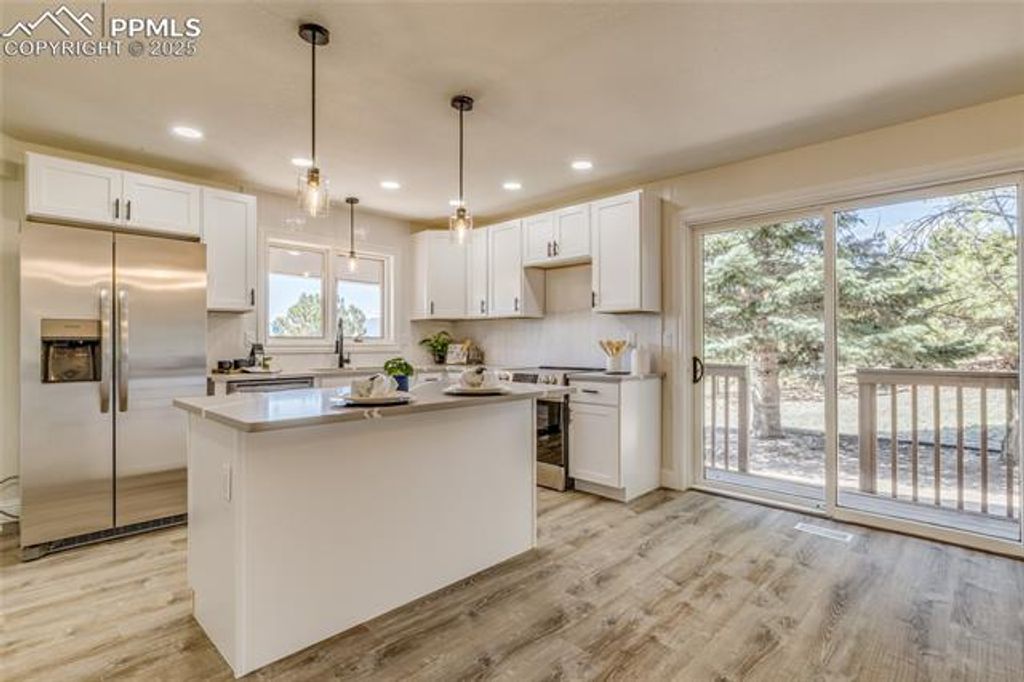 Nestled in the highly desirable Woodmoor subdivision, this beautifully remodeled home offers the perfect blend of modern elegance and serene mountain living. With 3 spacious bedrooms and 3 updated bathrooms, the home is thoughtfully designed for comfort and style. The heart of the home is the expansive open-concept kitchen and dining area"”perfect for gatherings"”featuring high-end finishes, ample natural light, and seamless flow into the inviting living room. A versatile nook in the living space offers the perfect setup for a home office or reading area, ideal for today's flexible lifestyles. All three bedrooms are conveniently located on the upper level, including a truly impressive master suite with generous space, a walk-in closet, and stunning mountain views that create a peaceful retreat. The finished basement offers a bonus room"”perfect for a media room, gym, or guest space. Sitting on nearly an acre, the property boasts a massive yard where deer and local wildlife are frequent visitors, adding to the tranquil, Colorado feel. Whether you're hosting summer barbecues or enjoying quiet mornings on the patio, this home is perfect for entertaining and enjoying the natural beauty that surrounds it.