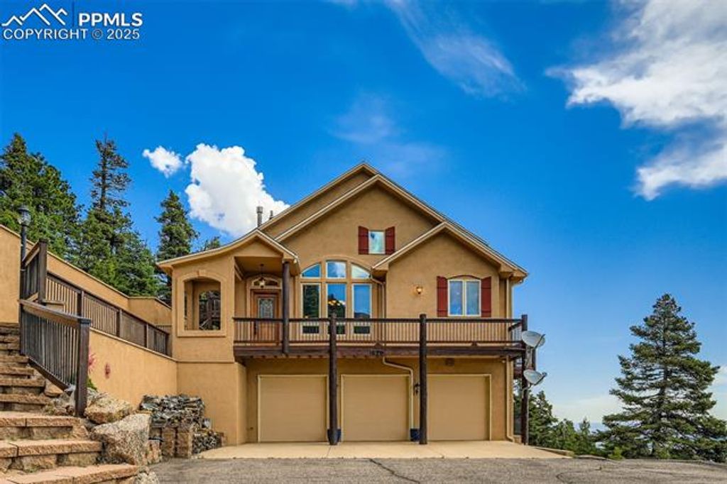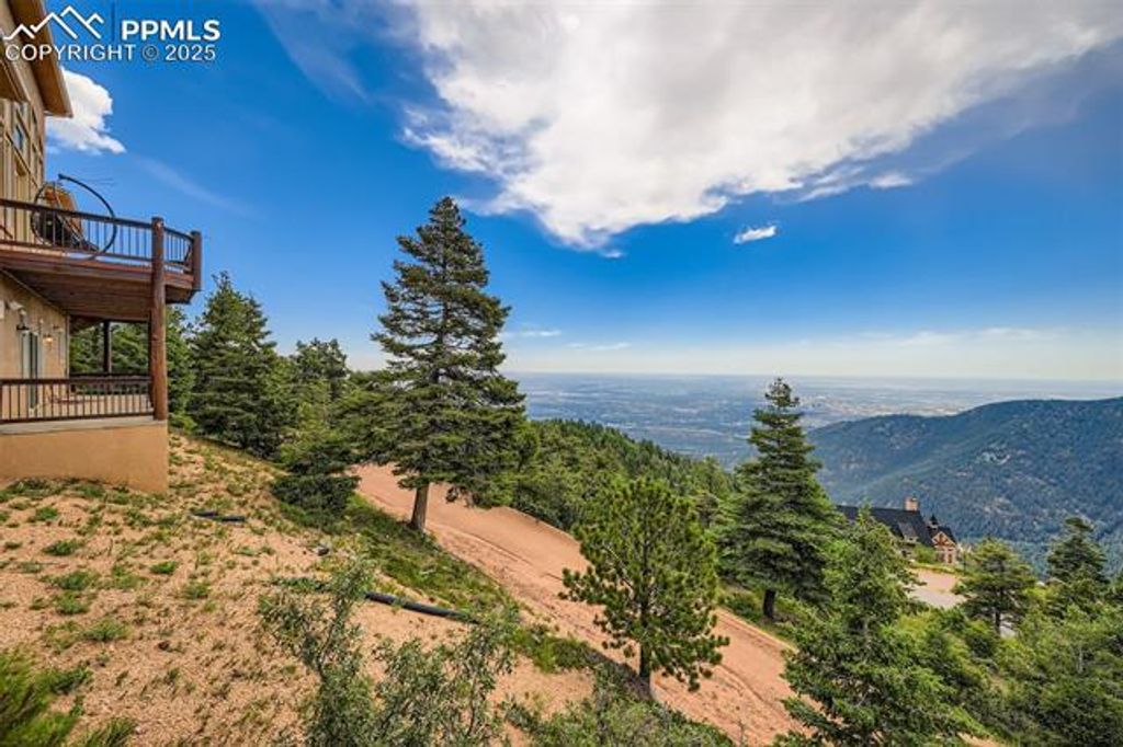 Don't miss this Top Of The World listing! NEW ROOF AND SKYLIGHTS! Looking for views and all that classic luxury has to offer? This one has it all. Expansive mountain and city views from every bedroom and living area! With all the charm and warmth of a true Colorado mountain home, the quality and craftsmanship of this two-story stucco gem is fully displayed. Upon entering, notice the perfectly placed window seat and the custom wood entry door. This entry area opens to a huge great room, complete with the elegance of a custom overlook from the second story, two-story vaulted ceiling, custom floor to ceiling windows and skylights, wood plank floor, speakers, a two-story fireplace, and an exit through French doors to the custom deck which overlooks Colorado Springs and the Plains through valley and the mountains below. The kitchen will delight the chef with upgrades and quality appointments, including stainless steel appliances throughout: gas cooktop, wall oven and microwave, dishwasher, refrigerator, and ice machine. Granite counters, breakfast bar, brushed bronze fixtures, including a touch-faucet, a counter bar, two kitchen sinks, a garden window, a built-in desk area and pendant lighting complete the elegant feel of the kitchen area. The master bedroom is generous in space and luxury, featuring floor to ceiling windows and a custom door that exits to the deck. The fireplace in the master bedroom is perfect for cozy Colorado nights. The ensuite 5-piece master bath includes a picture window that looks out to the city of Colorado Springs and further out to the Colorado Plains. The large walk-in master closet allows for lots of storage. Upstairs, the two bedrooms and the loft have views unmatched. A charming bathroom is shared by these spaces, complete with a custom vanity. The basement includes a family room area with doors that open to a covered porch. Don't forget the massive storage room with radiant floor heat! See it today!