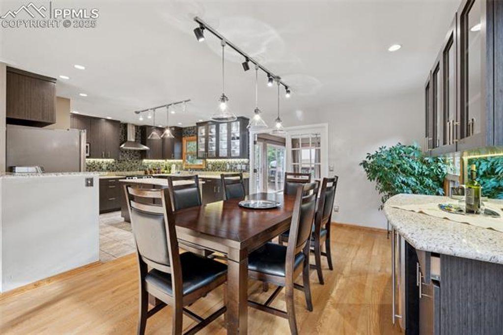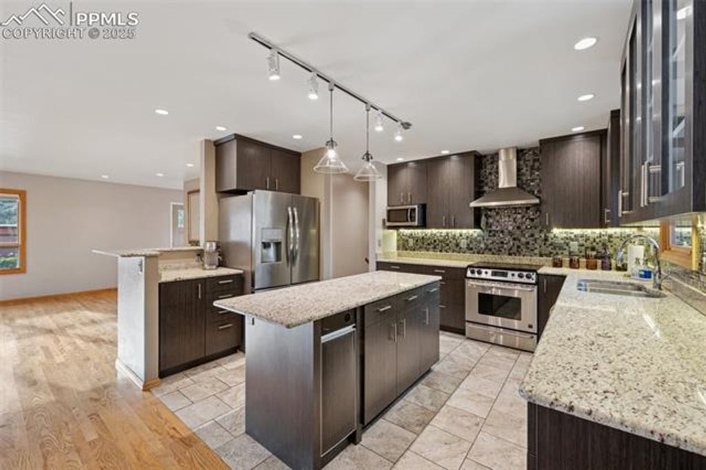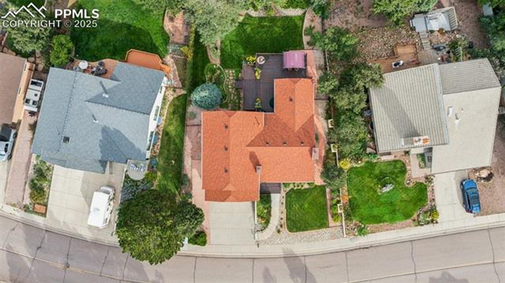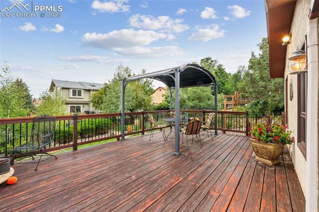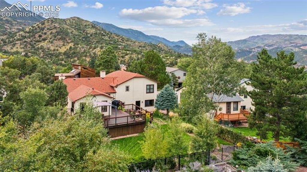 Discover this immaculate 3,296 sq. ft. residence where comfort and modern sophistication converge. Perfectly designed for multigenerational living, its spacious 5-bedroom, 5-bathroom multi-level layout ensures ample privacy and space for everyone. Beautiful natural ash hardwood floors grace many areas of the home, lending a touch of timeless elegance. At the heart of the home is a gourmet kitchen, thoughtfully remodeled in 2015. It boasts a large prep island, a chic glass backsplash, and exquisite granite countertops from Tops In Stone. Key updates provide efficiency and peace of mind, including a new roof in 2024 and a comprehensive cooling system with central A/C, a circulating fan, and a whole-house attic fan for optimal summer comfort. Additionally, radon mitigation system already installed. Step outside to an entertainer's paradise. A huge deck overlooks a lush, meticulously landscaped yard, kept vibrant all season long by an automatic sprinkler and drip irrigation system. Nestled in a quiet neighborhood with breathtaking mountain views, this home is an outdoor lover's dream. You are just a short walk from premier hiking and biking trails and Red Rocks Open Space, minutes from the iconic Garden of the Gods. We invite you to explore this exceptional property and envision it as your new home.