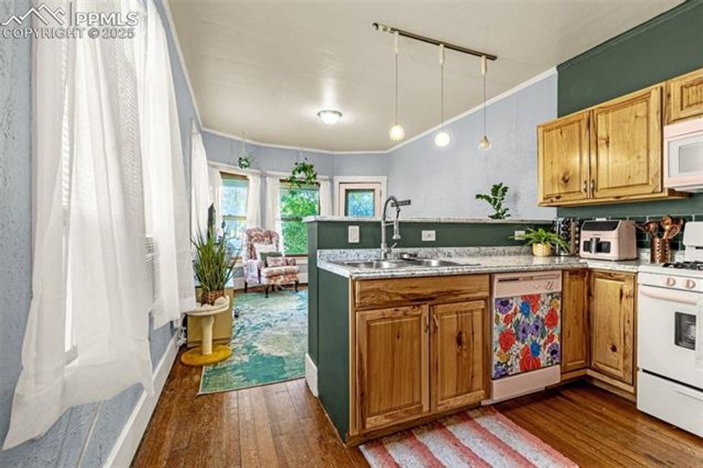 Small in size but overflowing with personality, this historic downtown gem is full of charm and stories. Once home to renowned photographer Myron Wood, it blends a rich artistic history with the comfort of a full 2015 renovation"”including updated plumbing, electrical panel, new water and sewer lines, and completed foundation work for worry-free living. Inside, original hardwood floors, custom built-ins, and generous windows create a warm, light-filled space. The kitchen features inviting hickory cabinetry, while the beautifully tiled bathroom adds a touch of craftsmanship. A thoughtful layout with bar seating makes entertaining effortless, and the stackable washer/dryer brings everyday convenience. Step outside to enjoy a cozy front porch, private back deck, fenced yard, off-street parking, and a handy storage shed. Best of all, you're just a short stroll from downtown's vibrant art, dining, and music scene"”making this petite charmer as connected as it is unique.
