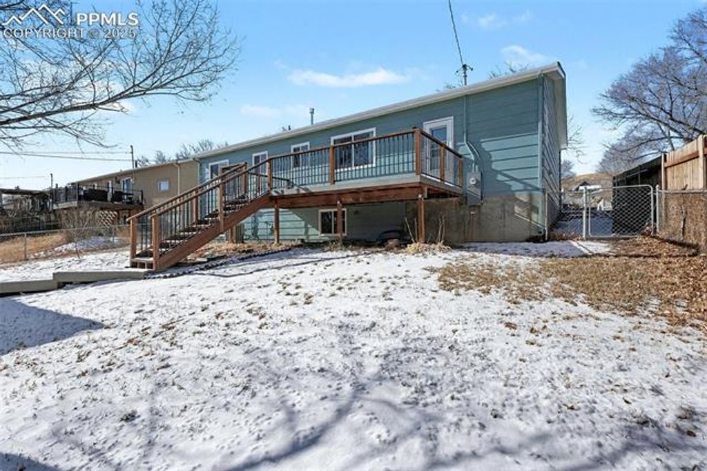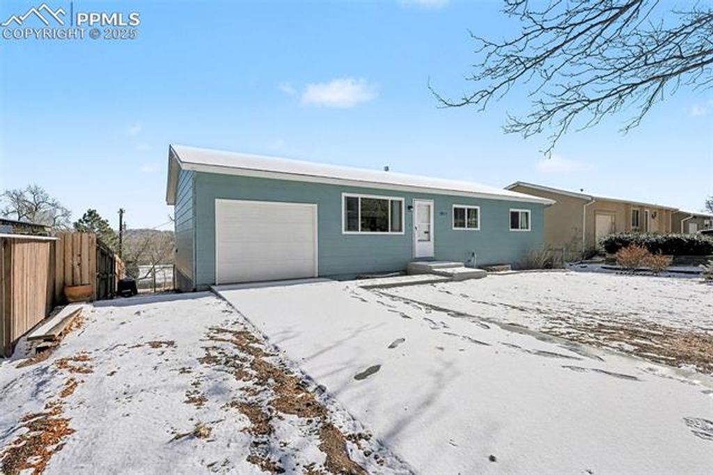 Welcome home to a charming ranch style retreat that blends fresh updates with timeless comfort. From the moment you arrive, the new driveway, walkway, and front steps create a polished first impression, framed by new exterior paint that gives the home a crisp, inviting look. Step inside to find updated interior paint and brand new carpeting that create a warm, move in ready feel throughout the main level. The heart of the home is the beautifully remodeled kitchen, featuring granite counters, new stainless steel appliances, and a stylish sink and faucet that make everyday cooking feel special. Main level bedrooms offer easy, convenient living, while the full unfinished garden level basement provides natural light and incredible potential for future expansion, storage, or a custom hobby space. Out back, a large composite deck overlooks the fenced yard, ideal for gardening, play, and outdoor entertaining. A delightful greenhouse or craft shed invites you to nurture plants year round or enjoy a creative studio. Take in Pikes Peak views from the front and sparkling city views from the rear, a reminder of Colorado's beauty in every season. With an attached 1 car garage and the washer and dryer included, this lovingly updated home is ready for you to settle in and start your next chapter.