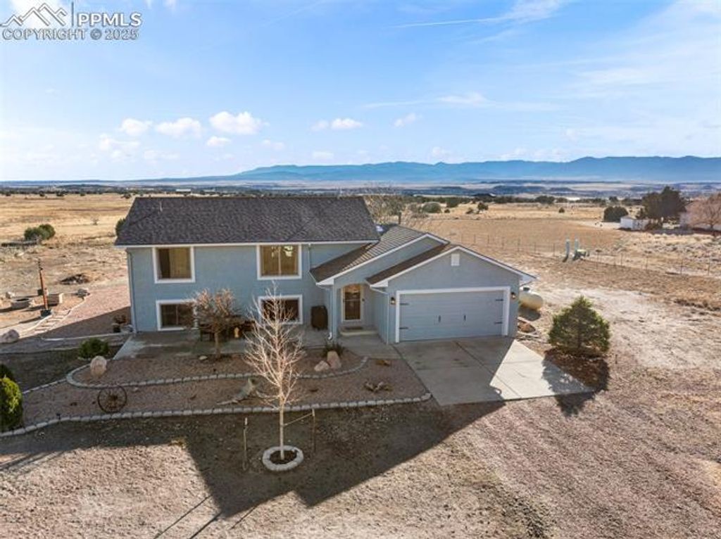 Welcome to this Updated beautifully kept 4-bedroom, 2-bath bi-level home in the highly desirable Top Rail Ranch community"”set on a spacious 2.8-acre corner lot where horses, livestock, and all your animals are welcome. This stucco home offers the perfect blend of rural comfort, modern updates, and open space with NO HOA. Step inside to find two inviting living areas, including a vaulted-ceiling main living room and a large lower-level family room with additional space ideal for a rec area, playroom, or home office. The kitchen features LVP flooring, a pantry, and all included appliance, enjoy the views from dining room sliding doors that open to the fenced backyard"”views perfect for indoor/outdoor living. Both bathrooms have been updated, and the primary bedroom includes its own ensuite with a stylish sliding barn door. Additional upgrades include fresh interior and exterior paint, new carpet, updated lighting, and six-panel doors throughout. -The xeriscaped front yard ensures easy low-maintenance curb appeal, and a storage shed adds extra convenience. Outside, enjoy peaceful country living with multiple fully fenced pastures, separate entries, and an inviting backyard complete with a fire pit area under string lights"”ideal for evenings spent with friends and family. The community features underground utilities that preserve your stunning mountain views and offers great opportunities for walking, biking, and riding. Located minutes from Florence. Pueblo and C.C. & Ft. Carson