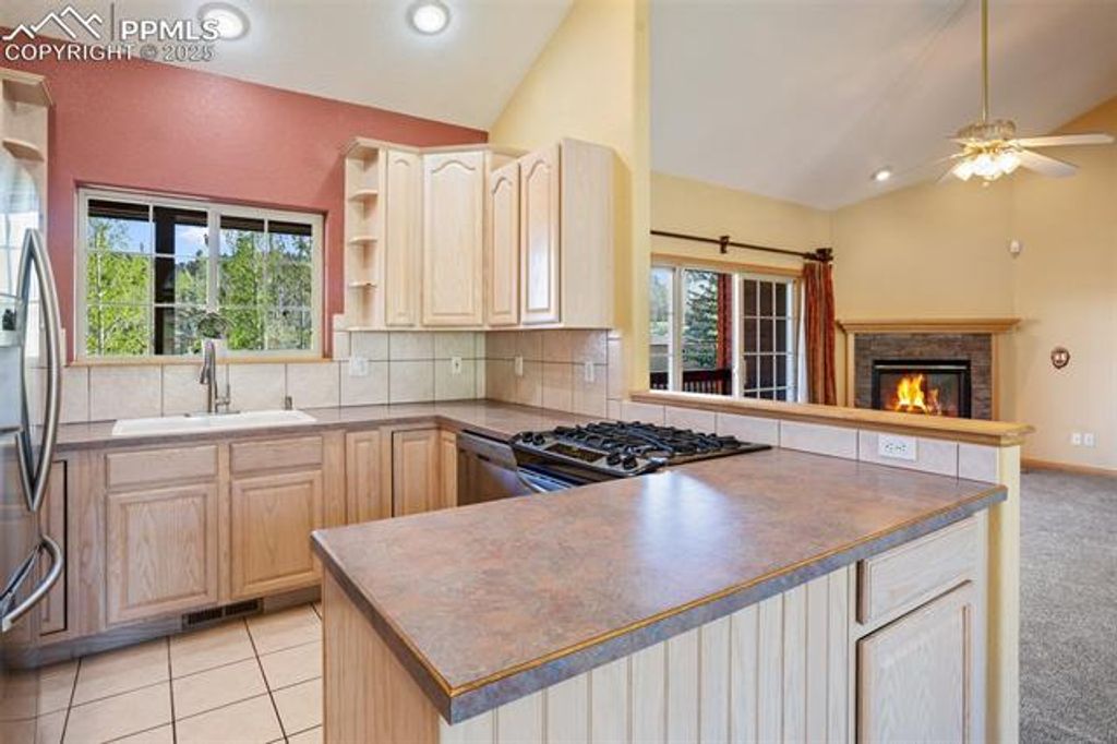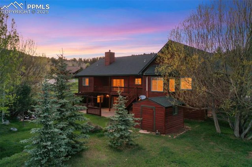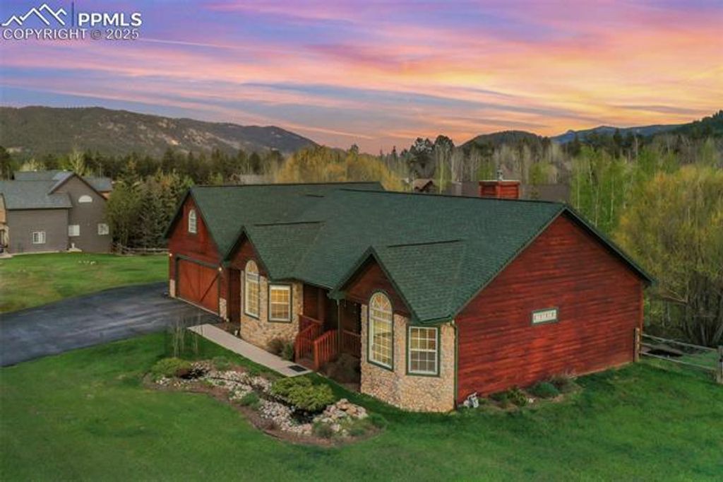 Welcome to a meticulously maintained, single-owner home nestled in the heart of Woodland Park, Colorado. This expansive 5-bedroom, 3-bathroom residence offers 3,742 square feet of thoughtfully designed living space on a beautifully landscaped 0.44-acre lot. From the moment you arrive, the tranquil water features"”a gentle stream in the front and a cascading waterfall in the back"”set the tone for the peaceful mountain lifestyle this home provides. Inside, the open-concept layout seamlessly connects the main living areas, enhanced by a cozy gas fireplace that invites you to relax and unwind. Recent updates include brand-new carpet and fresh paint upstairs, along with a one-year-old gas furnace, ensuring comfort and efficiency year-round. The kitchen and living spaces flow effortlessly to the covered back deck and patio, ideal for entertaining or simply enjoying the Colorado outdoors in your fully fenced backyard. Additional features include a cinema room for movie nights, a sauna for ultimate relaxation, and an oversized two-car garage with convenient overhead storage. A matching shed provides even more storage options, blending seamlessly with the home's exterior. The six-year-old architectural shingles offer durability and curb appeal, while the well-cared-for landscaping adds charm and function. Located just minutes from downtown Woodland Park, this home offers easy access to shopping, dining, and local amenities, all while enjoying the quiet beauty of mountain living. Don't miss this rare opportunity to own a turnkey property in one of Woodland Park's most desirable neighborhoods.