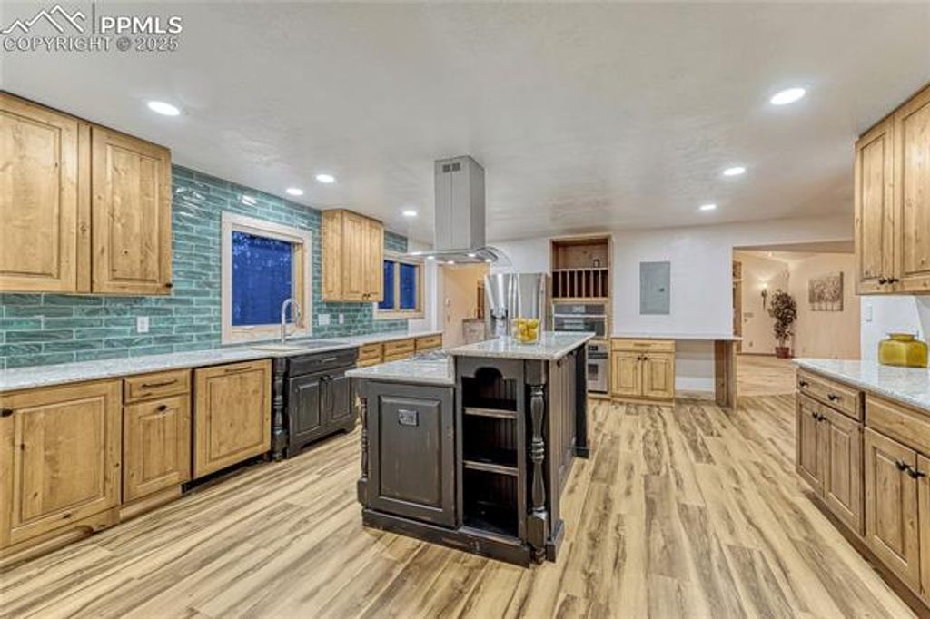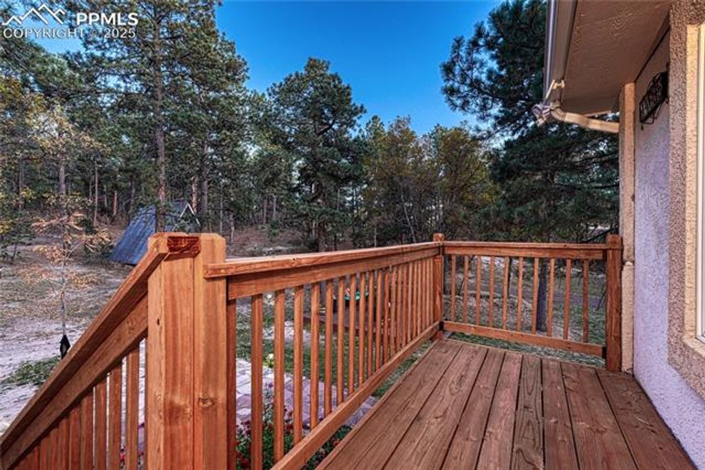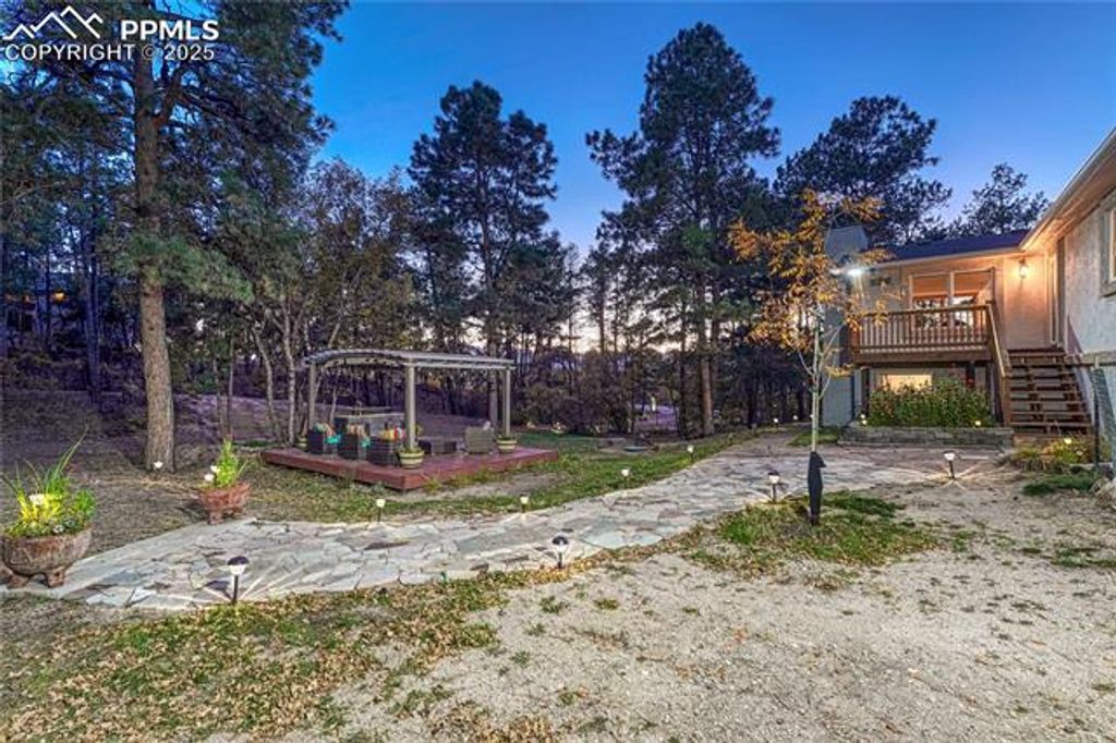 *5 Bedrooms *3.5 Bathrooms *6-Car Garage *4,103 Finished Sq Ft on 5.7 Private Acres *Newly Renovated Kitchen with Granite & Custom Hickory Cabinetry *Brand New Roof *Instant water heater *Primary Suite with Sitting Area *Dog Wash *Heated Workshop with concrete floor *Flagstone floor with radiant heat *Charming A-Frame Cabin with ADU Potential *Peaceful Wooded Setting *Raised deck with outdoor kitchen and pergola *salt water hot tub You will love this newly renovated home located in the pine trees on 5.7 acres. This retreat at 14695 Roller Coaster Road offers the perfect blend of privacy, practicality, and Colorado character. With 4,203 square feet, this home lives large and feels like a modern mountain sanctuary just minutes from Monument and Northgate conveniences. The heart of the home is the brand new designer kitchen, featuring rich, two-toned cabinetry, with a richly stained center island for contrast and warmth. A granite island with a gourmet gas cooktop, and striking tile backsplash make this kitchen perfect for everyday living and entertaining. The open-concept living and dining areas flow seamlessly, highlighted by large windows and warm wood accents that frame your forest views. The primary suite is complete with a private sitting area, custom lighting and speakers, easy outdoor access and a huge walk in closet with attached laundry( and even a dedicated dog wash). Downstairs, you'll find a cozy family room, the 4th bedroom, a bath, and a non-conforming fifth bedroom or office. Step outside to relax on the attached deck or covered patio while listening to the wind through the pines or your favorite tunes on the wired in speakers. A heated workshop is ready for projects or storage, and the A-frame cabin offers potential as an artist's studio, guest house, STR or office. With a brand-new roof, fresh updates throughout, and plenty of room to breathe, this property balances tranquility and functionality in perfect harmony.