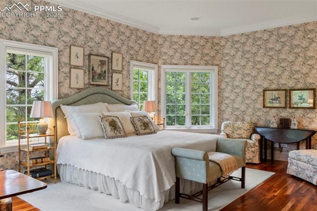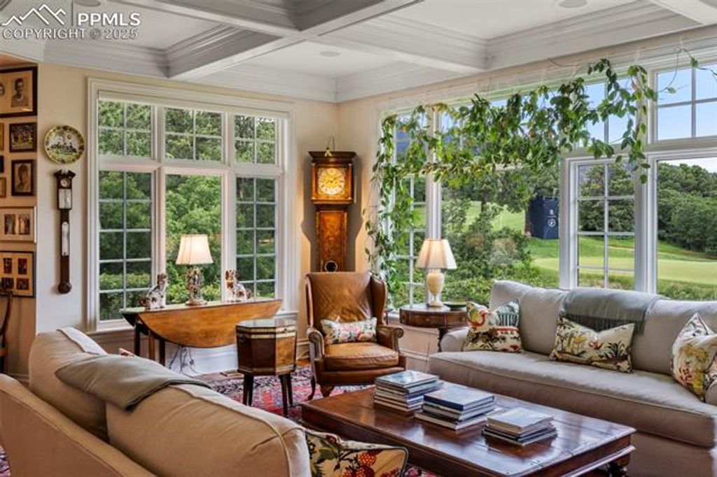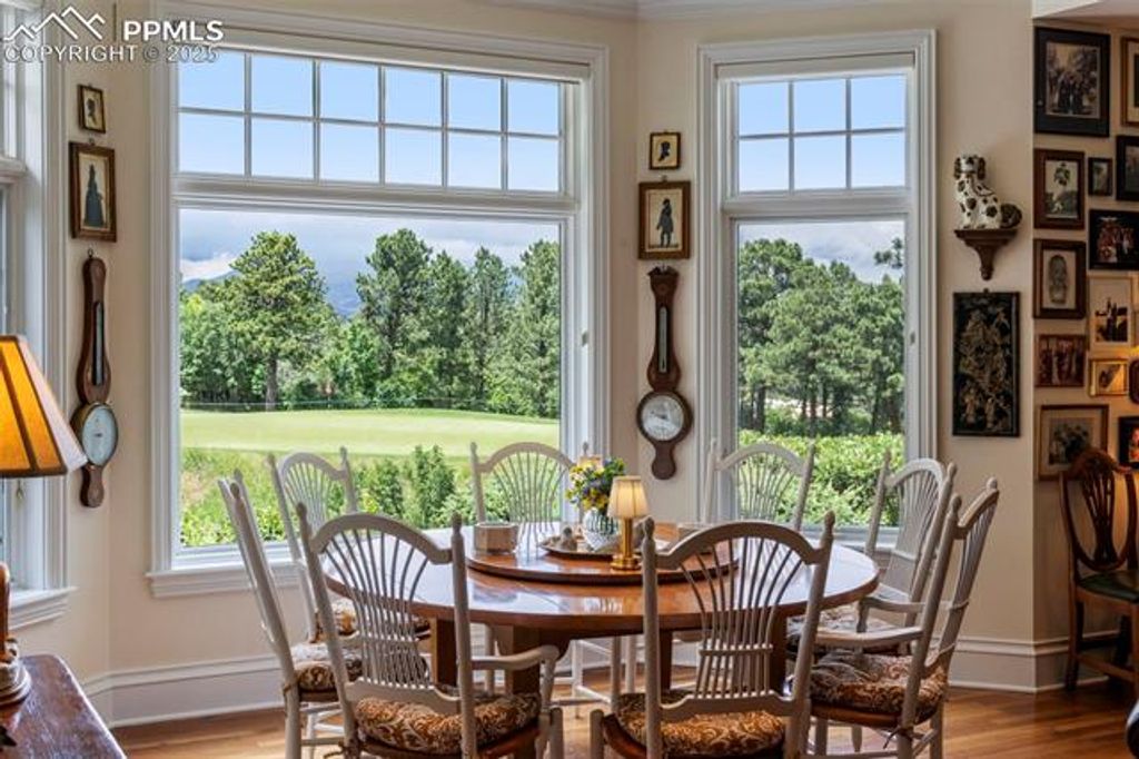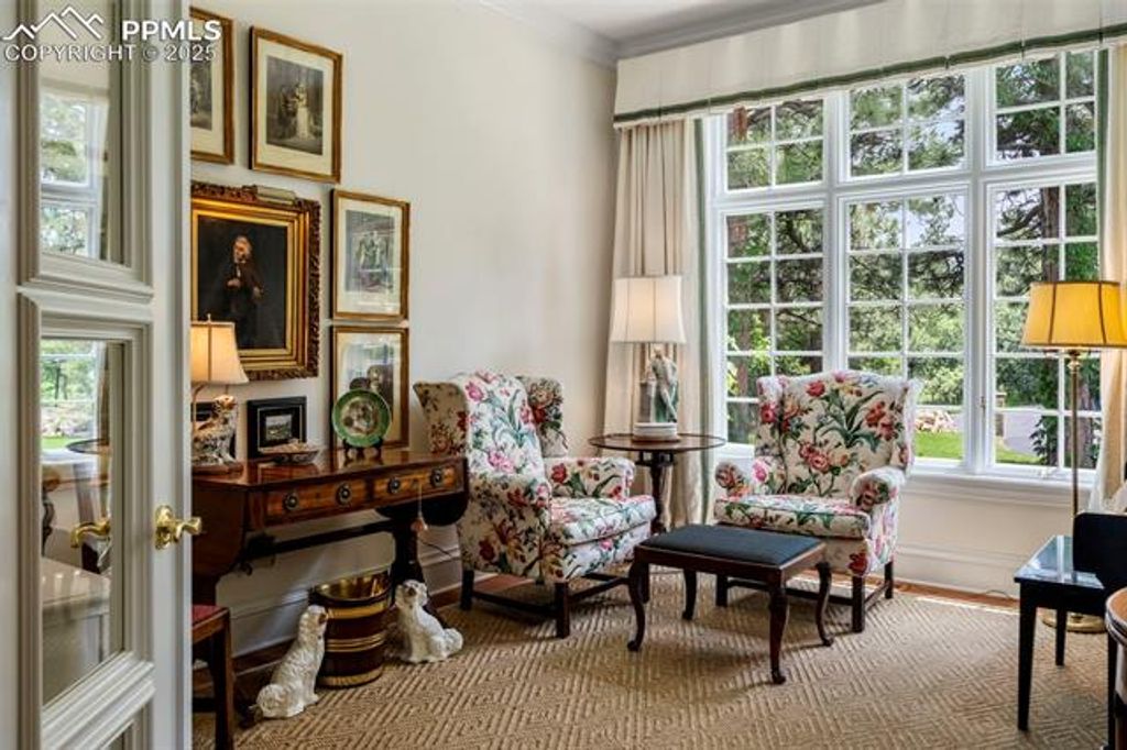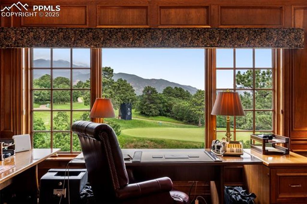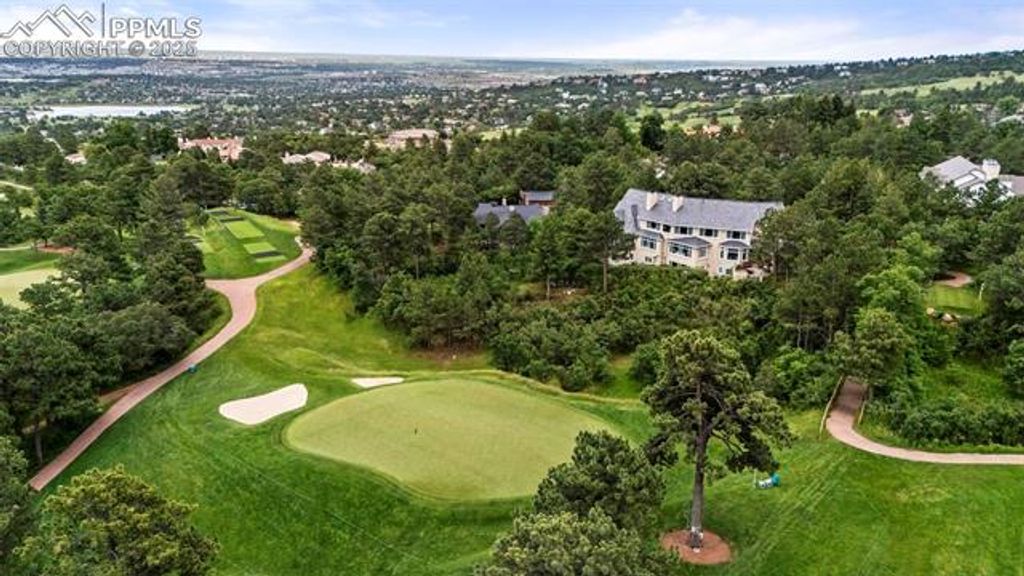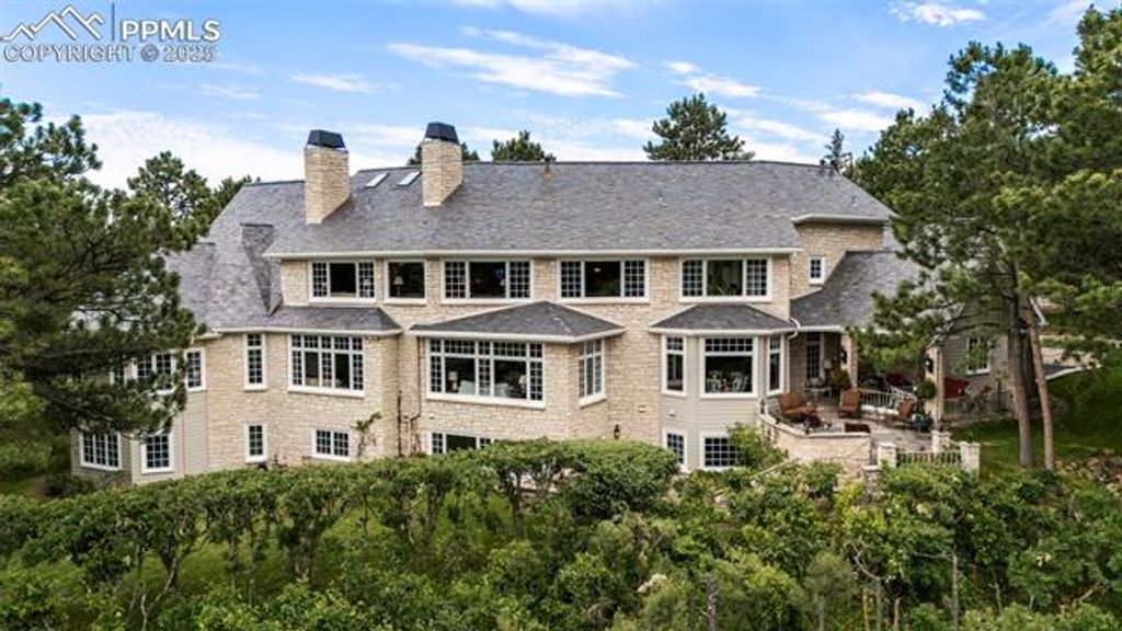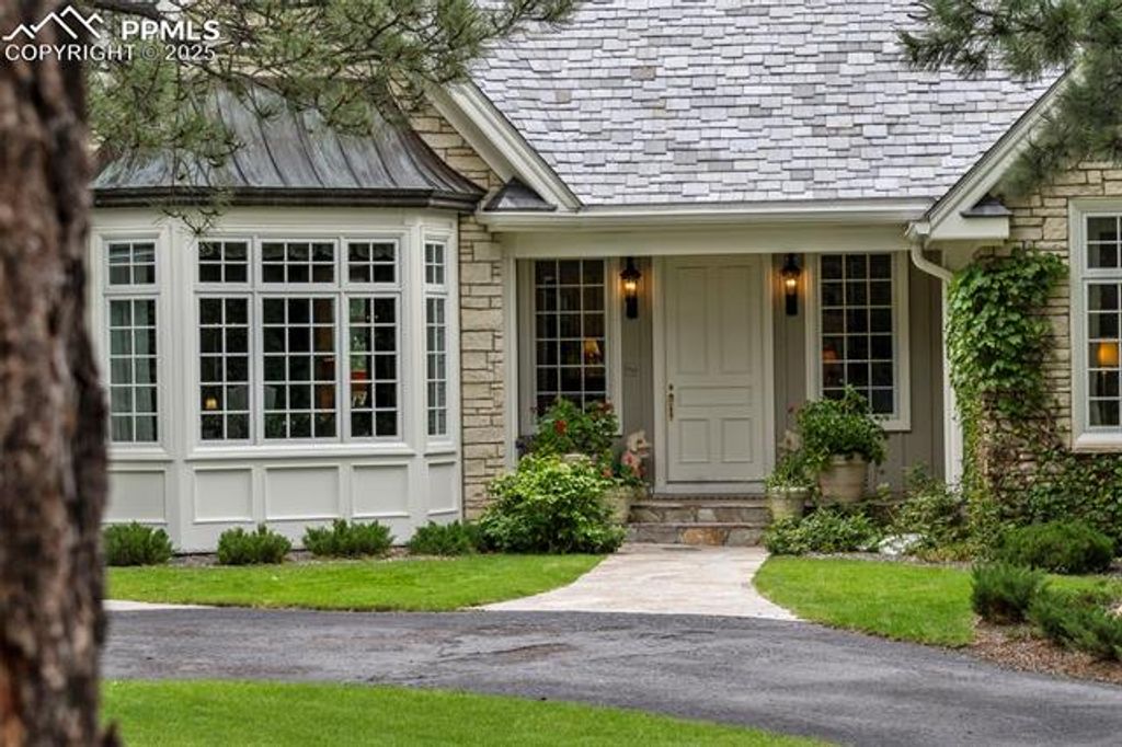 Welcome to one of Colorado Springs' most distinguished properties. It is an exquisite English Manor home nestled along the iconic fairway and putting green of the Broadmoor Hotel's East Golf Course. This stately residence seamlessly blends Old World craftsmanship with modern luxury. This legacy property pairs with timeless architecture and the prestige of Broadmoor Living. Framed by mature trees and gardens, the home's classic stone façade and pitched slate roof evoke the timeless charm of the English countryside. Inside, discover luxurious living spaces with rich cherry hardwood floors, custom millwork, and stone fireplaces that create an atmosphere of warmth and refinement. The grand formal living room and dining rooms are ideal for entertaining, and the sun-drenched sitting room offers a cozy retreat with stunning views of the golf course, mountains, and city. A gourmet chef's kitchen features top-tier appliances, a walk-in pantry, and custom cabinetry that flows into a relaxed hearth room and informal living space. The main level primary suite is a private sanctuary, complete with a spa-like bath. The upper level features an office and sitting room enveloped in the deep, inviting hues of natural cherry wood, where the floors and walls create a luxurious environment with views of the mountain, city, and the 8th hole putting green. Additionally, the property features a game room and a private retreat with a bedroom, living room, and kitchen, all accessible via a private entrance. The lower-level features additional en-suite bedrooms, a game room, and a walk-out family room, providing comfort and privacy for family and guests. This rare offer includes a four-car heated garage. Outdoors, enjoy tranquil mornings on the terrace, evenings under the stars, and the opportunity to join the Broadmoor Golf Club for unparalleled access to world-class golf and resort amenities. A once in a generation opportunity to own a piece of Broadmoor history.