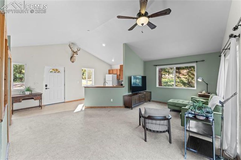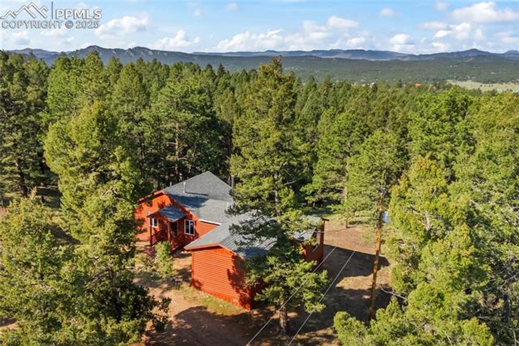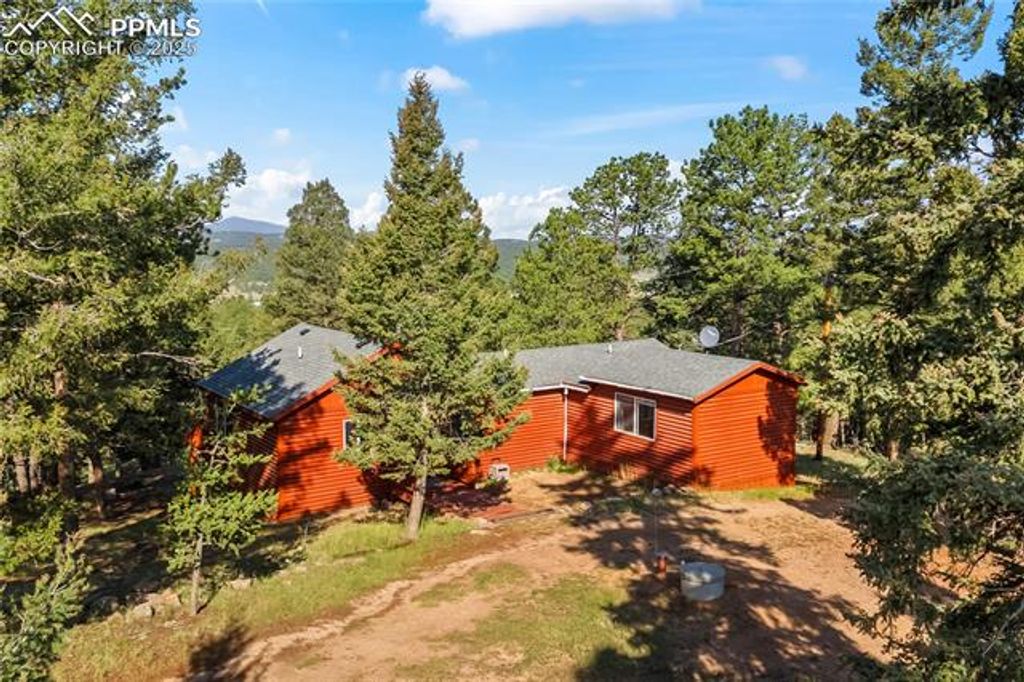 Welcome to beautiful Florissant, CO! This inviting 3-bedroom, 2-bathroom home offers 1,681 square feet of comfortable living space nestled on 2.01 wooded acres with breathtaking mountain views. Built in 1977, this property is ready for a little customization to really make it shine. Step inside to find an open floor plan, highlighted by large windows that flood the home with natural light and frame the surrounding forest and peaks. The spacious kitchen, living and dining area open to a large deck"”perfect for entertaining, relaxing, or simply enjoying the peaceful mountain setting. A cozy wood-burning fireplace adds warmth and character to the lower living area, while a walk-out basement provides additional living space or storage, offering great potential for customization. Outdoor features include a circle driveway, a handy storage shed, a new roof in 2020 and furnace in 2024 for peace of mind. The property is serviced by a well and cistern and provides plenty of room to roam, or explore. Whether you're looking for a full-time residence or a serene mountain getaway, this home delivers privacy, comfort, and Colorado charm.