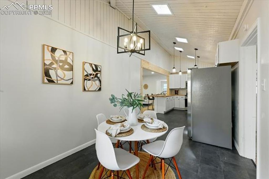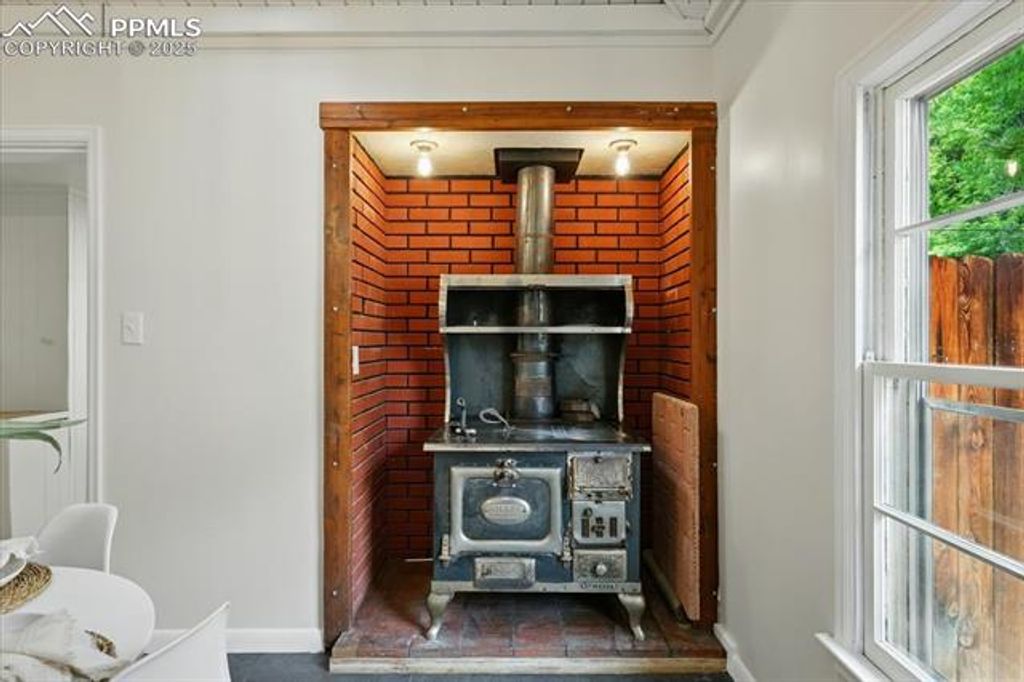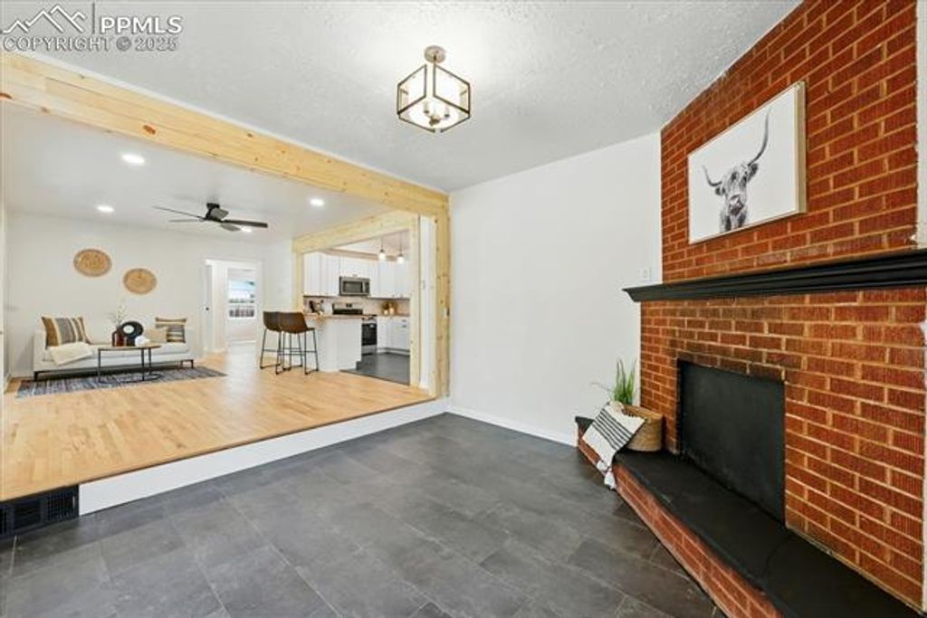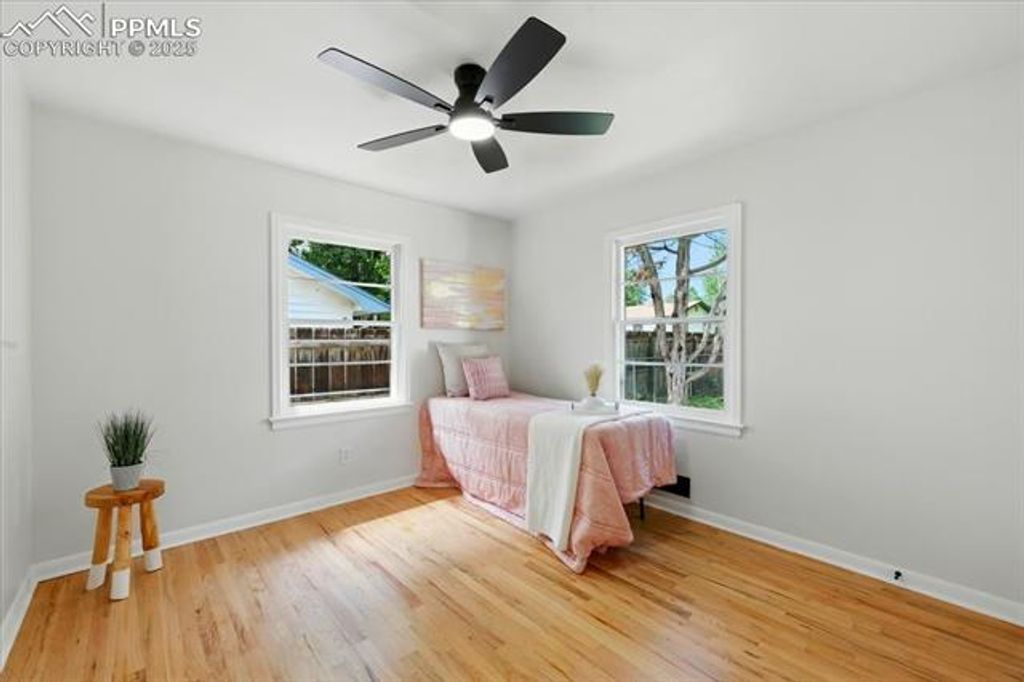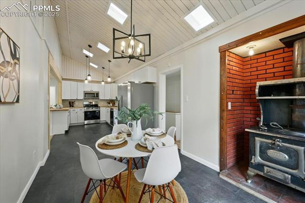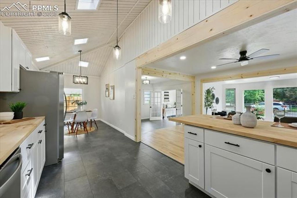 Welcome to a beautifully updated ranch-style home blending rustic charm with modern comfort on a quiet, tree-lined street in central Colorado Springs. Set behind a wrought-iron fence and framed by mature landscaping, this home offers curb appeal and privacy just minutes from Nancy Lewis parks, schools, and dowqwntown amenities.Inside, you'll find a bright open floor plan with refinished original hardwood floors, a cozy brick fireplace, and abundant natural light through oversized windows. The completely renovated kitchen features vaulted ceilings with wood paneling, butcher block countertops, shaker cabinets, new stainless steel appliances, and stylish pendant lighting "” perfect for entertaining or everyday living. With two bedrooms with an option for a third bedroom or an office and a fully remodeled bathrooms, this home offers flexibility for families, guests, or remote work. Unique touches like the vintage cast iron stove nook, exposed beam framing, and warm farmhouse finishes make this home one-of-a-kind. The metal roof provides long-lasting durability, and the fully fenced yard is ideal for pets, play, or gardening. There's also a bonus sunroom and shed and plenty of back yard to add your personal outdoor touches. Don't miss your chance to own a turnkey, design-forward home in one of Colorado Springs' most accessible neighborhoods. Schedule your tour today!