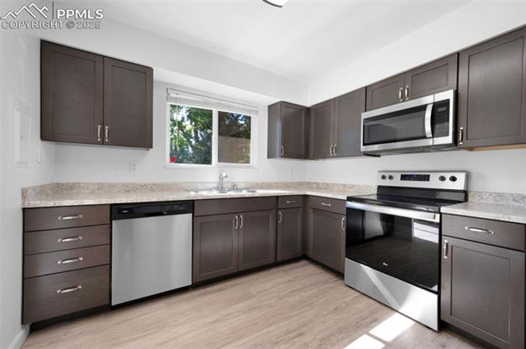 Are you ready to move in? Take a look at this 4 Bedroom, 2 Bath Tri-level in quiet and established neighborhood. A very bright home with mountain views to the south/southwest. This home was updated in 2022 with all new cabinets, stainless steel appliances, counters, floor coverings, light fixtures, bathrooms and paint. New water heater was installed this year/ 2025. Double pane vinyl windows. Fenced and flat backyard. Accessible to all kinds of shopping. Come take a look Square Footage is approximate.