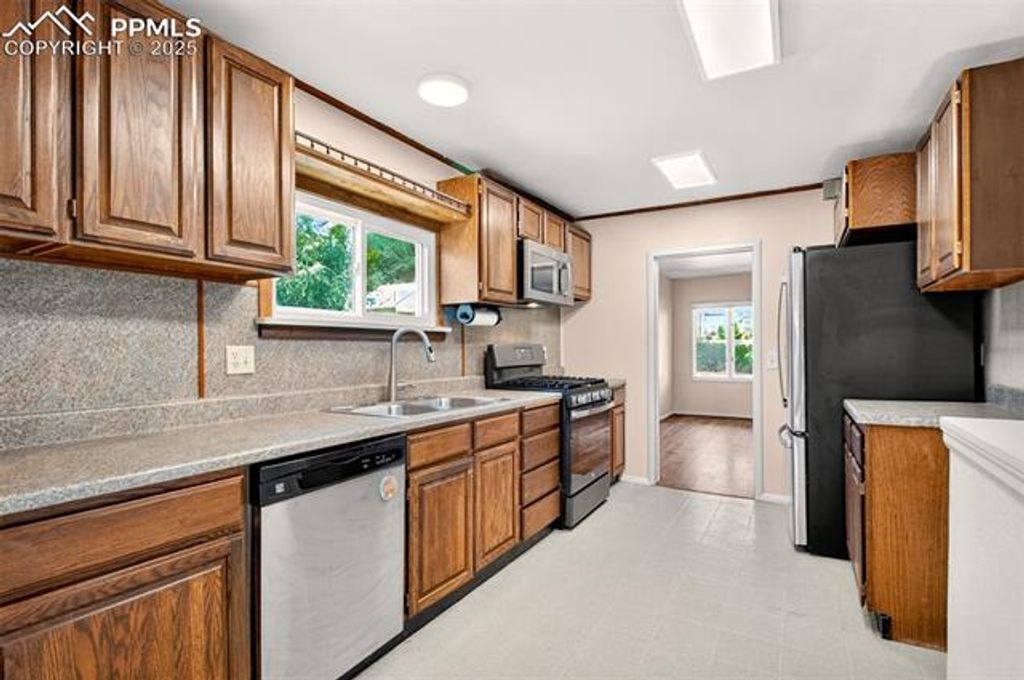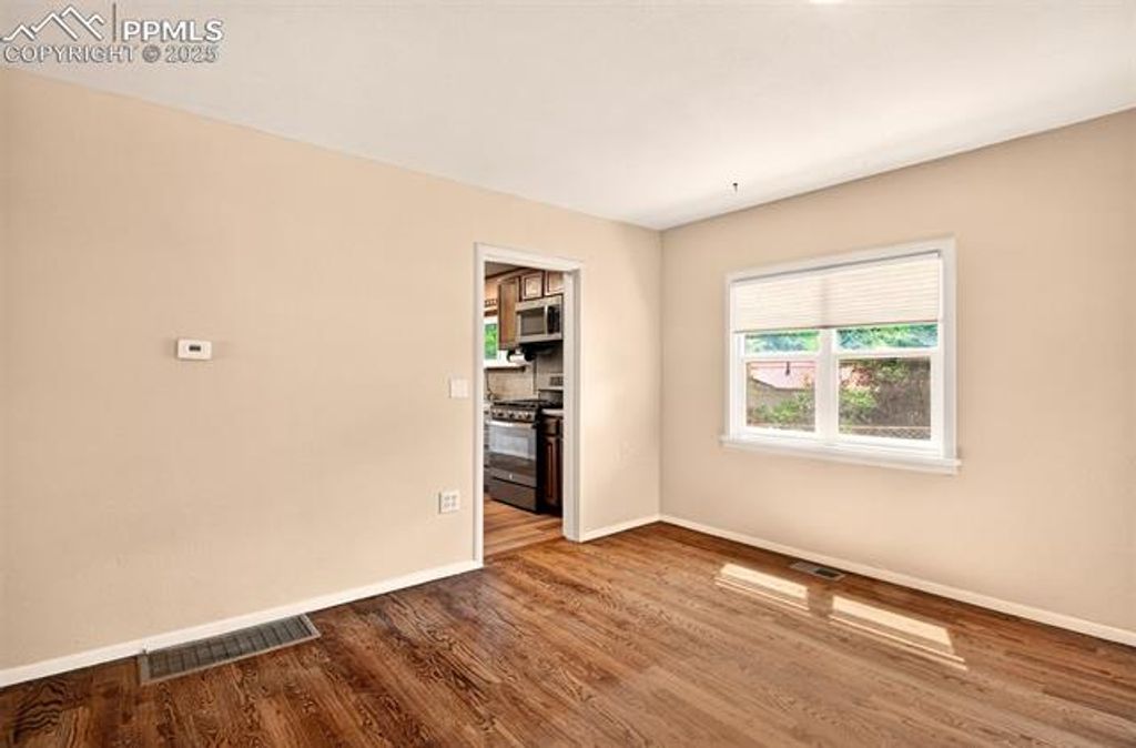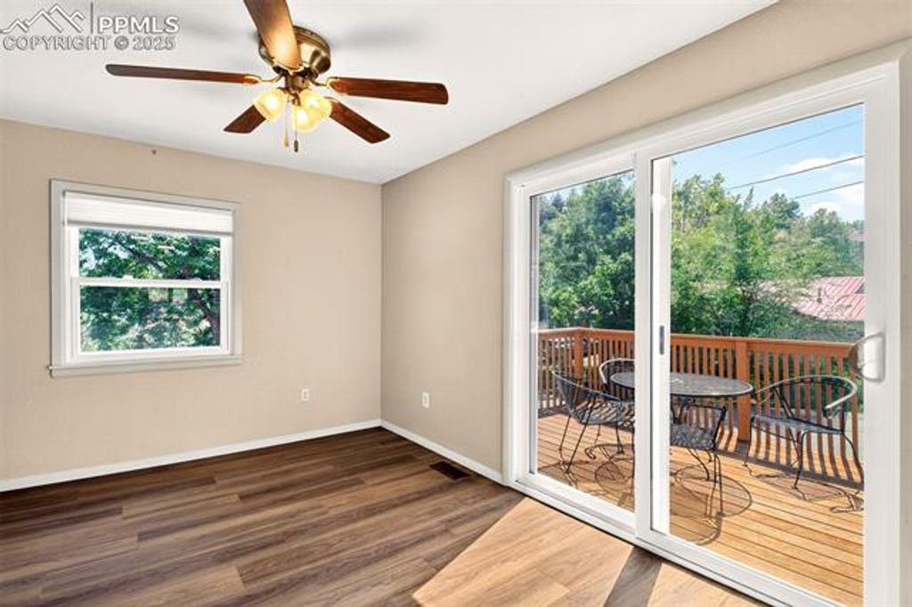 Welcome to a retreat in the heart of Manitou Springs, where timeless charm meets modern convenience and mountain views greet you from nearly every window. This beautifully updated 3-bed, 2-bath home offers over 1,800 square feet of comfortable living space and sits on a spacious lot with mature trees, lush landscaping, and ample room to grow. Inside, enjoy refinished hardwood floors, fresh paint, and new flooring in the bedrooms. The remodeled upper bath, wood-burning fireplace, and walkout dining area with a mountain-facing patio set the stage for cozy everyday living. The kitchen features SS appliances, including a gas self-cleaning oven with an air fryer and griddle. Flex spaces provide ideal areas for an office, studio, or home gym. The home has been thoughtfully upgraded with new windows, a Class 4 impact-resistant roof, new 3/4 sheeting, insulated ceilings, newer steel gutters, an upgraded electrical panel, a QuietCool whole-house fan, a thermostat-controlled attic fan, humidifier, and a newer water heater"”offering lasting comfort and efficiency. Step outside to enjoy fresh landscaping, raised garden beds with new soil, newer fencing, a backyard shed, a sweet built-in catio, and a fenced yard perfect for pets or play. Sip your morning coffee on the porch swing, shaded by mature trees and surrounded by nature. The corner lot offers generous yard space, while ample parking wraps around the property, providing rare convenience in Manitou Springs. What sets this home apart is its ADU potential: the garage was set to become an income-producing unit and includes architectural plans, documentation, and some materials already on site. With Manitou Springs offering funding and incentives for ADUs, this is a golden opportunity for added value, rental income, or multi-generational living. Nestled in a friendly neighborhood, mountain views from nearly every room, and no shortage of charm, is your chance to own a unique piece of Manitou magic.