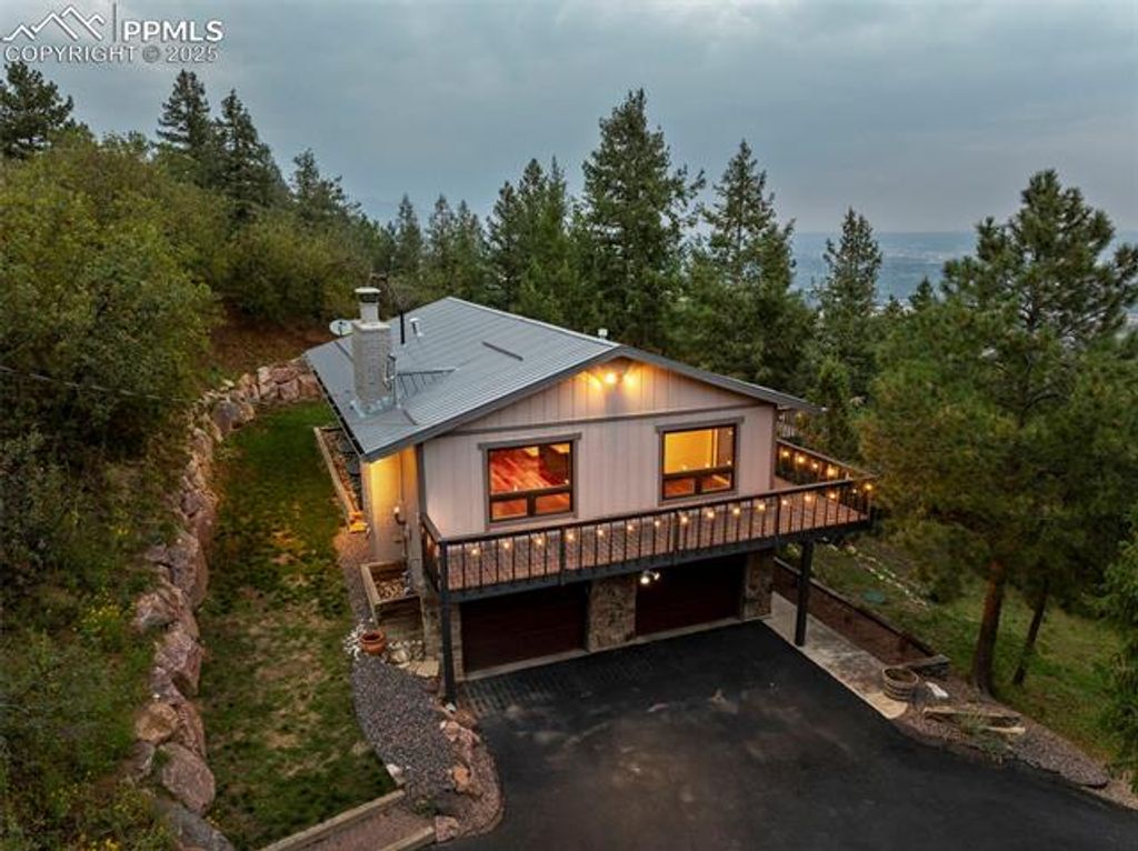 Welcome to a home that captures the best of Colorado living"”tucked into the foothills just northwest of The Broadmoor, embraced by trees for privacy, and perfectly positioned to showcase breathtaking views of the city below. This updated 3-bedroom, 2-bath retreat rests on a half-acre lot near Pike National Forest, offering an ideal blend of mountain serenity, wildlife, and city convenience. Inside, you'll find 1,430 finished square feet of stylish and functional living space. The main level centers around a modernized kitchen with updated finishes and direct access to a spacious deck"”perfect for morning sunrises, evening gatherings, or relaxing beneath the stars while enjoying the sparkling city lights. Expansive windows bring in natural light and frame the impressive vistas, while the home's thoughtful updates create a true move-in ready experience. Three bedrooms and two bathrooms provide flexibility for everyday living, with options for restful retreats, a home office, or guest accommodations. Each space has been designed to balance comfort and function, while maintaining the inviting character of a mountain home. Practical features add value: a durable metal roof, an attached 2-car garage, and a detached 2-car garage offering plenty of room for vehicles, storage, or hobbies. The half-acre lot feels private and secluded, yet wildlife sightings and forested surroundings are a daily reminder that Pike National Forest is only steps away. While the setting feels remote, the location places you minutes from the Broadmoor, Old Colorado City, Manitou Springs, and downtown Colorado Springs"”making it easy to enjoy fine dining, boutique shopping, and vibrant recreation without giving up peace and quiet. Whether you're drawn to the panoramic views, the elevated sense of privacy, or the rare blend of modern comfort and natural beauty, this home delivers a lifestyle that is distinctly Colorado"”sophisticated, inspiring, and welcoming.