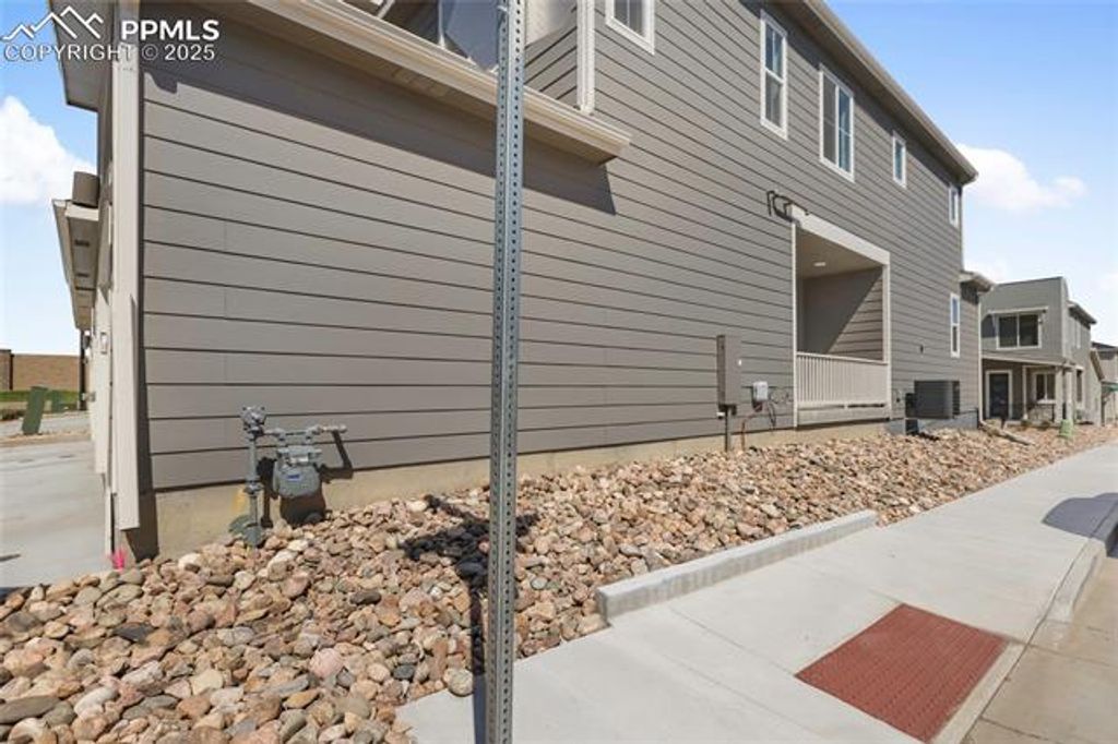 Welcome to your new home in Palmer Village! From the inviting front porch to the private covered patio, this townhome is designed for both comfort and style. Step inside to find a modern kitchen complete with a generous pantry, gas range, large center island with breakfast bar, and abundant storage space. The main level showcases 9-foot ceilings, durable luxury vinyl plank flooring, and a bright, open layout that seamlessly connects the kitchen, dining, and living areas"”perfect for gatherings or everyday living. A convenient powder bath rounds out the main floor. Upstairs, the spacious primary suite is filled with natural light and offers a walk-in closet and ensuite bathroom with dual vanity. Two additional bedrooms, a full bath, and a well-placed laundry room complete the upper level. Living here means low-maintenance ease"”landscaping is handled for you"”so you can spend more time enjoying nearby parks, shops, restaurants, and D49 schools. Don't miss your chance to see this beautiful townhome"”schedule your showing today!