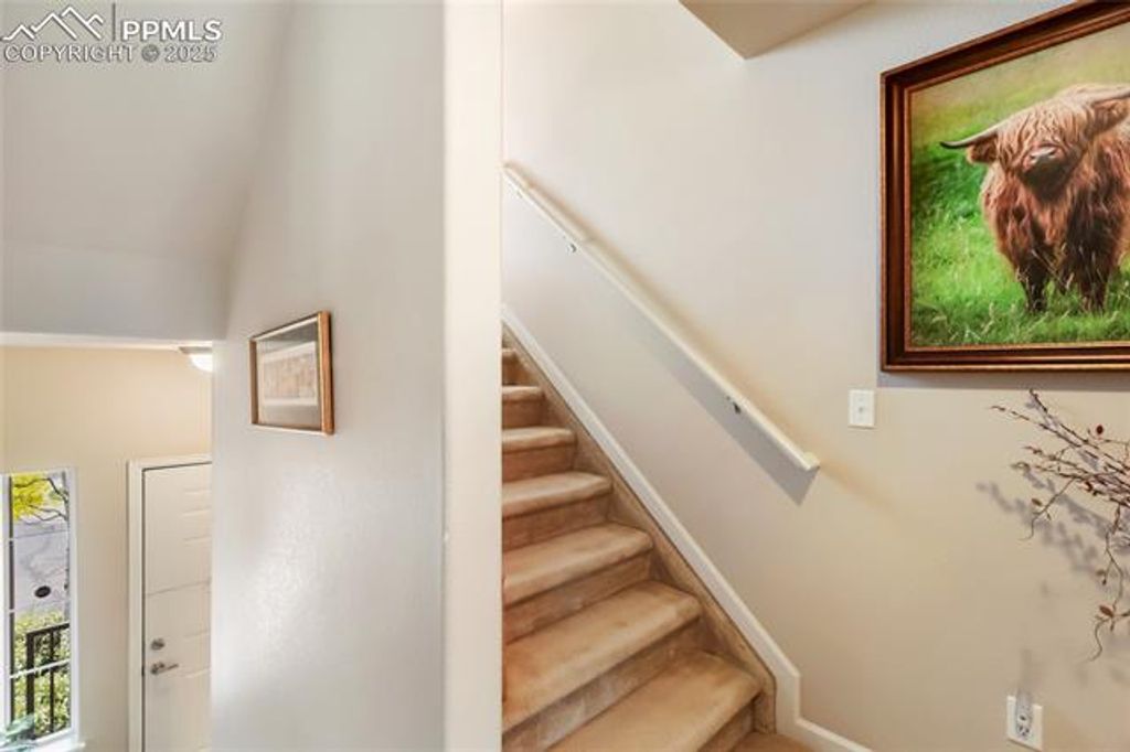 Well maintained townhome on the desirable westside of Colorado Springs. Small gated community backs to open space with views of Sinton trail and Pikes Peak. This home has an open floor plan on three levels with lots of natural light. A spacious kitchen, dining area and living room with patio are on the middle level. Lower level is a two-car garage with plenty of storage. The upper level has the three bedrooms. Large primary bedroom with private bath and two other bedrooms and bath.