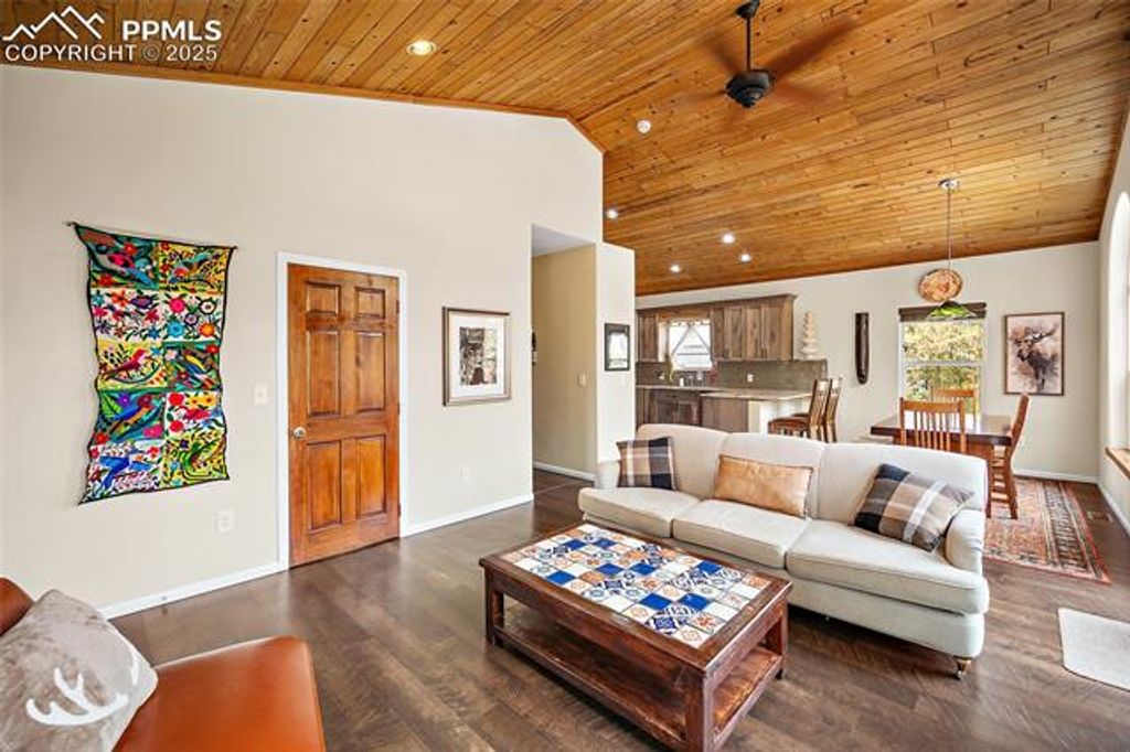 THIS IS CURRENTLY AN ACTIVE "Premier Host" VRBO, sleeps 8 comfortably!! Don't miss this beautiful mountain home where modern luxury meets rustic charm that's nestled in the hills of Cascade and perfect for full time living or as a great mountain getaway, it is also used as an income producing vacation rental with great reviews! The newly remodeled gourmet kitchen features custom Hickory cabinets, granite countertops, counter breakfast bar and stainless steel appliances, it opens to the dining area and living room with vaulted knotty pine ceilings, you will enjoy those stunning mountain views, whether with the sun shining or the snow falling with floor to ceiling windows. Also on the main level is the master bedroom with adjoined bath and walk in closet, 2 additional bedrooms, a full bath and laundry area. Downstairs is all about entertaining and/or relaxing with a pool table, bar or just cozied up enjoying a movie, there is also 2 additional bedrooms and a full bath. Whether you are upstairs or downstairs you will be able to walk out onto the deck or patio and enjoy those mountain views and maybe see some wildlife that frequents the area. The large private fenced yard is perfect to enjoy the Colorado outdoors, whether its enjoying the views during the day or sitting around the fire pit gazing at the starry skies. If you are wanting an active and vibrant outdoor lifestyle you are just steps from your backyard to great hiking trails whether you are a beginner or experienced! You are also a mile hike from Green Mountain Falls with great local restaurants and shopping, enjoy some fishing at the pond with water feature and you will find even more trails to hike and explore! This home offers the peace and quiet of the mountains and the city convenience being just a 10 minute drive whether you are heading down the mountain to Colorado Springs or up to Woodland Park. Call today to schedule your private showing and make sure to check out all the custom art inside and out!