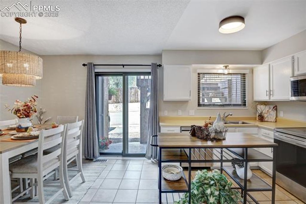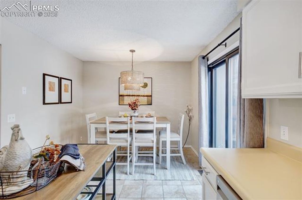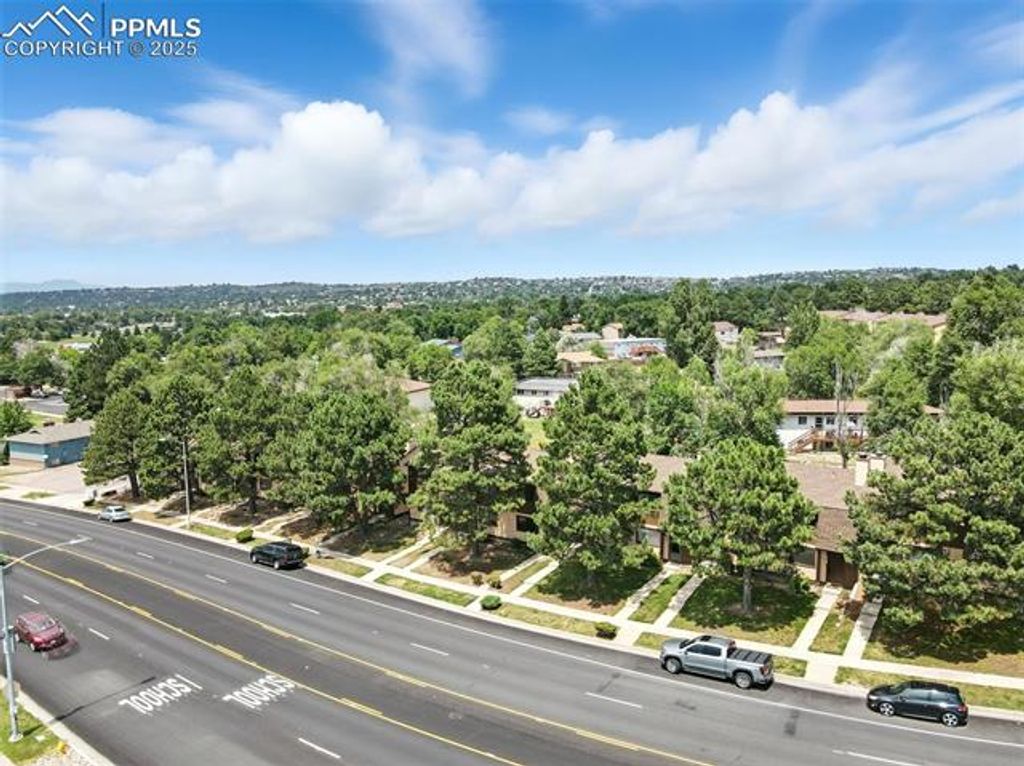 This beautifully updated 2-story townhouse offers modern comfort and timeless charm. Recently refreshed throughout, the home features new carpet, interior paint, stainless steel appliances, light fixtures, and doors. The open and functional floor plan includes spacious living areas and a dining space that flows naturally for everyday living. Energy-efficient double-pane Andersen windows and sliding glass doors provide excellent insulation and sound reduction. Hardwood flooring and a calm, neutral color palette enhance the bright and welcoming interior. Enjoy mountain and Pikes Peak views from the front of the home and a private rear deck perfect for relaxation. The property includes two reserved parking spaces in the rear and additional guest parking available in front. Conveniently located near the Powers corridor, with easy access to shopping, dining, parks, and community amenities, this updated townhouse combines comfort, style, and practicality in a desirable setting.