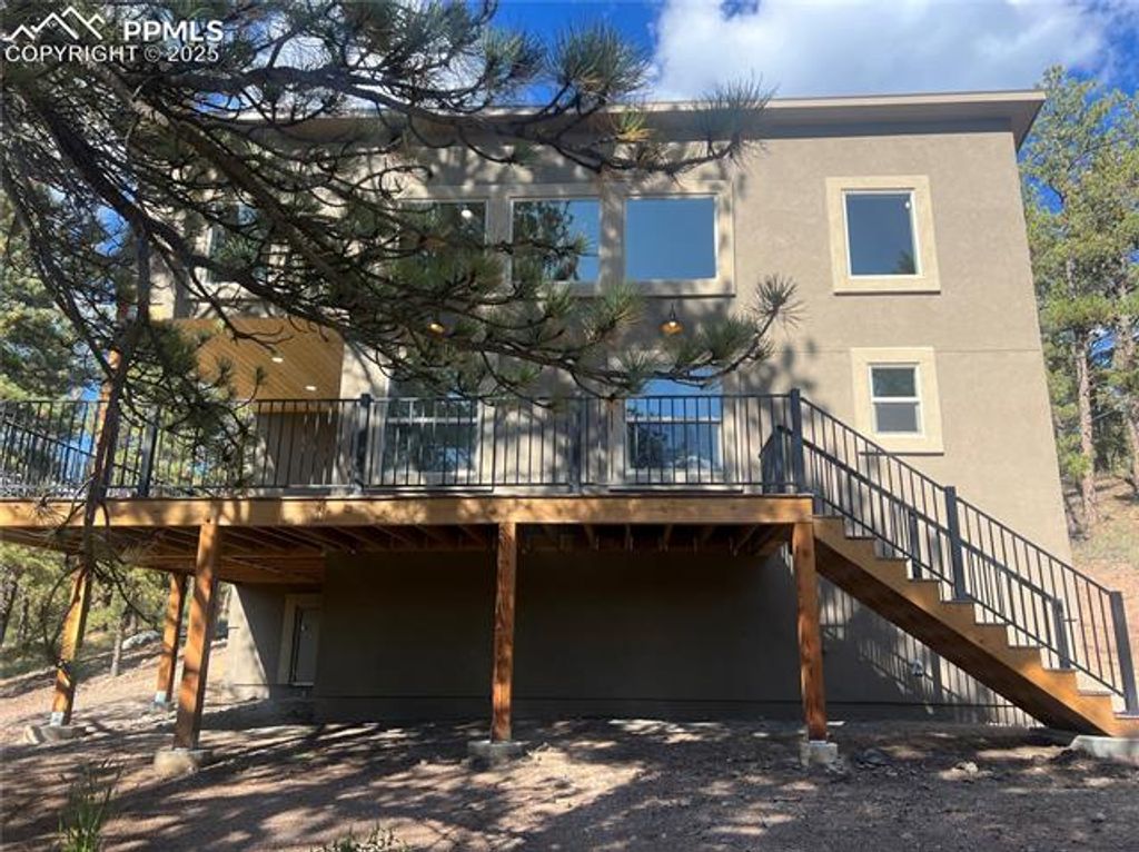 Brand-New modern mountain retreat is nestled behind a grove of trees conveniently located off the paved road at the entrance of the coveted Colorado Mountain Estates Neighborhood. Enter this stucco and stone clad gem with an inviting 9x18 entry that could double as an office space. The vaulted ceiling climbs until it meets the great room's grand 18' wall of windows. Adjacent to the great room which features a fireplace, is an ample kitchen featuring Fabuwood cabinets with extended height to allow for additional storage, quartz countertops with a leathered granite island, custom tile backsplash and stainless-steel Whirlpool appliances. The master bedroom features a walk-in closet, ceiling fan, recessed lighting, as well as an en-suite bathroom with a double-vanity and custom-tiled walk-in shower. The great room and the master bedroom share access to the covered patio with tongue and groove ceiling, composite decking and beautiful views of the surrounding area. Off the covered patio is a 200 square foot deck with stairway access to the backyard offering ample space for outside entertainment. Above the covered patio is a roomy loft area that provides additional flexible space to the new owner. The guest bedroom is located on the other side of the house to ensure maximum privacy. The second bathroom is a full bath with bath/shower combination accessible from the bedroom and great room. Check out the nooks and crannies to find a pantry off the kitchen and a closet for a washer and dryer. Full attention has been given to key construction elements including High quality duration shingles, Delta fixtures and premium LVP flooring throughout. The expansive crawl space is insulated with a 9 foot ceiling. This beautiful home is perfectly placed on this 1/2-acre lot. With proximity to world class fishing, amazing hiking, four wheeling, skiing, amenities and a gambling town make this the ideal Colorado location! It's just Beautiful! STRs are permitted in this subdivision.