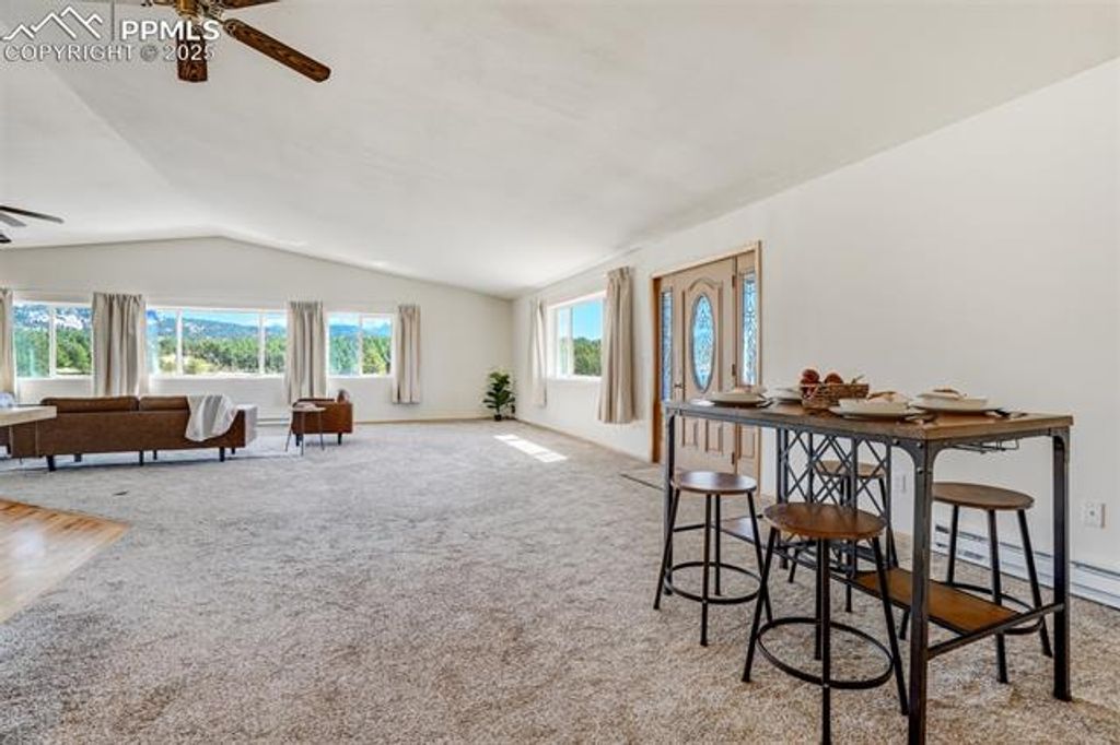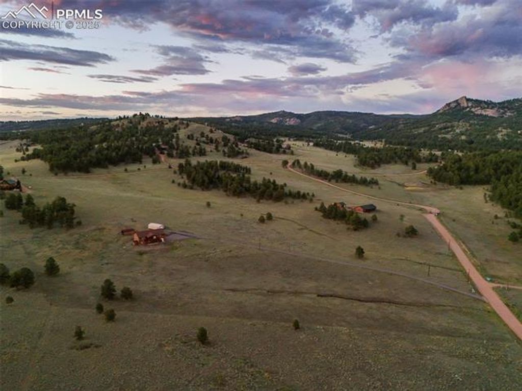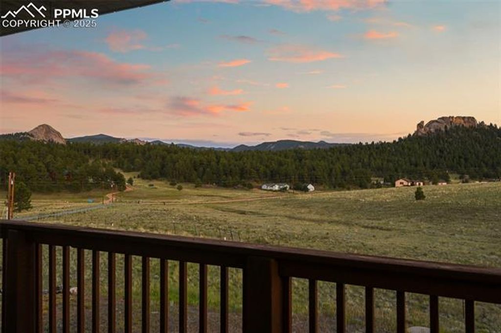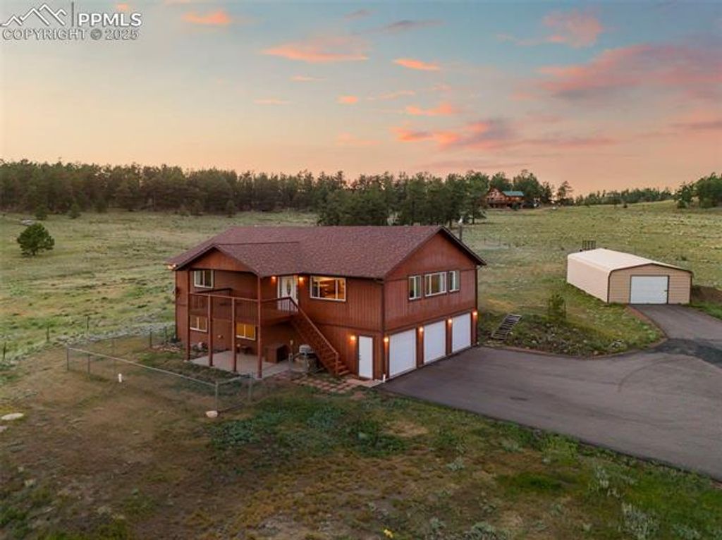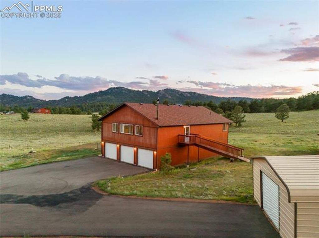 As you approach this picturesque mountain retreat, set on over 11 acres, you'll immediately be struck by mountain views and dramatic rock formations. The large, covered front porch invites you to sit and take in the peaceful surroundings. Stepping inside, you'll be greeted by a wall of windows in the living room, where natural light floods the space, perfectly framing the Pikes Peak view. The cozy warmth of a pellet stove creates an inviting atmosphere. As you move through the home, you'll find the oversized master bedroom"”a true retreat"”with an ensuite bathroom featuring a freestanding shower and a luxurious soaking tub, where you can relax and recharge. The large kitchen, adorned with beautiful hardwood floors, provides ample space for both cooking and entertaining, with plenty of room to gather and create lasting memories. Downstairs, you'll find a secondary living space. With it's own separate access, full bathroom, and additional guest bedrooms, family and friends can stay with peace and privacy. Outside, you'll discover ramp access to the upper level, making it easily accessible. The paved driveway, fabulous for snow removal, leads to a spacious 3-car attached garage, along with an additional 1-car detached garage, providing plenty of space for vehicles and storage. Two sheds offer even more room for tools, hobbies, or outdoor gear, and the fenced yard includes a dedicated dog run, perfect for your furry friends to roam freely. Classic cedar siding and a brand new roof make this home attractive and reliable. Coveted southern exposure and low utility bills! With sensible covenants, this property offers the freedom to truly make it your own. Just a short drive from Florissant Fossil Beds National Monument, it blends the peacefulness of mountain living with the convenience of nearby attractions. This isn't just a home; it's a lifestyle waiting to be embraced. Take a tour today and experience the mountain views and tranquility that could soon be yours!