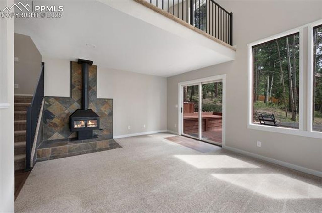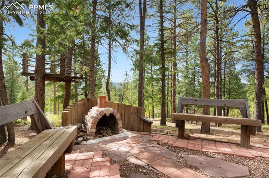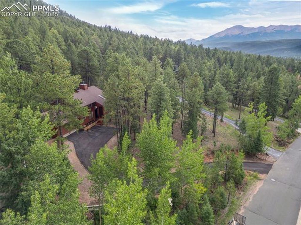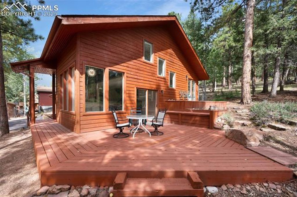 Experience the true mountain lifestyle: Discover tranquility in this charming, updated 3-bedroom, 2-bath single-family home. In this quiet neighborhood, the sounds of city life are replaced by the gentle rustle of the breeze through the pine needles and the calls of local wildlife, offering a genuine retreat from the hustle and bustle. Enjoy unparalleled views from every window and direct access to BLM land from the backyard. A spacious deck with a built-in chimenea is perfect for enjoying the ourtdoors. The exterior boasts a new stain, while the interior features fresh paint, new flooring, updated lighting, a renovated kitchen, the bathrooms have been fully updated, and the kitchen appliances are all brand new. A cozy wood-burning stove provides warmth on chilly evenings, and a paved driveway ensures easy access. This home is the of both worlds...you'll enjoy the privacy and peace of a true mountain escape, coupled with the ease of having amenities nearby as you're only minutes away from the shops and services of Woodland Park.