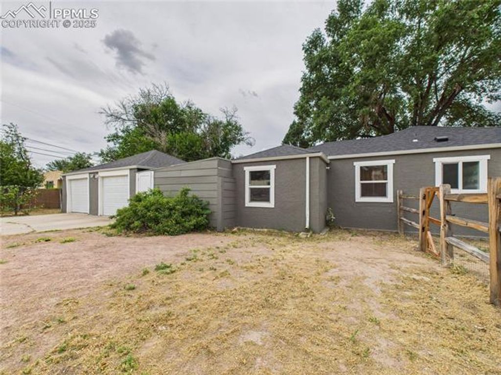Discover your private sanctuary in this charming single-story home! Boasting 1048 sq ft of functional living space, this residence offers 3 bedrooms, 1 full bathroom with tile, a dedicated laundry room, and multiple living areas. The conveniently designed wrap-around kitchen features luxurious countertops and ample cupboard space. Enjoy the durability and style of LVT flooring throughout. Beyond the main living area, you'll find an additional 800 sq ft of garage space, including a large 2-car garage for all your parking needs and a connected workshop for even more storage. Step outside to enjoy the Colorado sunset from your private covered front porch. The backyard offers a true oasis with a 6-foot privacy fence and blooming apple trees. Schedule a showing today and unlock the full potential of this exceptional home!