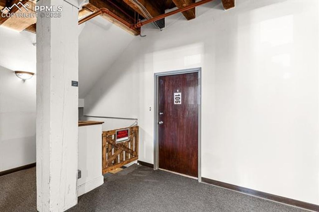 This is the Architect's ultimate dream property. Featuring 2392 finished square feet with 2 bedrooms/2 bathrooms, in unit laundry, home office space, open kitchen for entertaining, high ceilings, skylights, industrial style with 100+ year old beams and open brick walls to name just a few features. This special bottom floor unit is unlike any of the other condos in the Lamkin Plaza. This condo has the entry way on the bottom floor and then a grand staircase off the foyer which leads you to the upper living area. Upstairs there is another bedroom, full bathroom, loft area and office area. Do you want the largest condo in the whole plaza? No problem, head through the laundry area to the another full unfinished 41' X 14' unit that can be made into whatever your heart desires! With HB Zoning, Forced Air Heat & AC, secured entry, ample off-street parking and tons of storage to include a deeded basement storage area this property is truly one of a kind. This condo has so much potential. The square footage can be divided up and you can break the area into separate living units for residual income. Also, with the HB zoning consider running your own business out of your home! Best location in Pueblo! Located just 2 blocks from the "Gem of Pueblo" The Historic Arkansas Riverwalk - EAT, DRINK, SHOP, and PLAY! The Interstate is just minutes from the condo and makes for an easy commute to Colorado Springs.