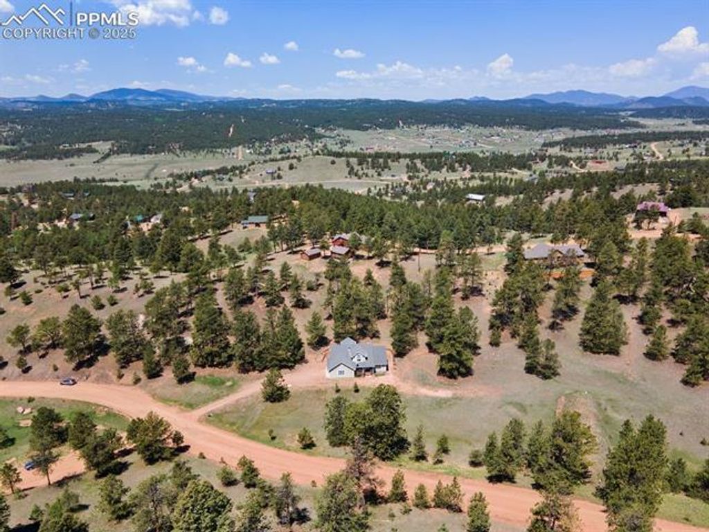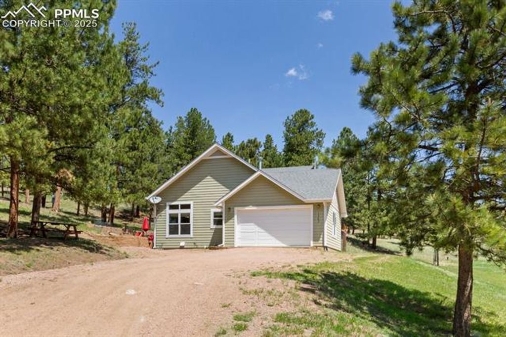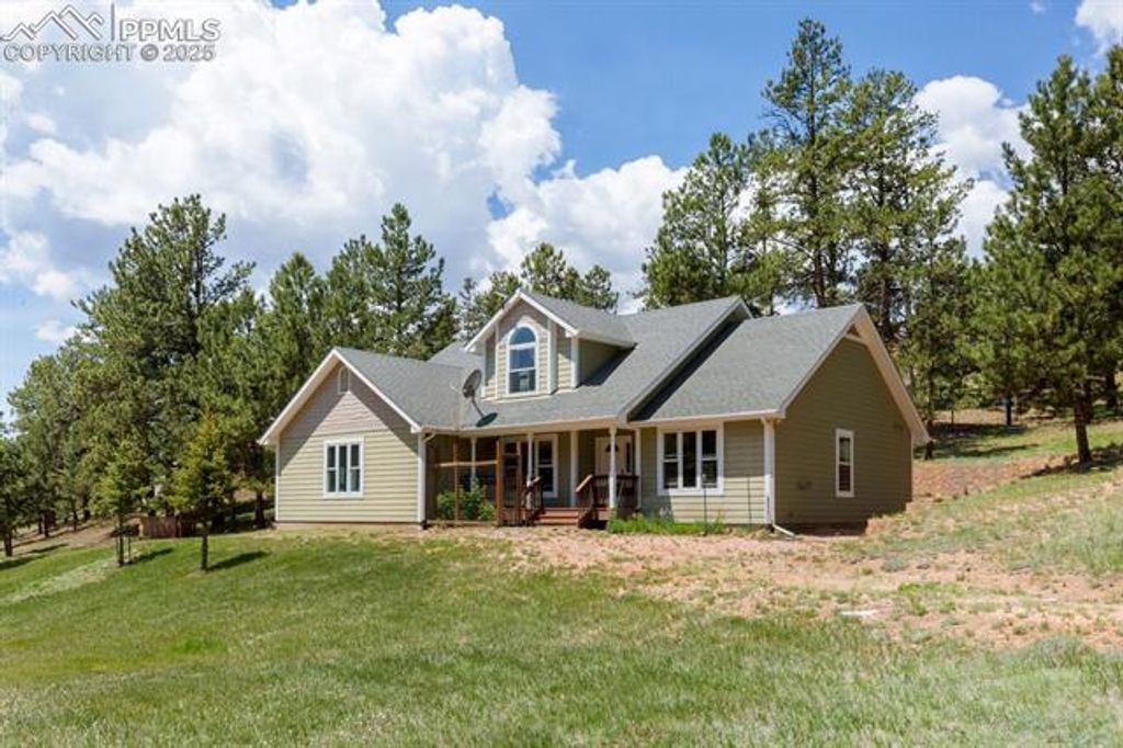 Welcome to your very own mountain getaway in beautiful Colorado Mountain Estates! This charming 3-bedroom, 2.5-bathroom home is nestled on 2 private acres, offering the perfect blend of comfort, convenience, and outdoor adventure. Located just 20 minutes from Woodland Park and about an hour from Colorado Springs, you'll enjoy an easy commute with quick access to city amenities"”while still feeling worlds away. Head west, and in under an hour you'll find yourself surrounded by National Forest or enjoying one of several nearby reservoirs for hiking, fishing, boating, or just soaking in the scenery. This 1.5-story home features main-level living, including a spacious master suite with a large bathroom and walk-in closet. Two additional bedrooms and a full bath are located upstairs, perfect for guests or family. The open kitchen includes a center island, a generous pantry, and ample cabinet space, flowing into a cozy dining area and a welcoming living room with hardwood floors and a gas fireplace. You'll also find tile in the kitchen, dining room, laundry, and entryways, with carpet in the bedrooms and on the stairs. The attached 2-car garage offers plenty of space for your vehicles and gear, while the laundry room"”just off the kitchen"”adds everyday practicality. Enjoy peaceful mornings on the covered front porch or unwind on the back deck while taking in the sights and sounds of your mountain surroundings. Don't miss this opportunity to own a peaceful retreat in the heart of Colorado's great outdoors!
