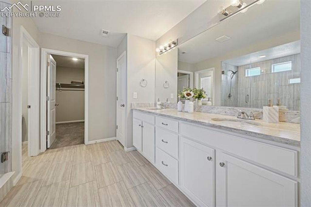 Beautiful Two-Story Home with Gourmet Kitchen, Spacious Loft, Mountain Views & Room to Grow Discover this beautifully designed two-story home tucked away on a quiet cul-de-sac with breathtaking mountain views. A welcoming covered front porch sets the tone for peaceful Colorado mornings and relaxing evenings outdoors. Inside, the bright, open layout balances comfort and functionality perfect for both everyday living and entertaining. The chef-inspired gourmet kitchen features double ovens, a gas range, stainless steel appliances, a granite counter bar, and a large center island, all flowing seamlessly into the spacious living area. A mudroom, powder bath, and finished two-car garage complete the main level. Upstairs, enjoy a versatile loft ideal for a second living area, home office, or playroom. You'll also find a full hall bath, convenient laundry room, and three spacious bedrooms. The Owner's Suite provides a private retreat with a huge walk-in closet, dual vanities, and a modern walk-in shower. The unfinished basement is pre-plumbed and ready to finish, offering endless possibilities like additional bedrooms, a home theater, or a gym. Additional highlights include central A/C, automatic sprinklers, durable finishes, and abundant natural light throughout. Conveniently located near Fort Carson, Peterson & Schriever AFB, the Colorado Springs Airport, and the Powers Corridor, you'll enjoy quick access to shopping, dining, and recreation. Schedule your showing today and experience the perfect blend of mountain views, modern living, and room to grow.
