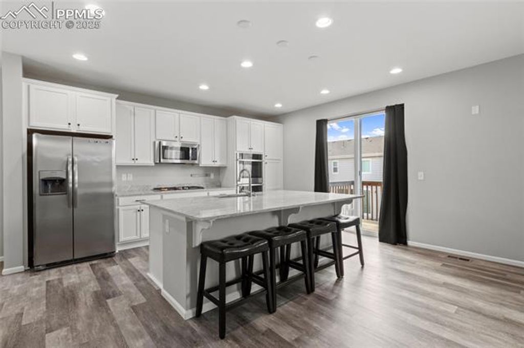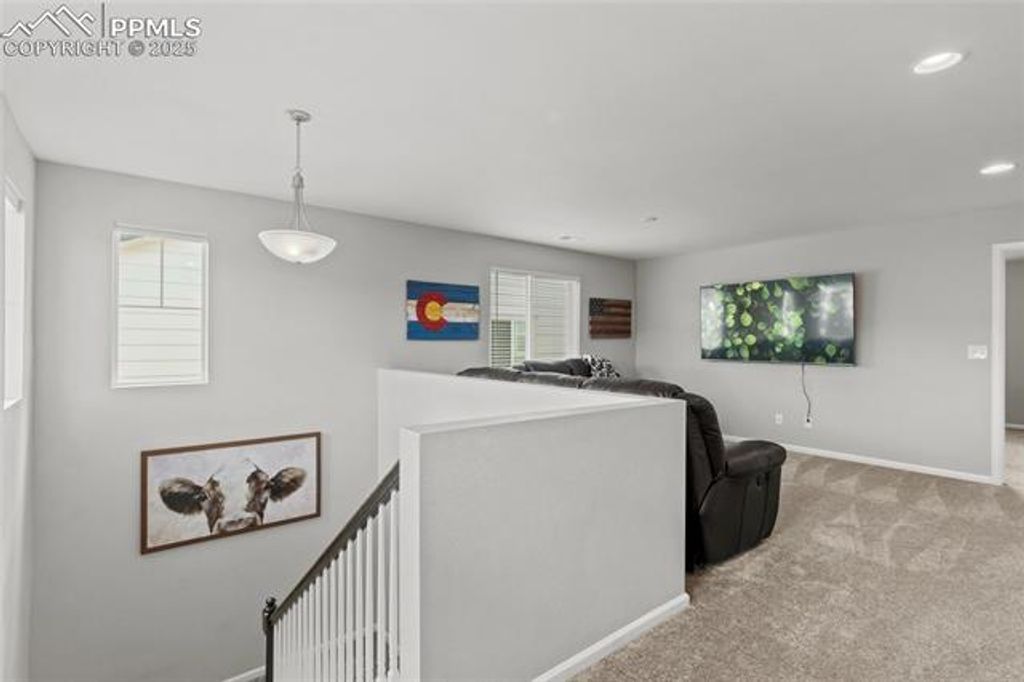 Beautiful Two-Story Home with Gourmet Kitchen, Spacious Loft, Mountain Views & Room to Grow Discover this beautifully designed two-story home tucked away on a quiet cul-de-sac with breathtaking mountain views. A welcoming covered front porch sets the tone for peaceful Colorado mornings and relaxing evenings outdoors. Inside, the bright, open layout balances comfort and functionality perfect for both everyday living and entertaining. The chef-inspired gourmet kitchen features double ovens, a gas range, stainless steel appliances, a granite counter bar, and a large center island, all flowing seamlessly into the spacious living area. A mudroom, powder bath, and finished two-car garage complete the main level. Upstairs, enjoy a versatile loft ideal for a second living area, home office, or playroom. You'll also find a full hall bath, convenient laundry room, and three spacious bedrooms. The Owner's Suite provides a private retreat with a huge walk-in closet, dual vanities, and a modern walk-in shower. The unfinished basement is pre-plumbed and ready to finish, offering endless possibilities like additional bedrooms, a home theater, or a gym. Additional highlights include central A/C, automatic sprinklers, durable finishes, and abundant natural light throughout. Conveniently located near Fort Carson, Peterson & Schriever AFB, the Colorado Springs Airport, and the Powers Corridor, you'll enjoy quick access to shopping, dining, and recreation. Schedule your showing today and experience the perfect blend of mountain views, modern living, and room to grow. Possible seller concessions.