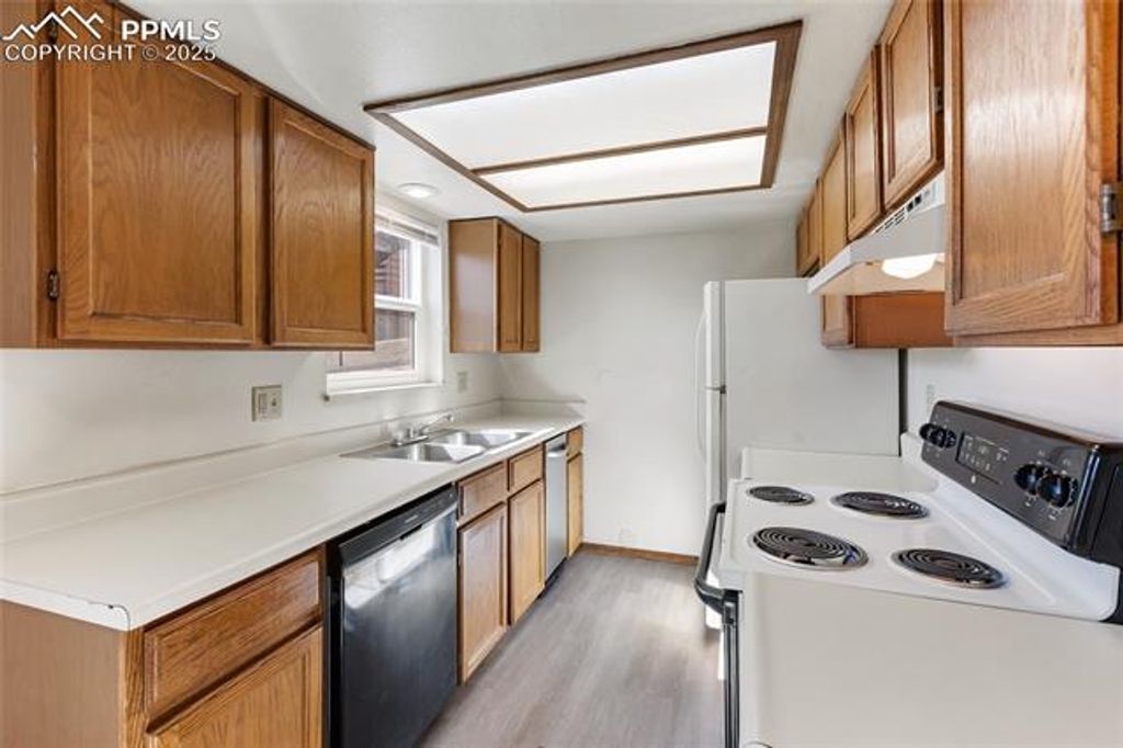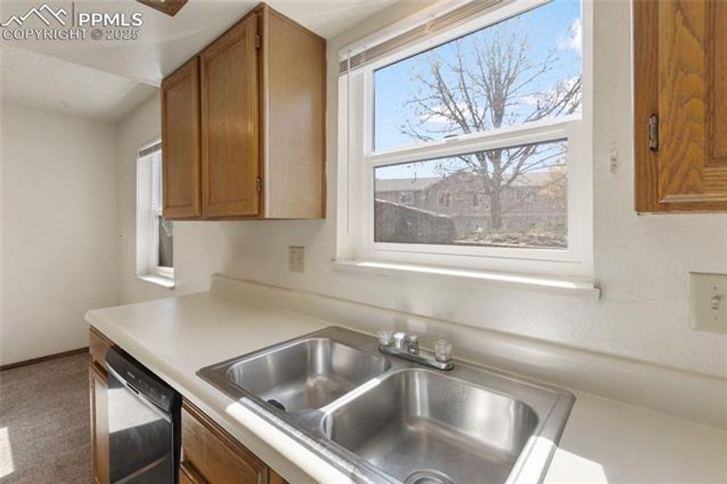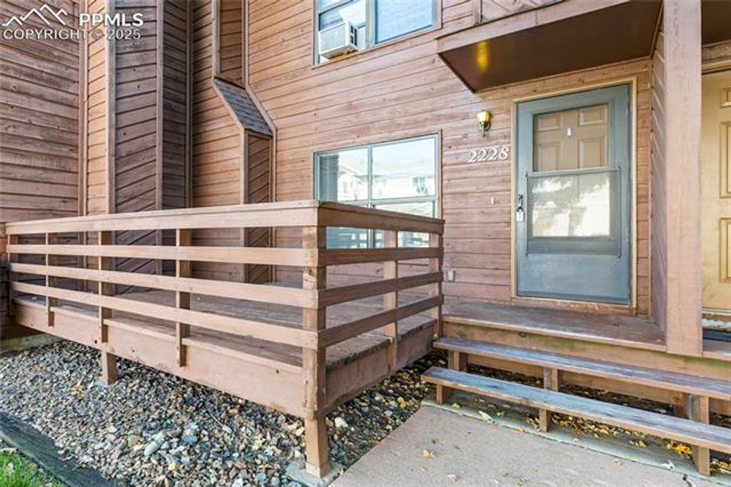 Welcome to this 2-level condo, offering comfort, convenience, and potential"”perfect as a full-time residence or a smart investment property. This home features a main level entry and boasts an open-concept layout with a bright living room, dining area, and a functional kitchen equipped with appliances. From the kitchen and one of the upstairs bedrooms, enjoy glimpses of the Pikes Peak, adding a touch of natural beauty to everyday life. Recent updates include newer carpeting, and you'll appreciate the in-unit laundry conveniently tucked away in a closet. A half bathroom is located on the main floor for guests, while the upper level offers two spacious bedrooms and a full bathroom. Step outside to your private deck, ideal for morning coffee or evening relaxation. The condo includes an assigned parking space, and there's a shared basement area for storage and housing the hot water heater. Though this condo is situated on the ground and upper level, please note there is another unit above. This condo is located near shopping, hiking trails, schools, entertainment and amazing views of Pikes Peak from the area.