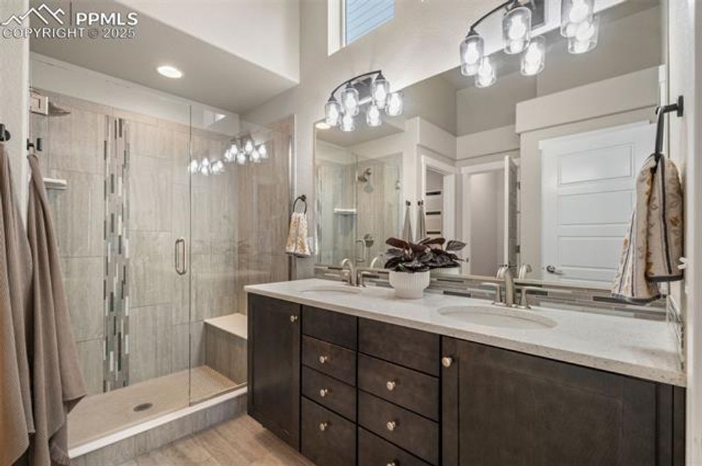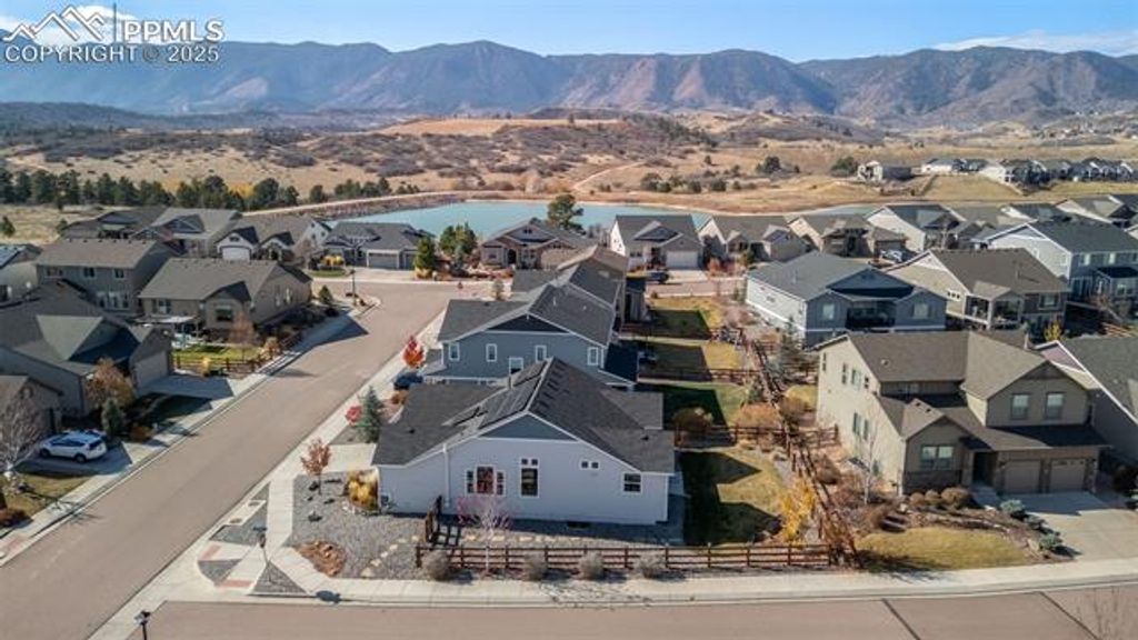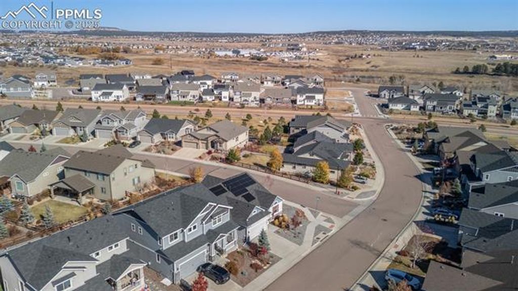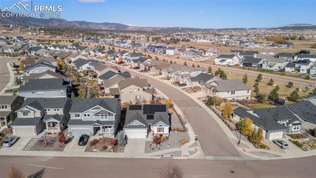 Welcome to your next chapter in the Forest Lakes community of Monument, where mountain views, modern comfort and smart living converge. This thoughtfully built 2018 residence showcases a generous first-floor primary suite for ease and elegance, alongside an office nook/flex area and a guest bedroom and bath"”perfect for welcoming visiting friends or creating a dedicated workspace. Downstairs, an open rec room invites gatherings and offers two additional bedrooms and a full bath. Added bonus: a full unfinished space ready to become a fifth bedroom and another full bath when you're ready. Outdoors, the expansive backyard delivers striking mountain panoramas and is enhanced by fully paid-off solar panels "”giving you long-term peace of mind and lower operating costs. The robust 7.72 kW solar system, equipped with Enphase microinverters and a hardwired level-2 EV charger, provides exceptional energy efficiency"”producing enough power to cover most household needs (and even charge an electric vehicle) while keeping utility costs remarkably low. Forest Lakes is a master-planned community in Monument celebrated for its sweeping open space, lakes, trails and foothills location just west of I-25. Here you'll enjoy weekend hikes, scenic walks and an active lifestyle without sacrificing convenience. Commuting is simple"”both Denver and Colorado Springs are within easy reach"”while the neighborhood retains its tranquil, community-oriented feel. With refined finishes, flexible living areas and a setting that blends nature with everyday ease, this home offers a rare combination of sophistication and livability in a community you'll be proud to call home.