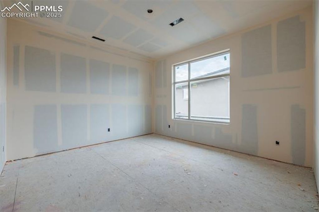 Nestled in the coveted gated community of Kissing Camels, this final available new build boasts a setting that seamlessly blends city & mountain views with modern upgrades. Enter a beautiful extended foyer that reveals a two-story great room featuring a dramatic fireplace offering a grand entertaining area, with connectivity to the dining nook and views of the entire city through the massive stacking slider and expanded covered patio. The well-appointed kitchen is complemented by a large center island with breakfast bar, wraparound counter and ample cabinetry space, a roomy walk-in pantry, and luxurious Jenn Air appliances. Enhancing the main-level primary bedroom suite are a huge walk-in closet and lavish primary bath with dual vanities, large soaking tub, elegant shower with seat, and private water closet. Upper level features an additional bedroom with hall bath, two more bedrooms with walk-in closets and a shared bath with dual vanity areas. Wonderful Pikes Peak views from the upper corner bedroom! The finished basement features an oversized Family Room and a private bedroom suite with attached bathroom, ideal for hosting guests. Lower level provides ample storage and walks out to a an additional covered patio to the backyard. Additional highlights include a generous loft and office, central air, radon mitigation, everyday entry with drop-zone, and laundry room. HOA dues include manned security, snow removal on private streets & trash removal. Walking distance to the Garden of the Gods Resort and Kissing Camels Golf Club, which offers numerous amenities including spa, gym, swimming pools, hot tubs, pickleball & tennis courts, and fine dining, with club membership. Plentiful hiking & biking trails close by. Excellent location only minutes from downtown, Manitou Springs, & Kissing Camels Golf Club. More than just a property, don't miss this final walkout homesite and the lifestyle offered in the exclusive gated community of Kissing Camels!