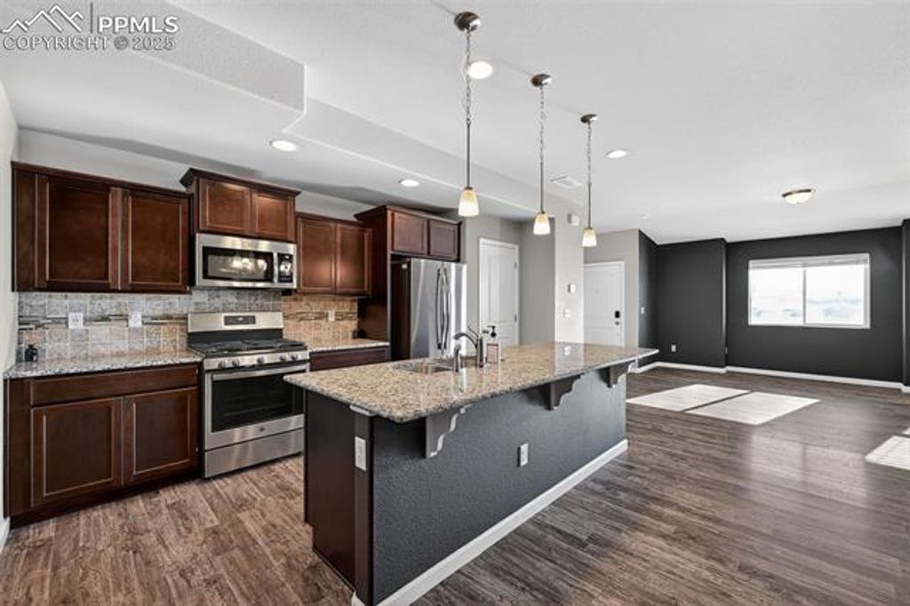 Modern Living Meets Mountain Views at 2030 Birmingham Loop! Welcome to this stunning townhome in the Vistas at Spring Creek. Built in 2020, this 3-bed, 3-bath residence offers 1,692 sq. ft. of open-concept living. Inside, enjoy durable LVP flooring and a modern kitchen with stainless steel appliances, ample cabinetry, and a spacious center island. The dining area opens to a private patio, perfect for relaxing. Upstairs, the massive Primary Suite features a walk-in closet and ensuite with a double vanity. Community Perks include: exterior maintenance and snow removal, Outdoor Pool & Hot Tub, Clubhouse & Fitness Center, Dog Park & Wash Station, Playgrounds & BBQ Areas. Prime Location with very quick access to area military installations and recreation such as Valley Hi Golf Course and El Pomar Sports Park. Move-in ready and perfectly located! Schedule your tour today.