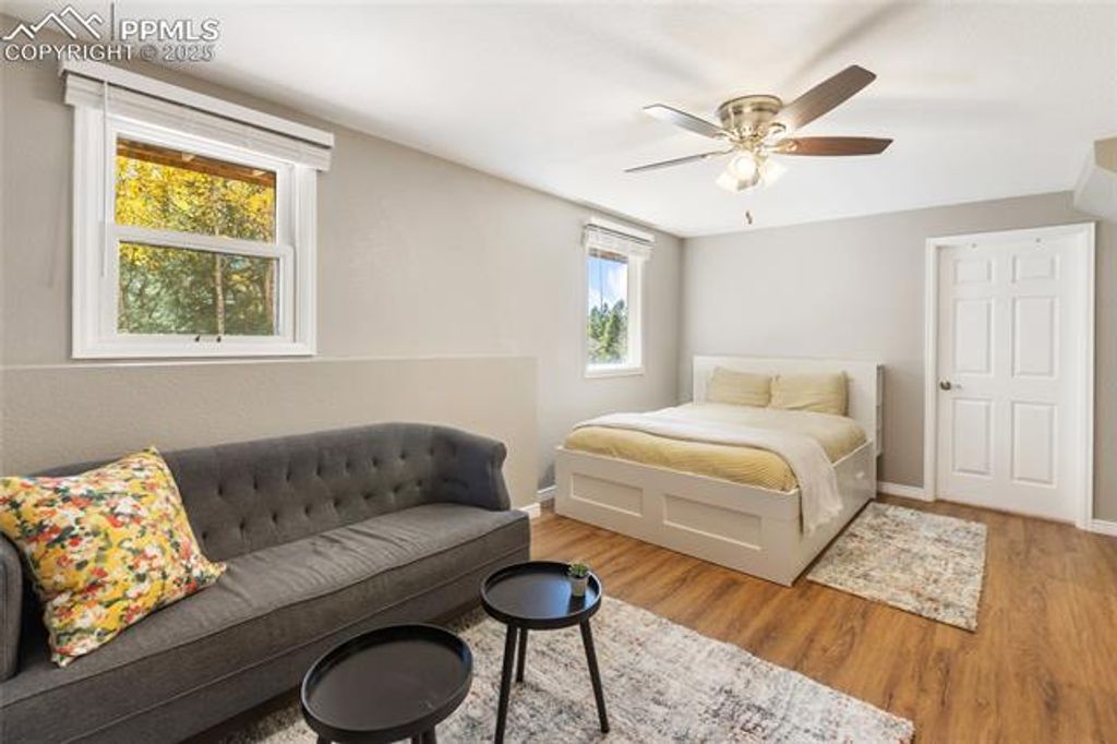 Welcome to your fully furnished dream home in Spring Valley subdivision that offers access to several private lakes and ponds that frame majestic Pikes Peak, perfect for fishing, paddleboarding, ice fishing, or enjoying a peaceful lakeside picnic. This spacious home's exterior is a blend of stone and wood, complemented by multiple decks ideal for sipping morning coffee, grilling with friends, or simply soaking in the crisp mountain air. Step inside the main level that opens to a stunning staircase and a thoughtfully designed layout. Arched doorways and custom architectural details create a graceful flow from room to room. Enjoy a formal dining room for entertaining, a cozy living room featuring a real wood-burning fireplace, and a bright breakfast area that walks out to the upper deck. The kitchen shines with modern updates- a new backsplash, countertops, flooring, and stainless steel appliances. Upstairs, the primary bedroom has a ensuite, walk-in closet, and a wood-burning fireplace. Two additional bedrooms, a full bath, and a versatile loft space (ideal for an office/reading nook/craft area) complete the upper level. The fully finished basement is a true surprise, offering multi-functional living space. There's a large bedroom with sitting area, walk-in closet, access to a Jack-and-Jill bathroom, a spacious family room with wet bar, and a walk-out to another private deck"”ideal for hosting guests, creating a separate rental suite, or enjoying multi-generational living. Additional features include: Attached 2 car garage, laundry/mechanical room accessible from garage and exterior, private sauna for relaxing on chilly mountain evenings & RV parking. Less than 10 minutes to restaurants, shopping, coffee shops, & Hwy 24 for quick access to Woodland Park, Colorado Springs, or mountain adventures. Whether you're looking for a full-time residence, vacation home, short or long-term rental potential, or a multi-generational living opportunity, this property has it all.